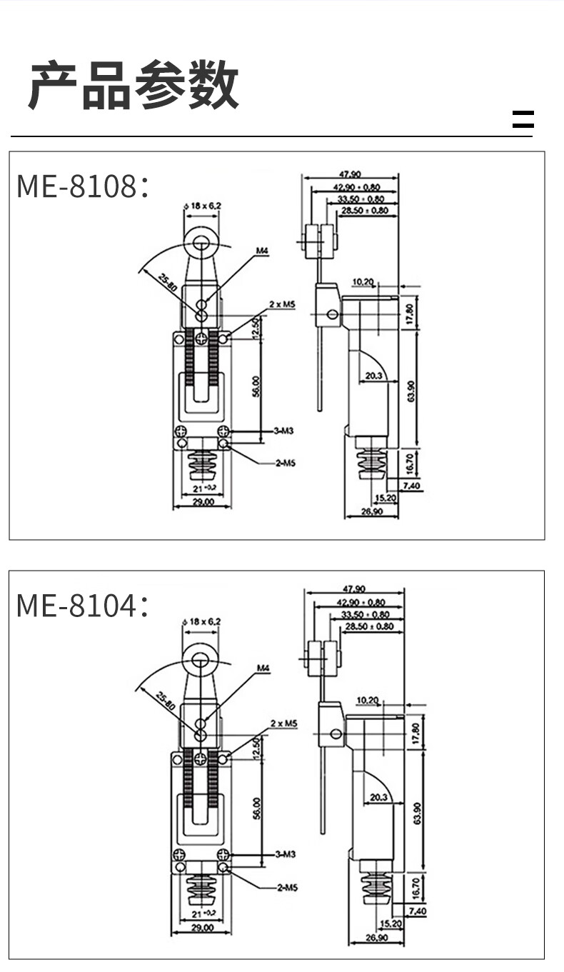 Travel switch me-8108 limiter sensor micro switch 8104 contact roller limit switch ME-8169 No Specifications
