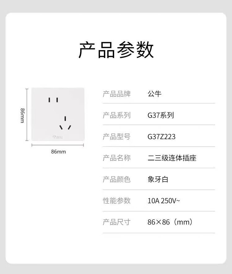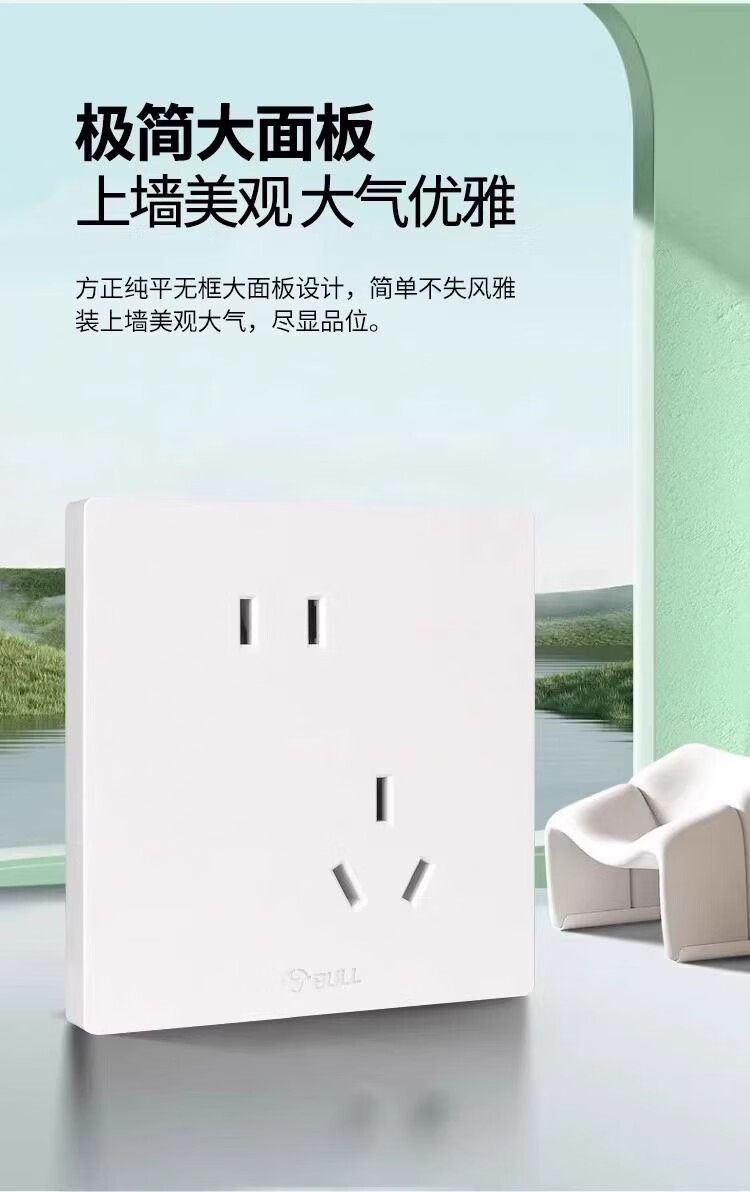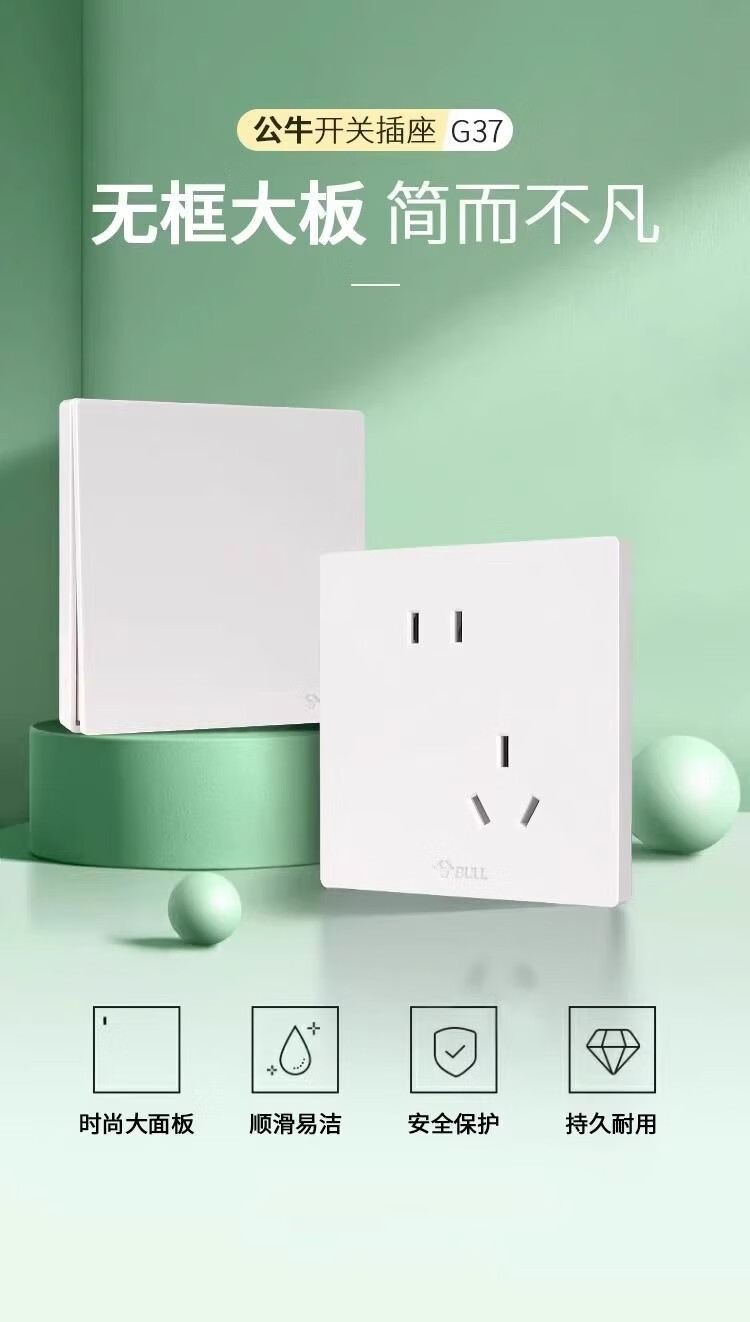 Bull g37 white switch socket frameless large panel household panel 10A five-hole 16A air conditioner 86 type concealed white + one single control