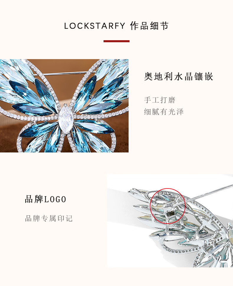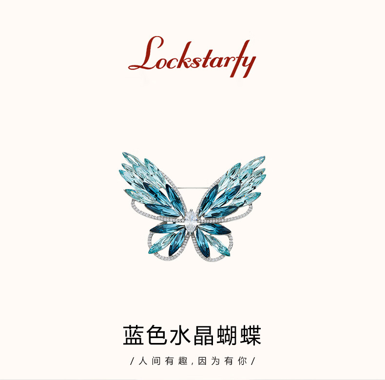 Rock Star Fei Light Luxury Brand Blue Crystal Butterfly Brooch Women's Valentine's Day Gift Corsage for Girlfriend and Wife LXZ00502 Red Brand Gift Box
