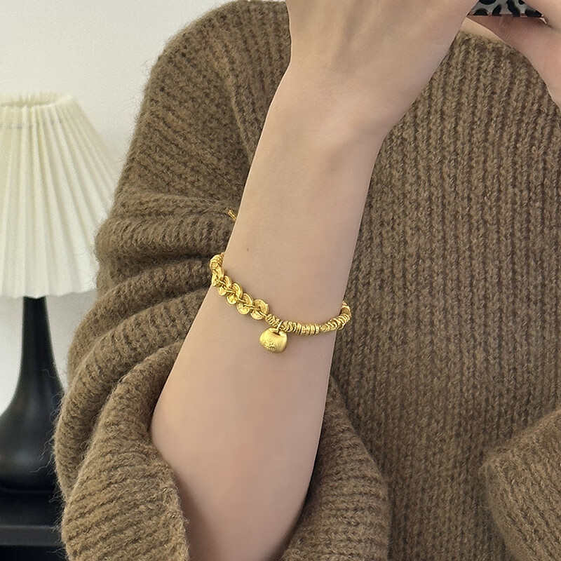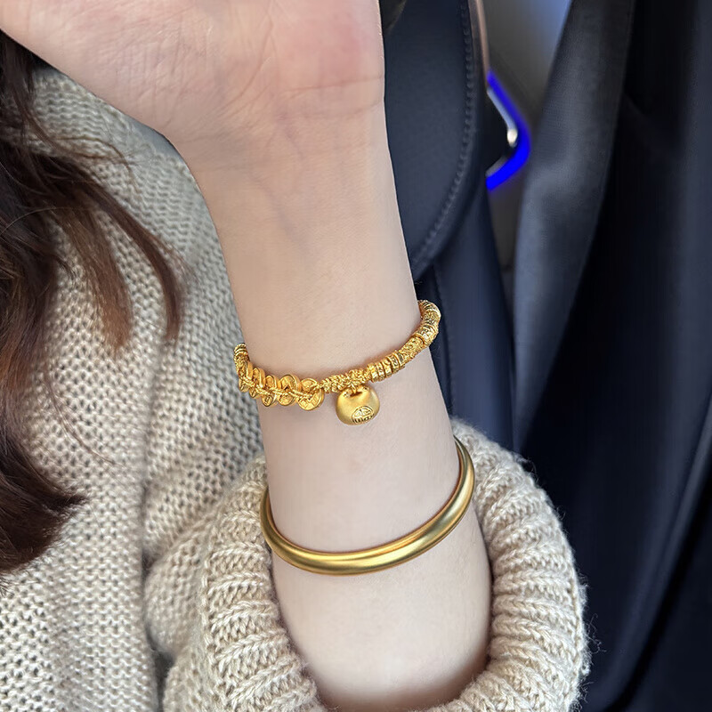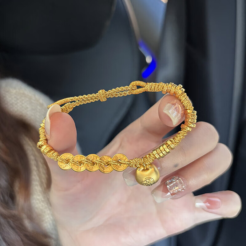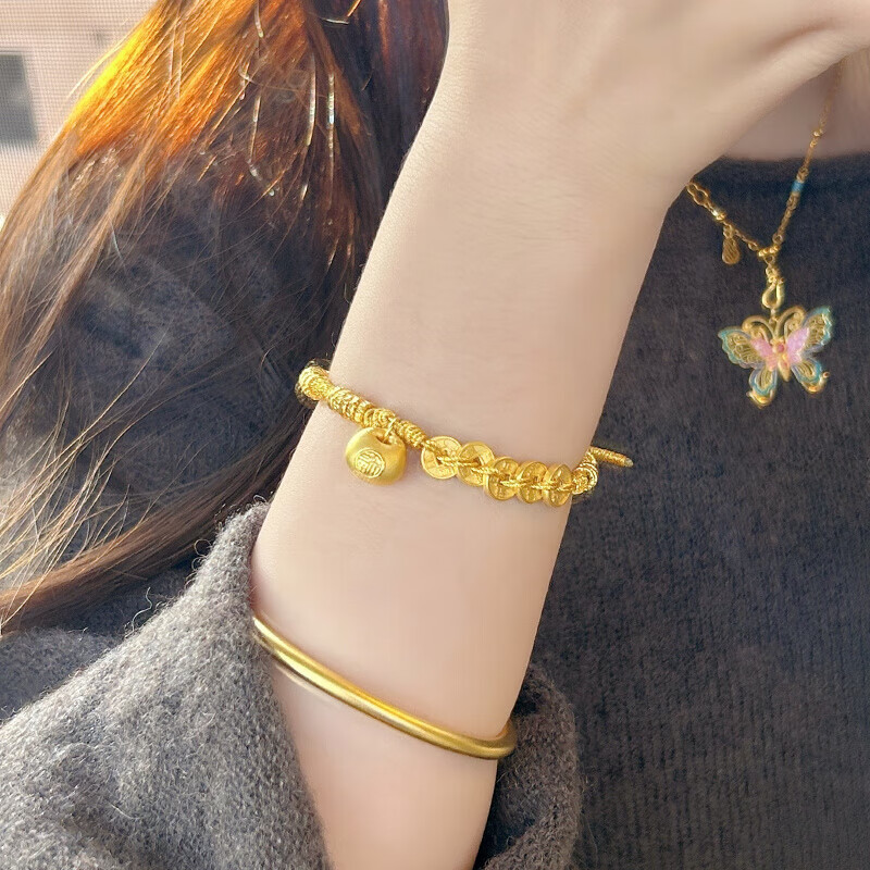 BMOI Old Phoenix 999 gold pure gold Xiaopangfu bracelet feminine style new versatile Five Emperors coin braided bracelet