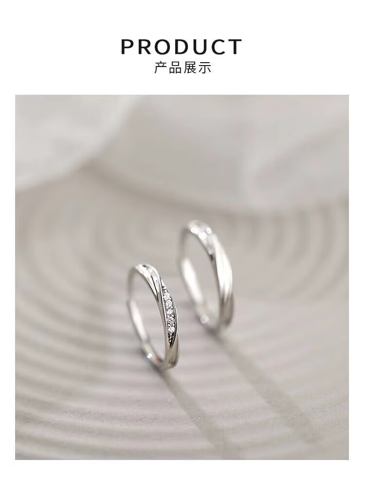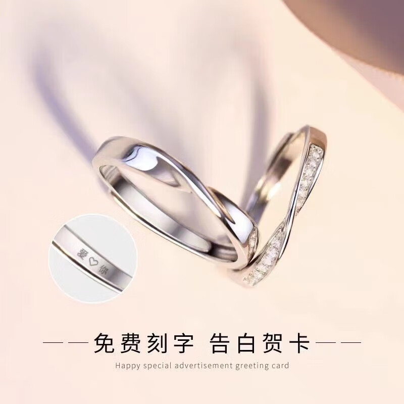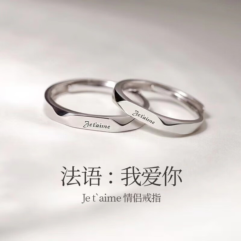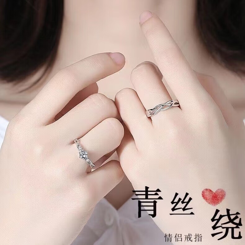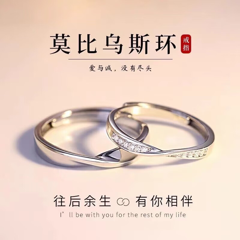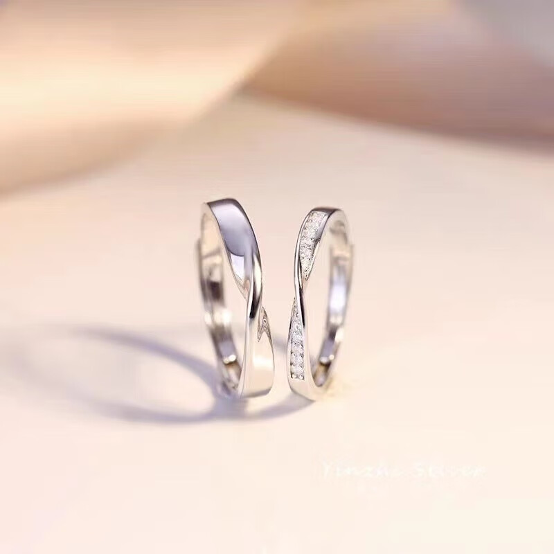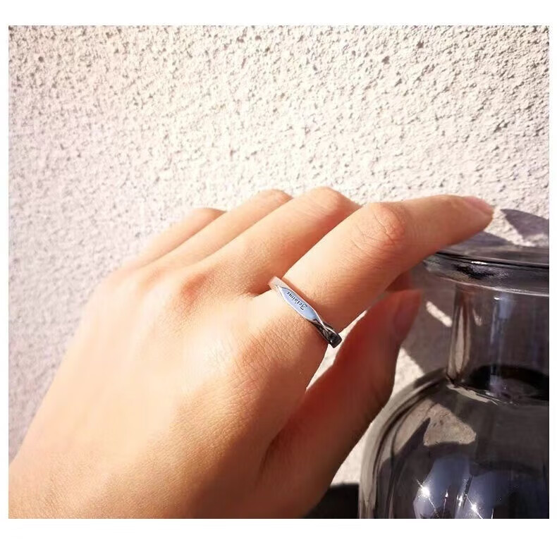 BMOI Old Phoenix 999 sterling silver pure silver new style Mobius couple ring men and women simple pair of rings for girlfriend, blue silk, engraving + certificate, couple model two pieces, live adjustment, exquisite gift box