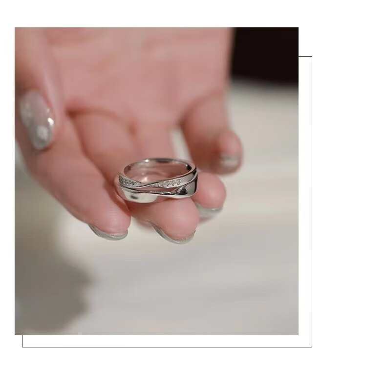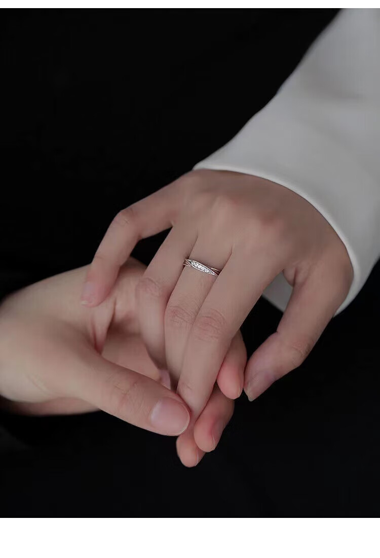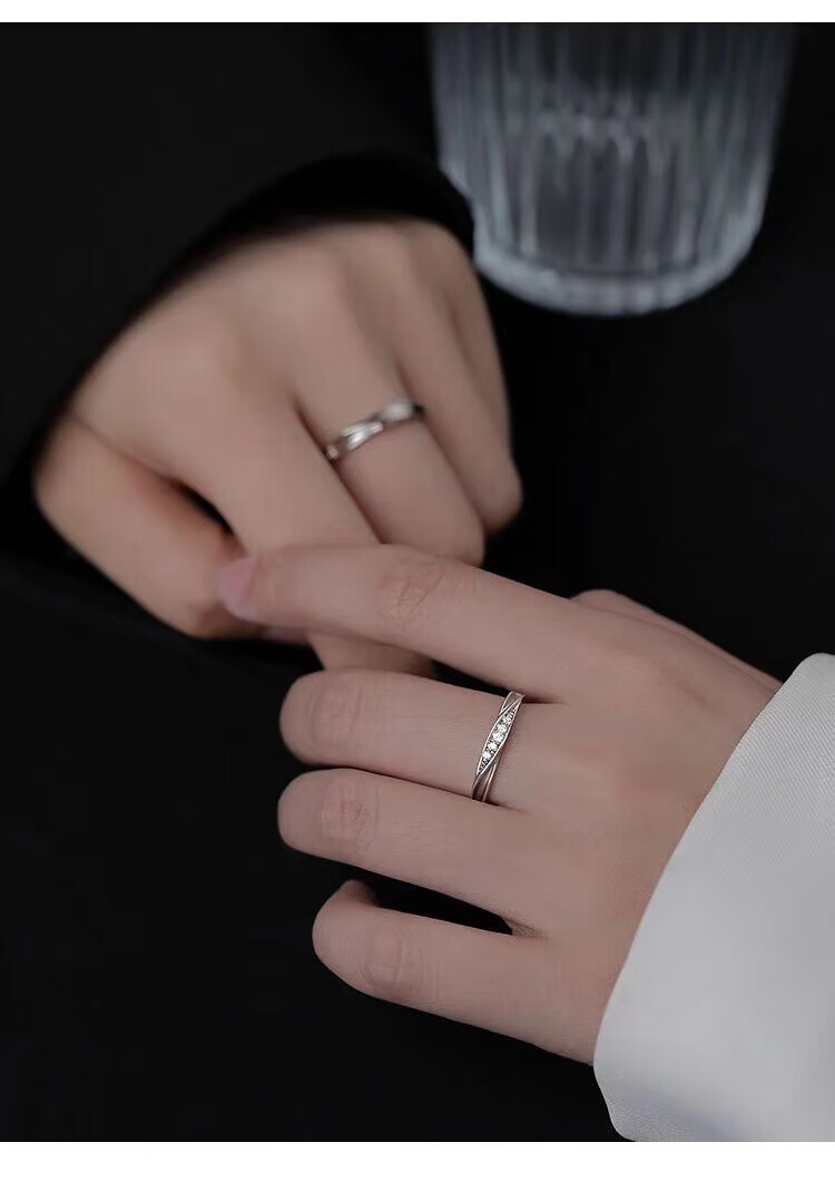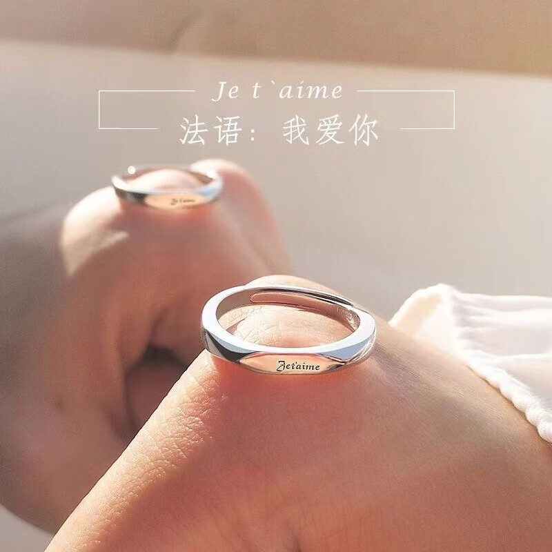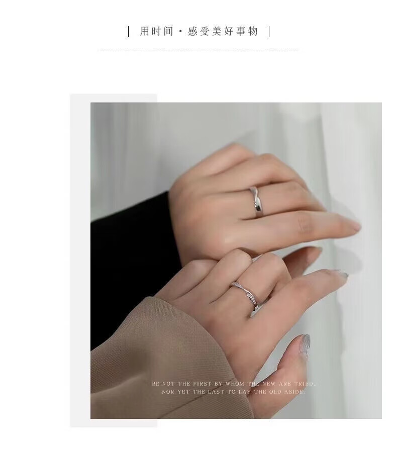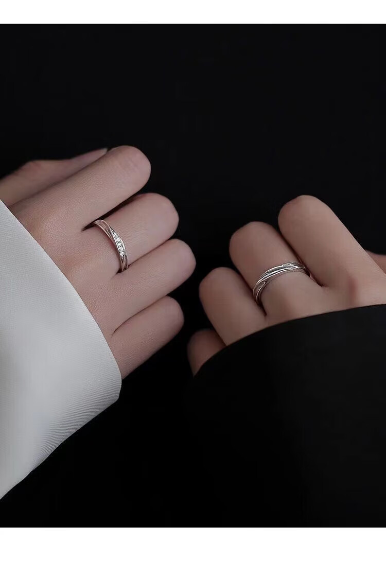 BMOI Old Phoenix 999 sterling silver pure silver new style Mobius couple ring men and women simple pair of rings for girlfriend, blue silk, engraving + certificate, couple model two pieces, live adjustment, exquisite gift box