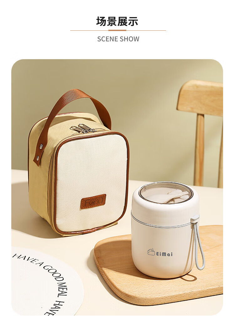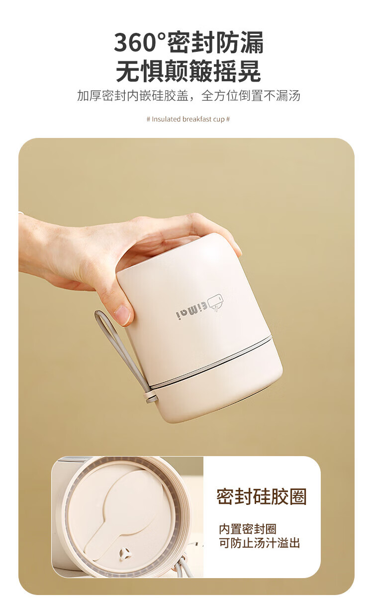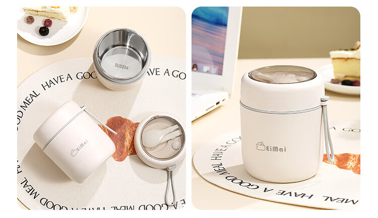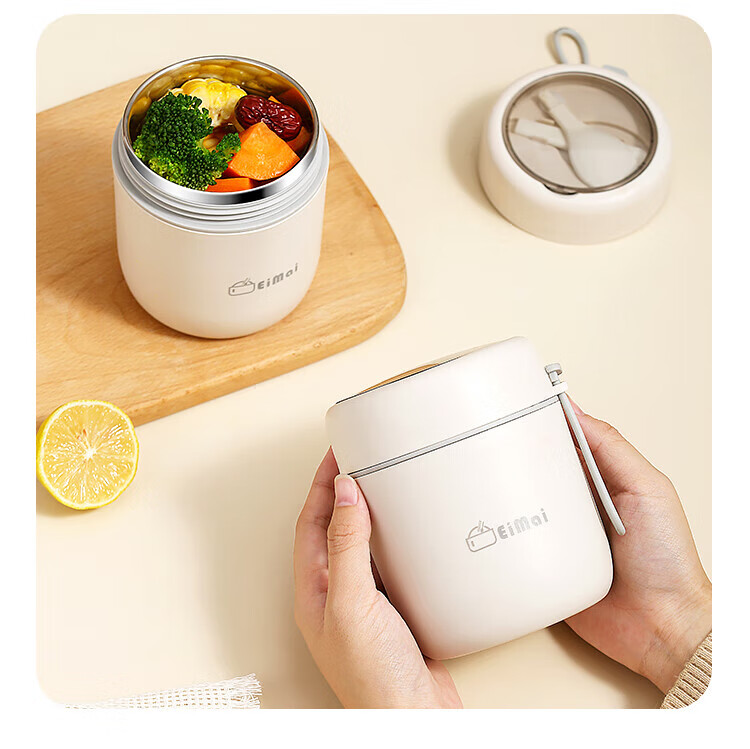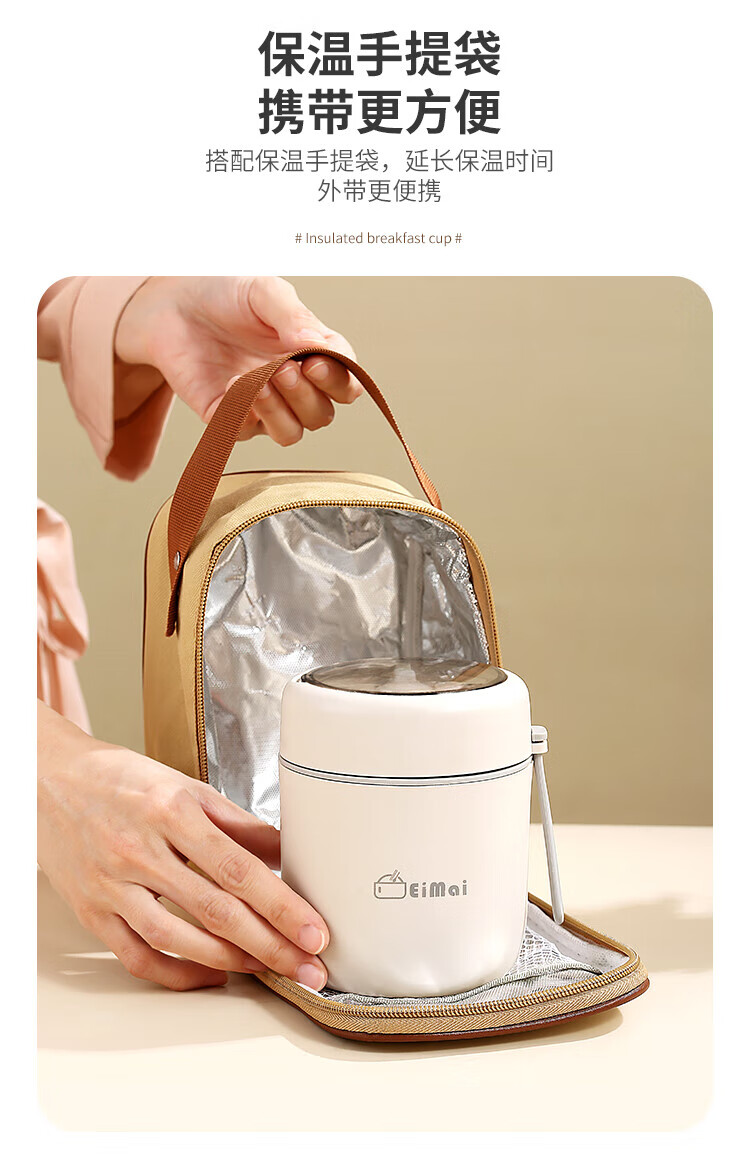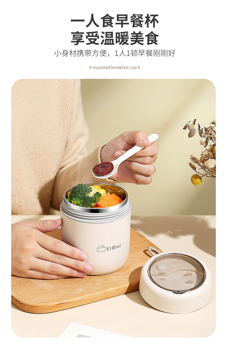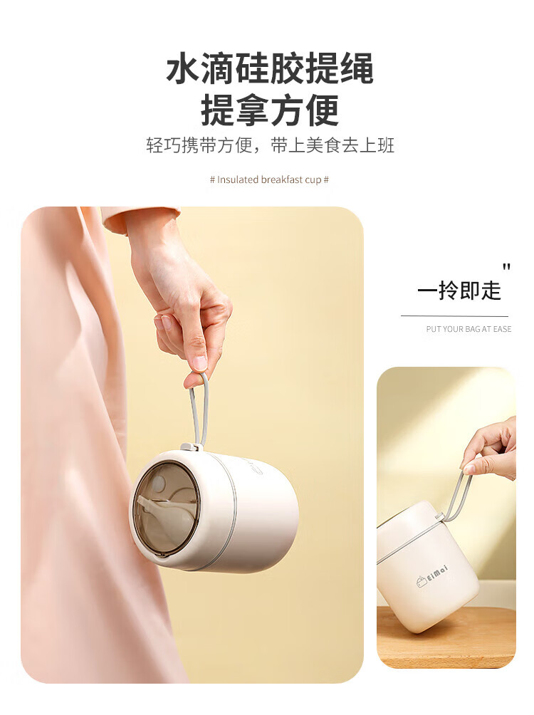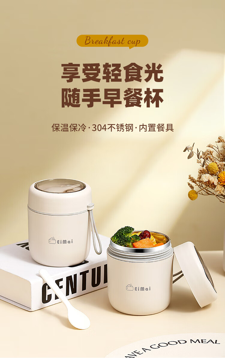 ZANLUTONG insulated cup oatmeal cup with lid and spoon breakfast cup insulated lunch box small insulated mini stew beaker soup pineapple off-white breakfast cup - free spoon 500ml