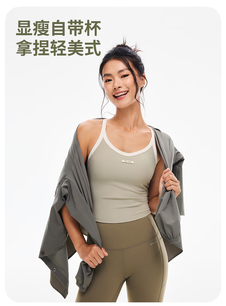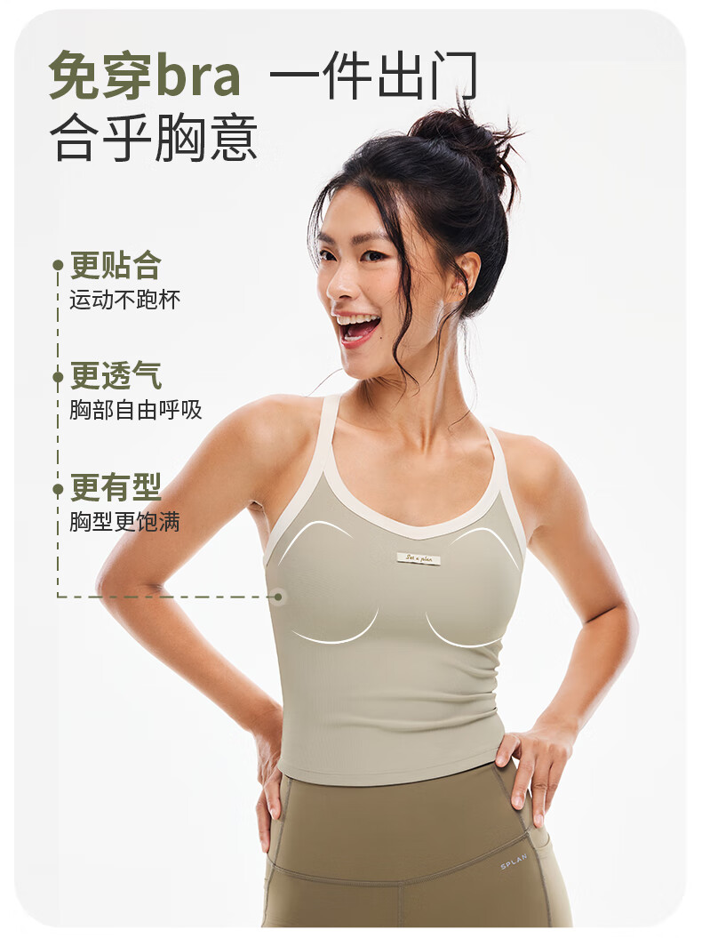 SPLAN-S++ comes with a cup sports vest for women to wear as a beautiful back dance yoga fitness suspender underwear quick-drying khaki green S