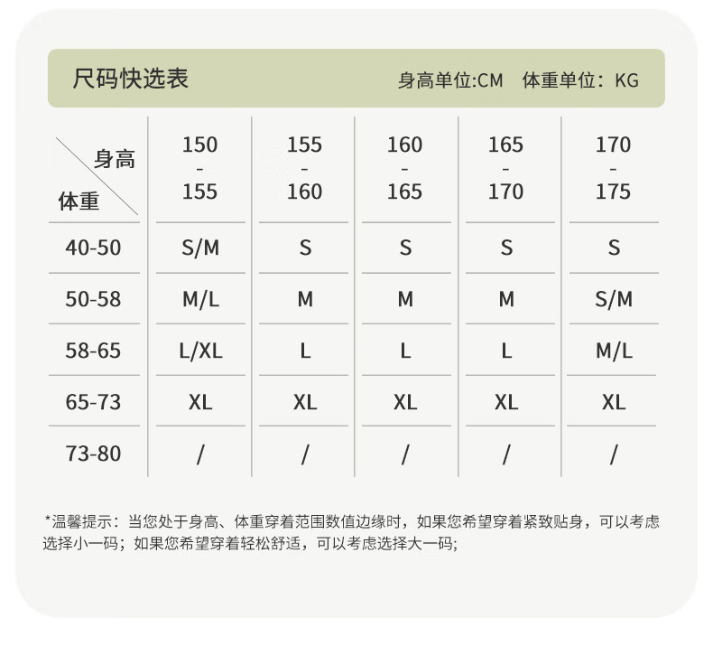 China (cm) 160-165/84-86 165-170 / 88-90 167-172 / 92-96 168-173 / 98-102 170-176 / 106-110