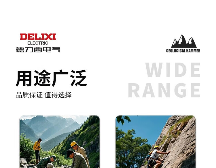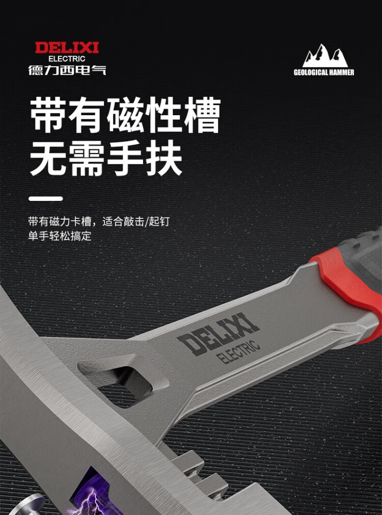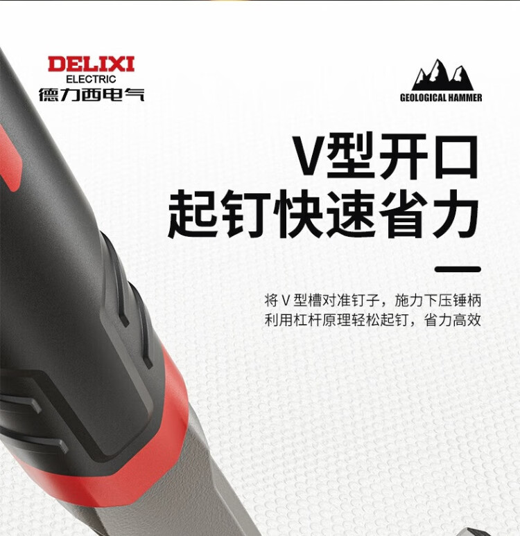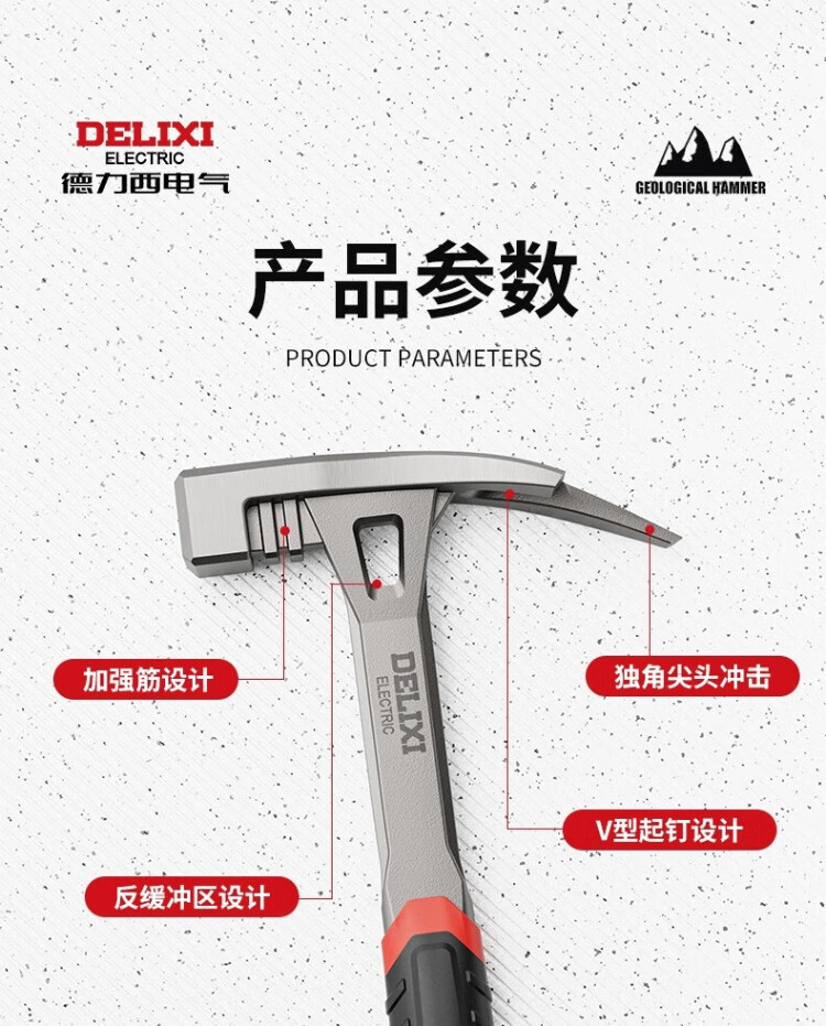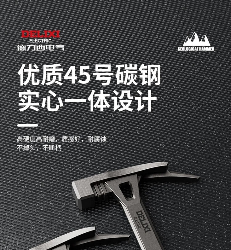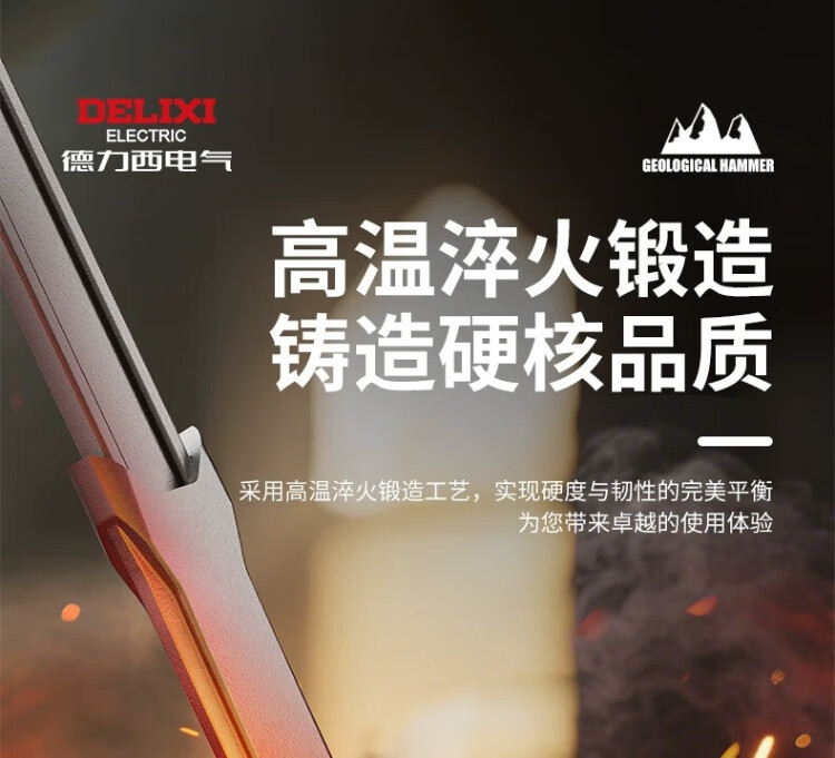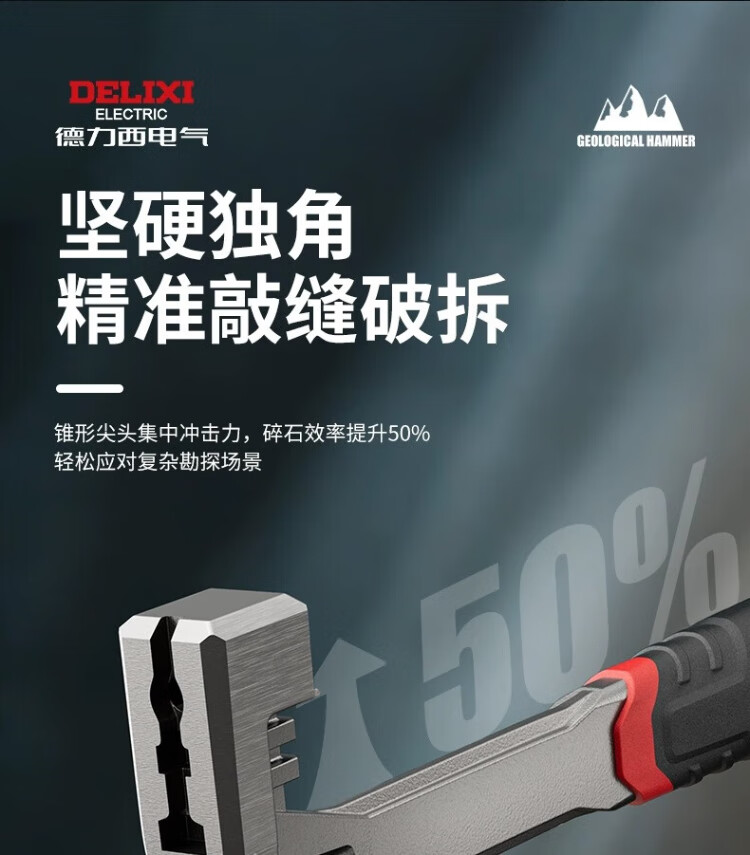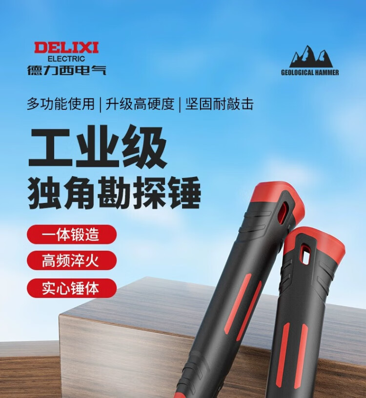 Delixi geological hammer, professional exploration hammer, outdoor stone digging tool, pointed mountaineering pick, ore mining crystal hammer, small hardened one-horned geological hammer + masonry chisel