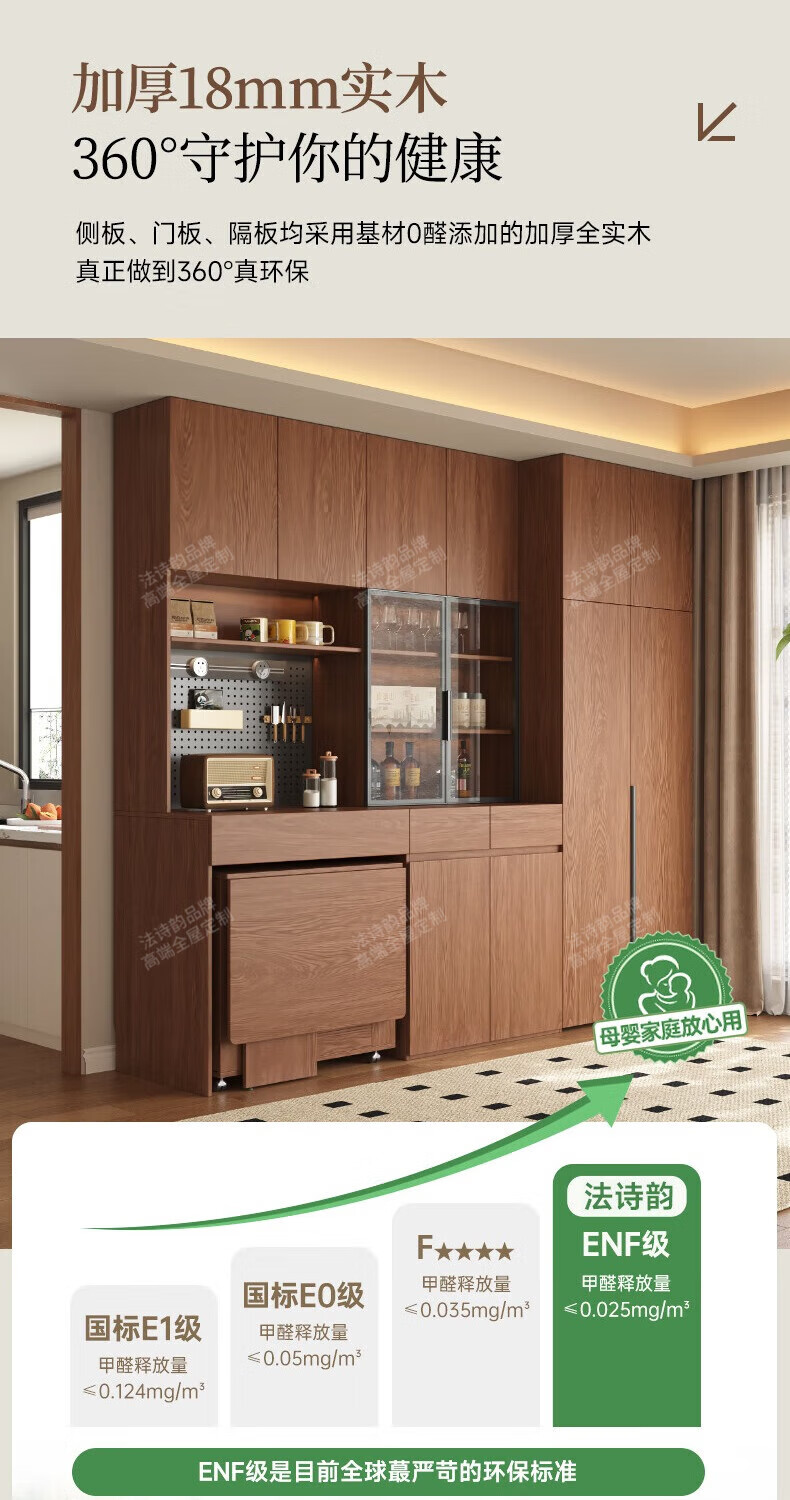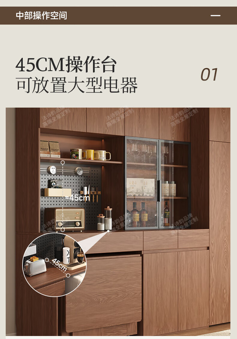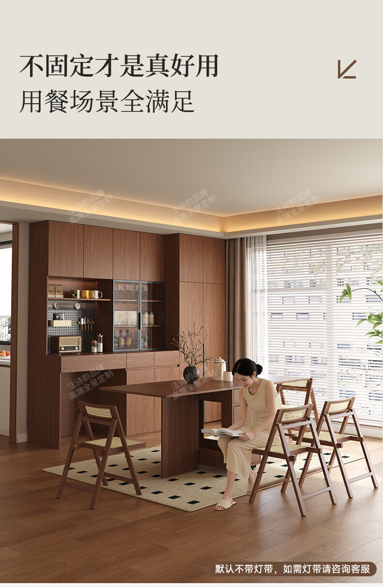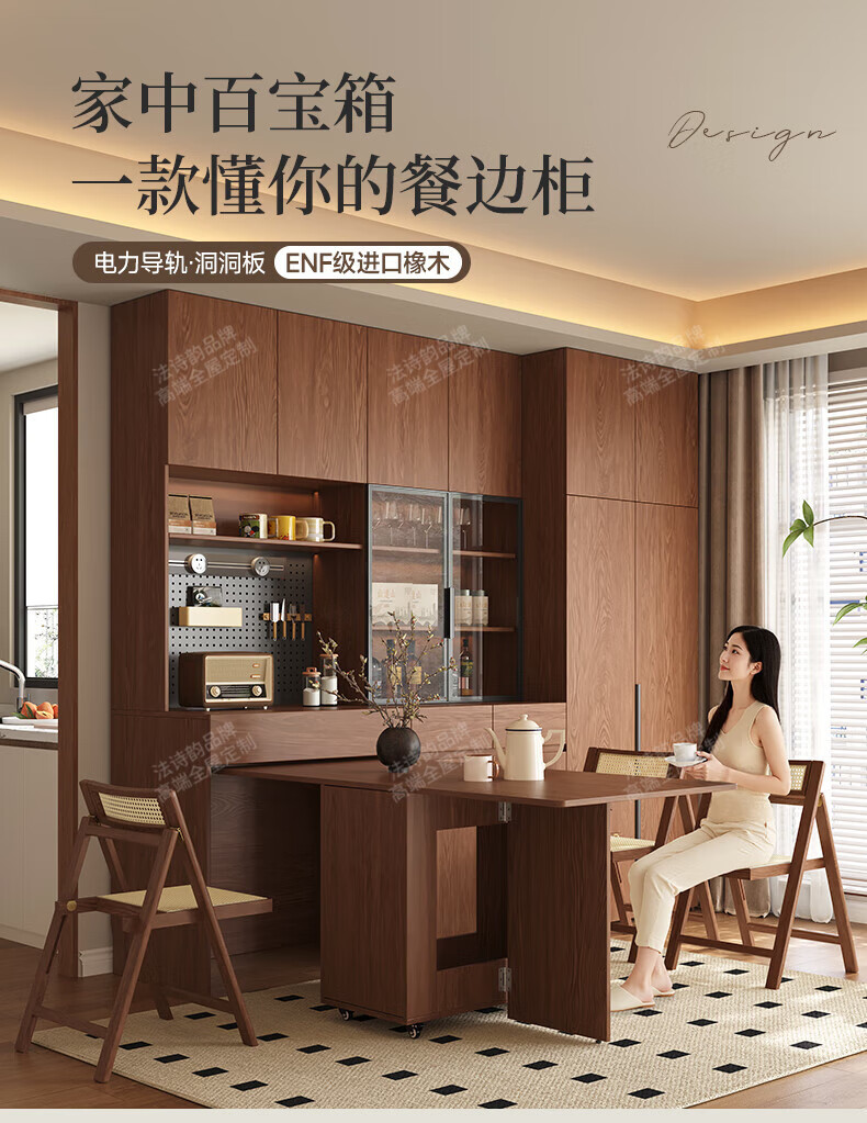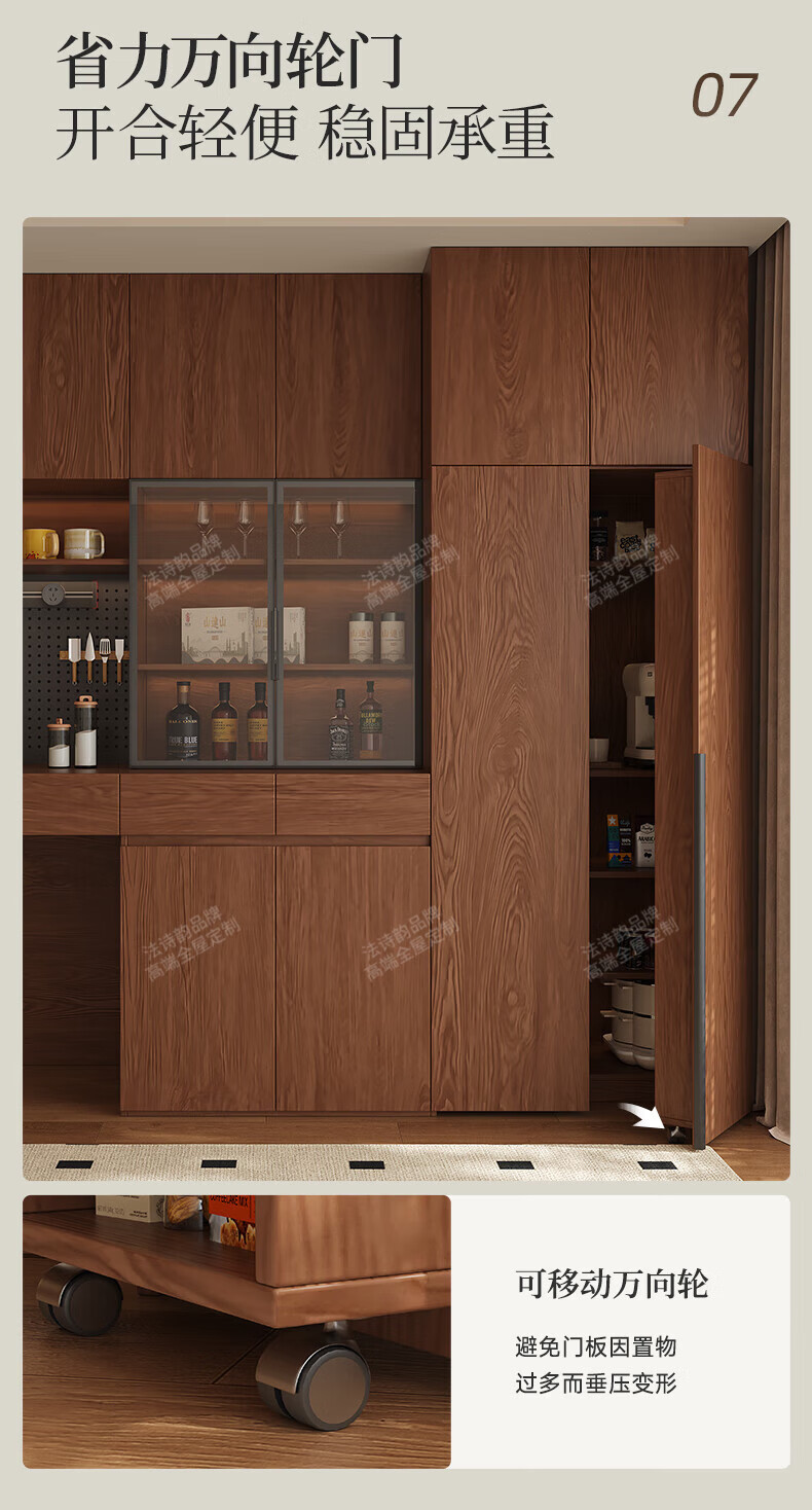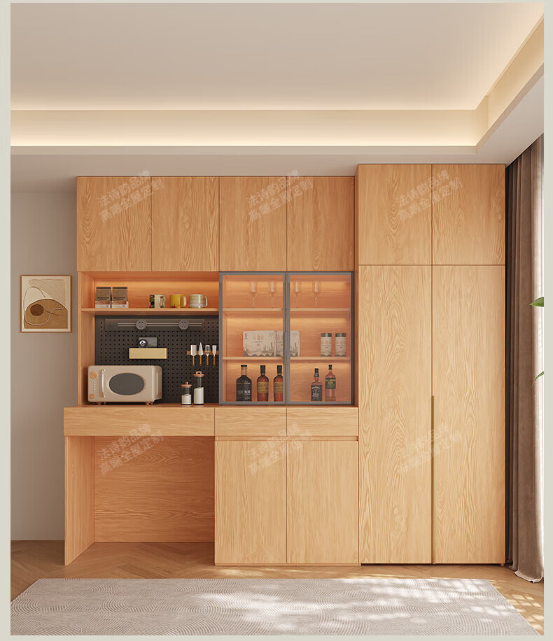 French Shiyun sideboard custom-made oak all-solid wood folding dining table integrated glass wall-mounted walnut storage cabinet to the top living room 2.2 meters long * 2.4 meters high (six-door sideboard) free perforated board and double-hole track socket by default