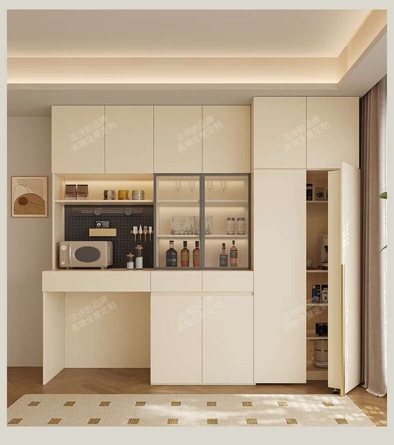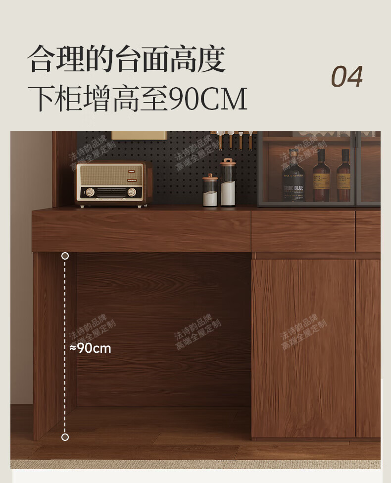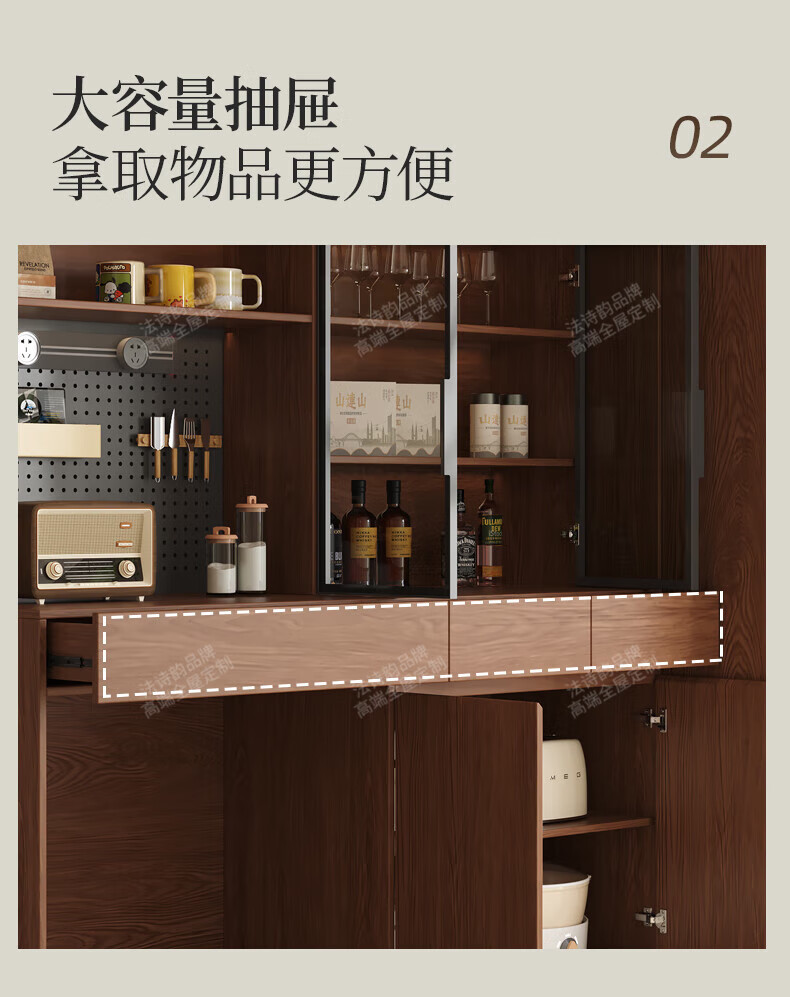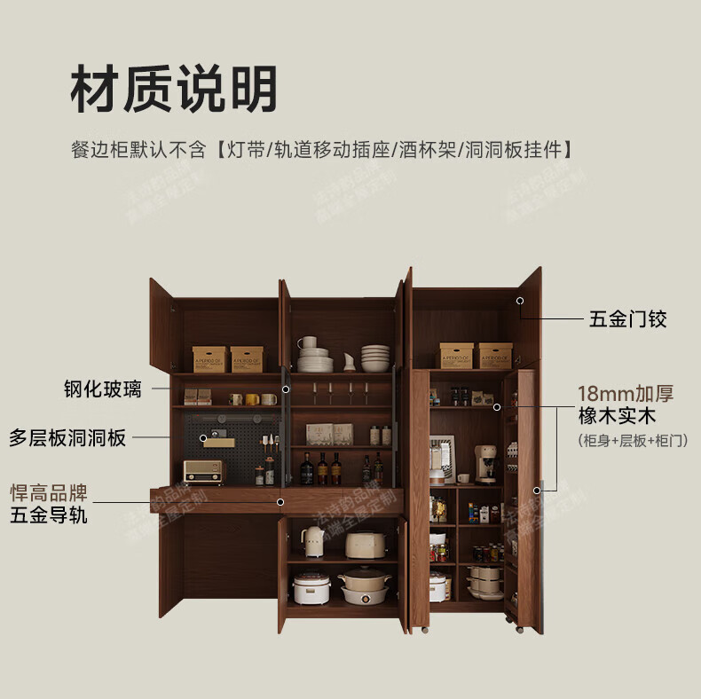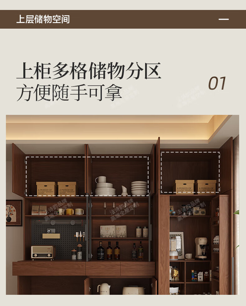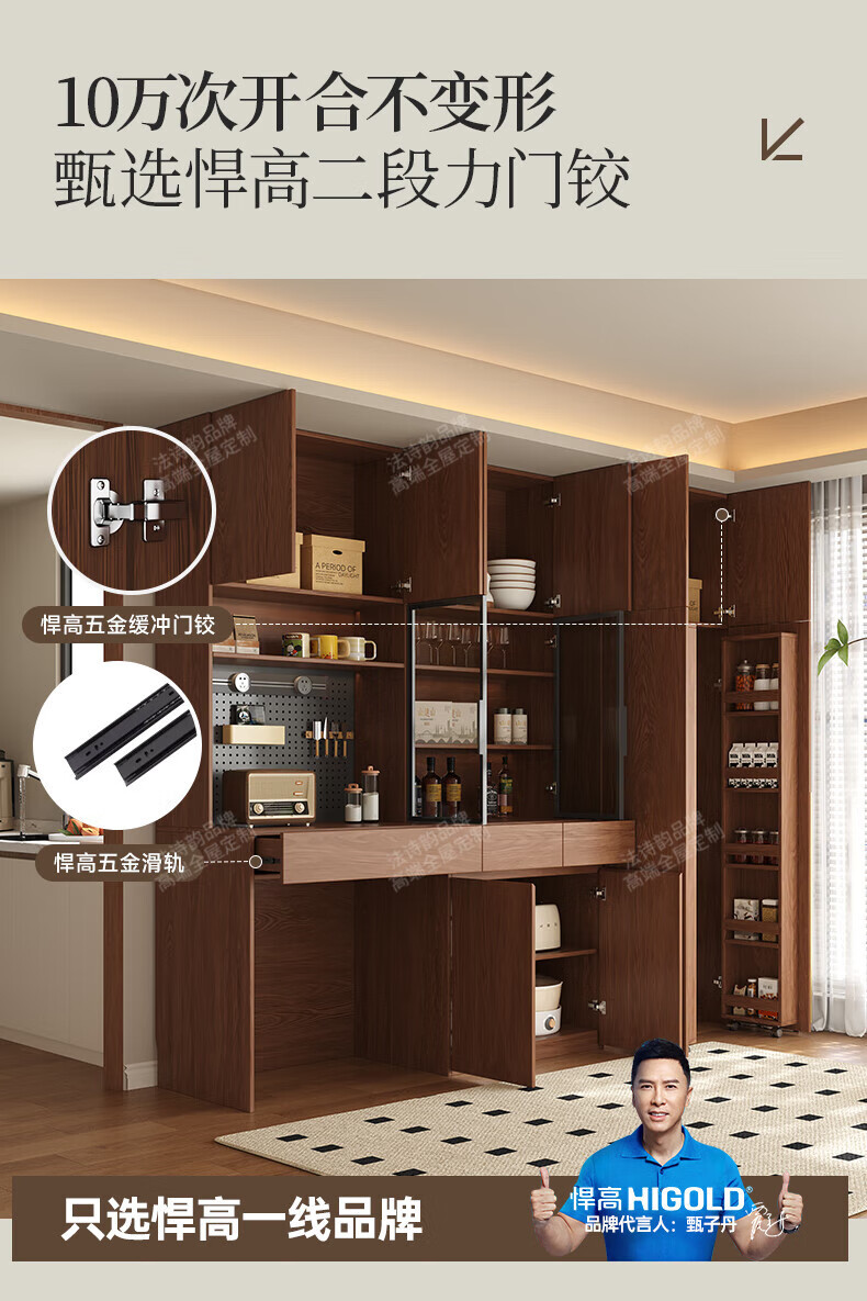 French Shiyun sideboard custom-made oak all-solid wood folding dining table integrated glass wall-mounted walnut storage cabinet to the top living room 2.2 meters long * 2.4 meters high (six-door sideboard) free perforated board and double-hole track socket by default