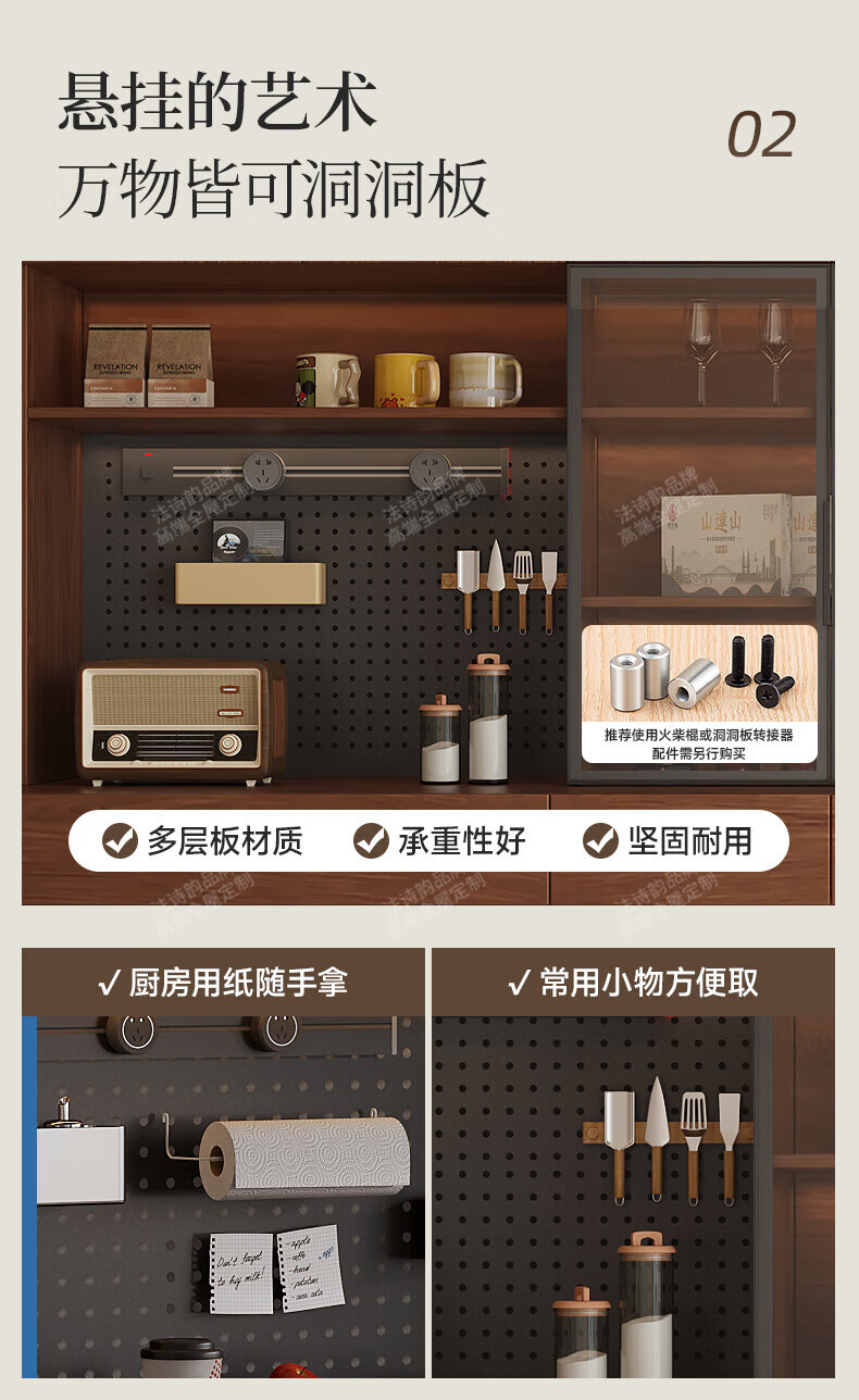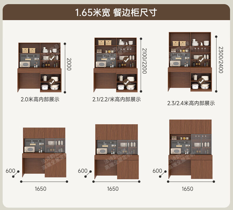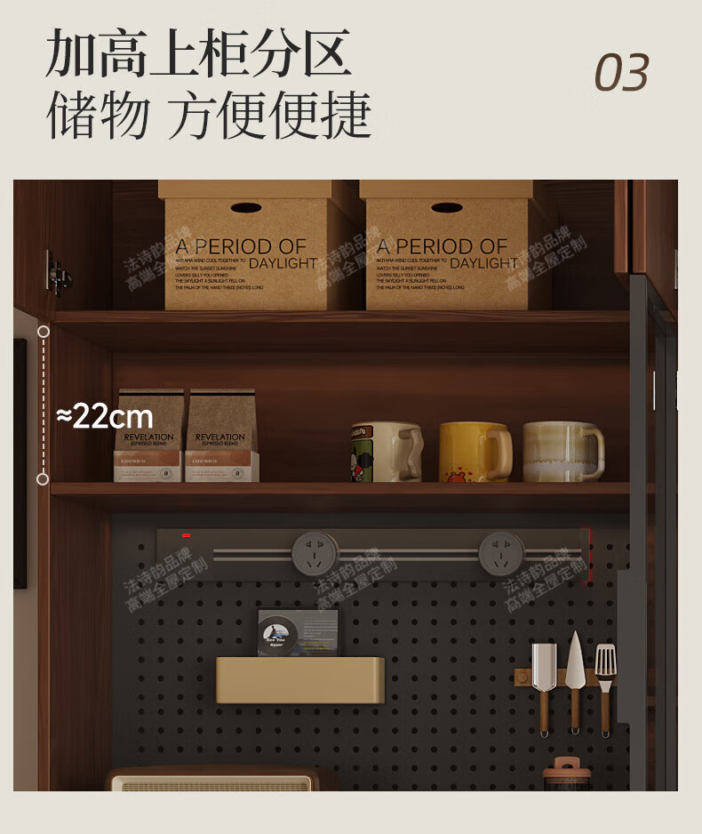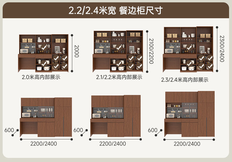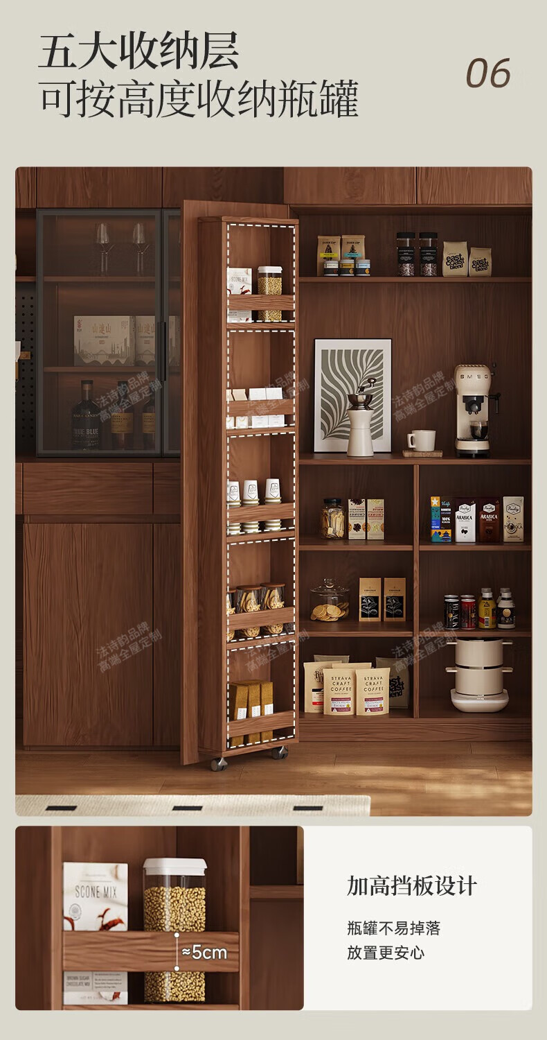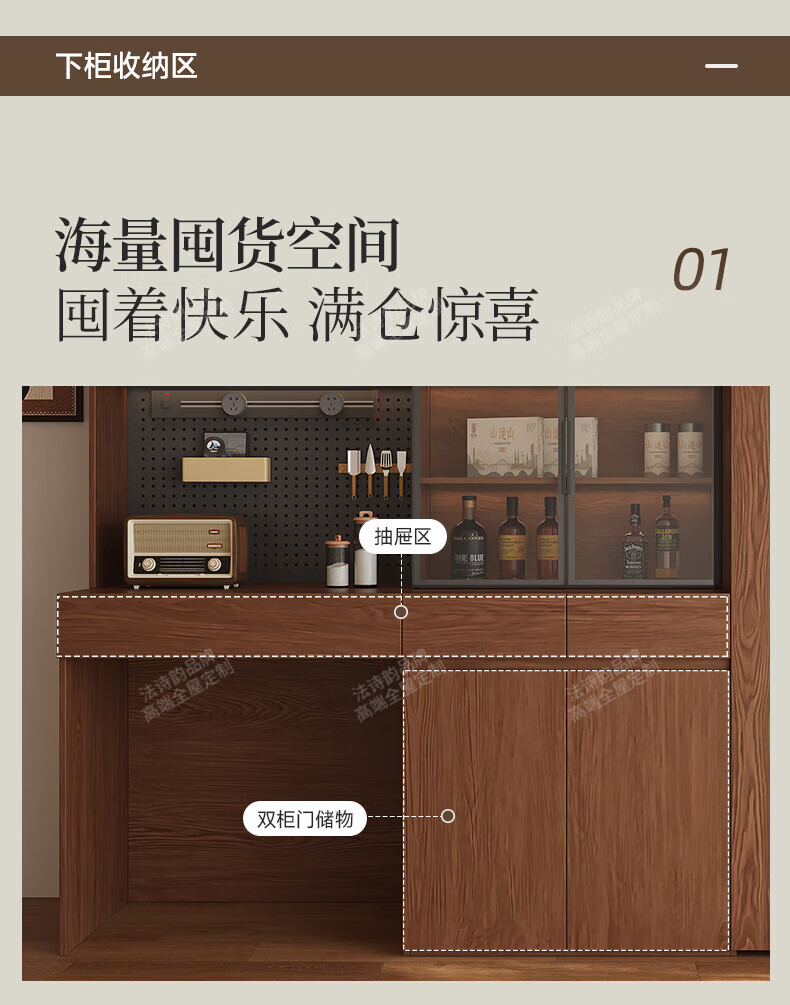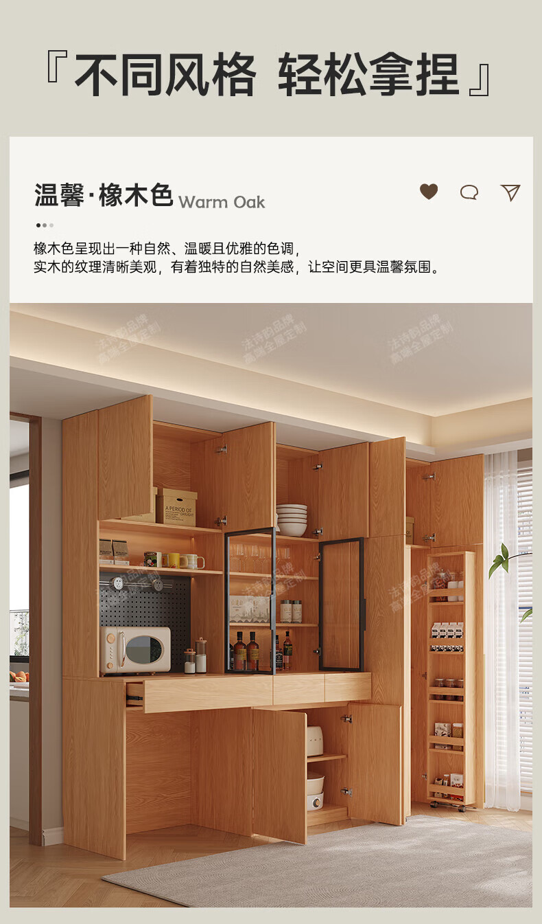 French Shiyun sideboard custom-made oak all-solid wood folding dining table integrated glass wall-mounted walnut storage cabinet to the top living room 2.2 meters long * 2.4 meters high (six-door sideboard) free perforated board and double-hole track socket by default