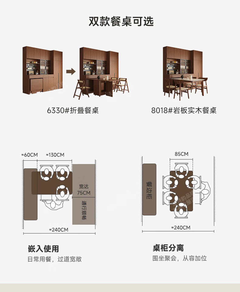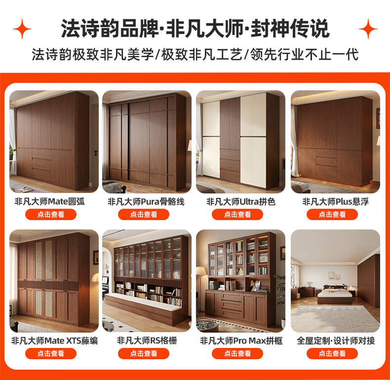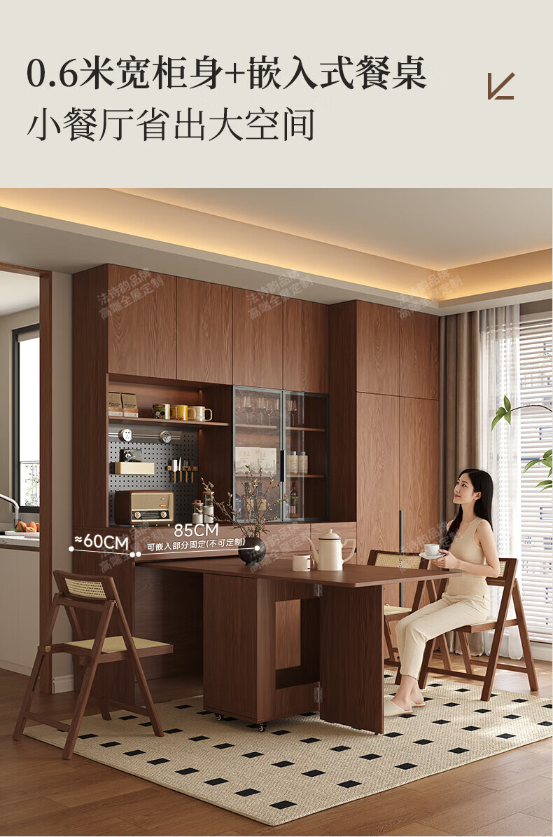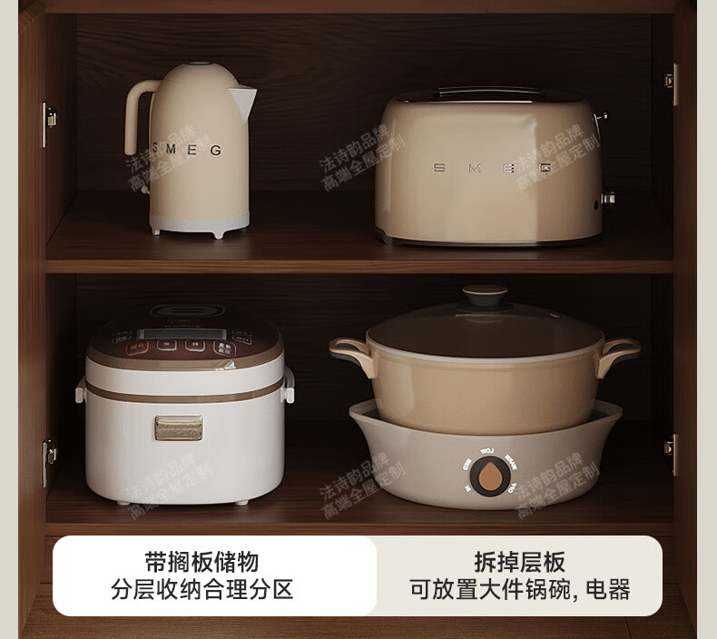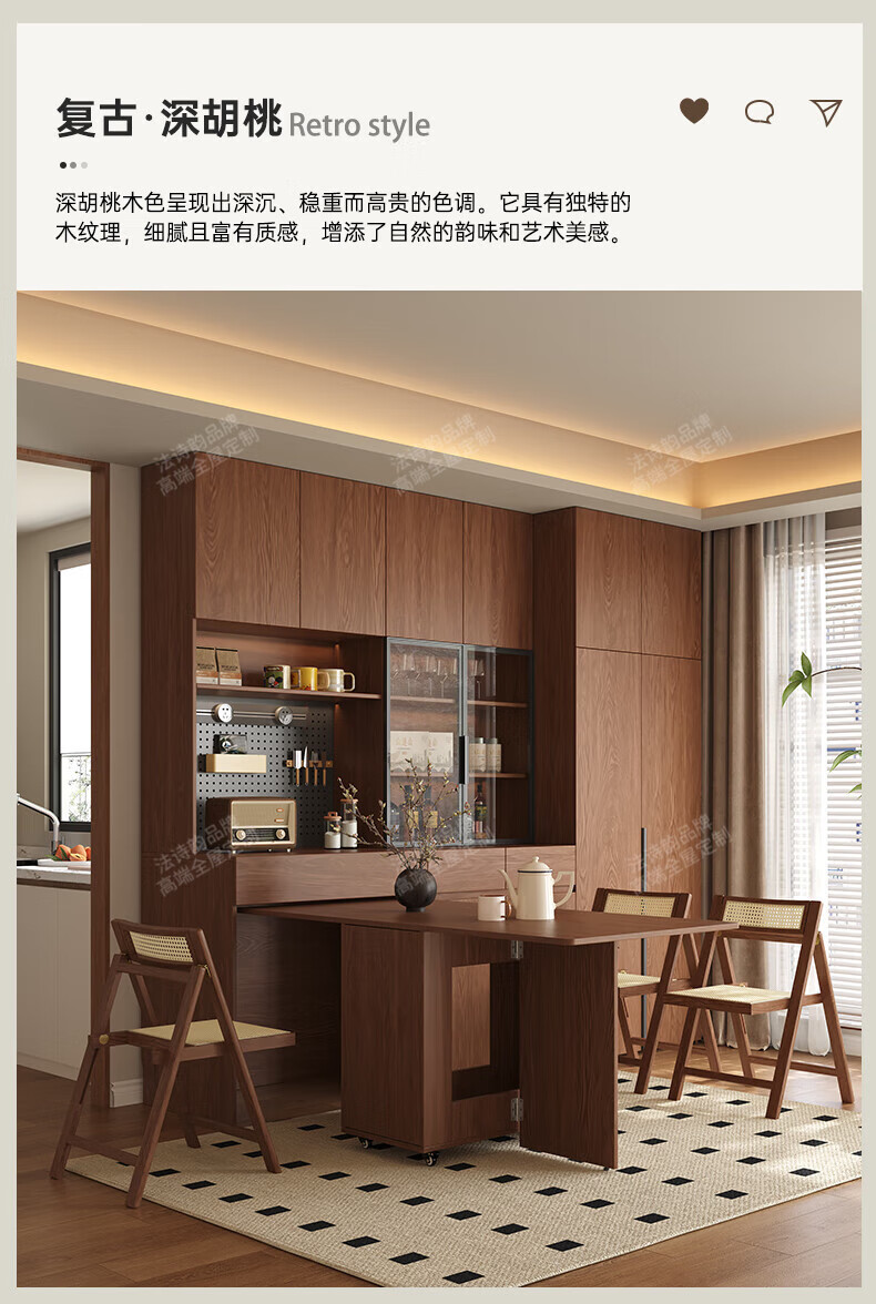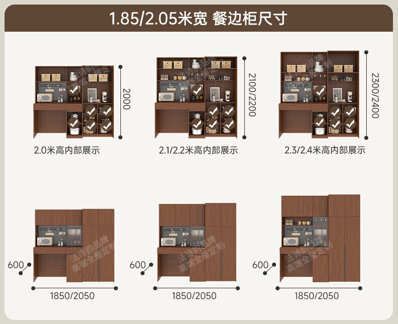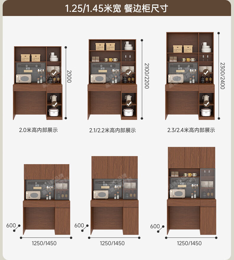 French Shiyun sideboard custom-made oak all-solid wood folding dining table integrated glass wall-mounted walnut storage cabinet to the top living room 2.2 meters long * 2.4 meters high (six-door sideboard) free perforated board and double-hole track socket by default
