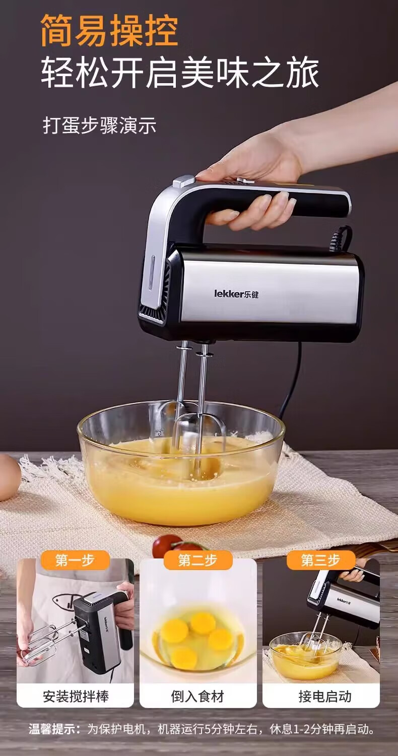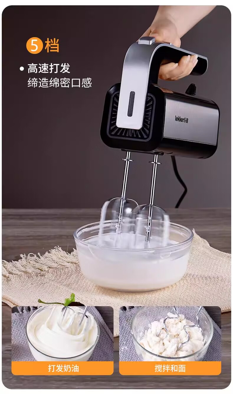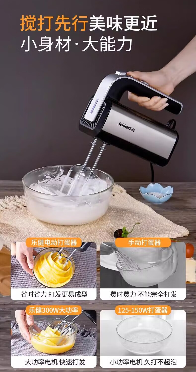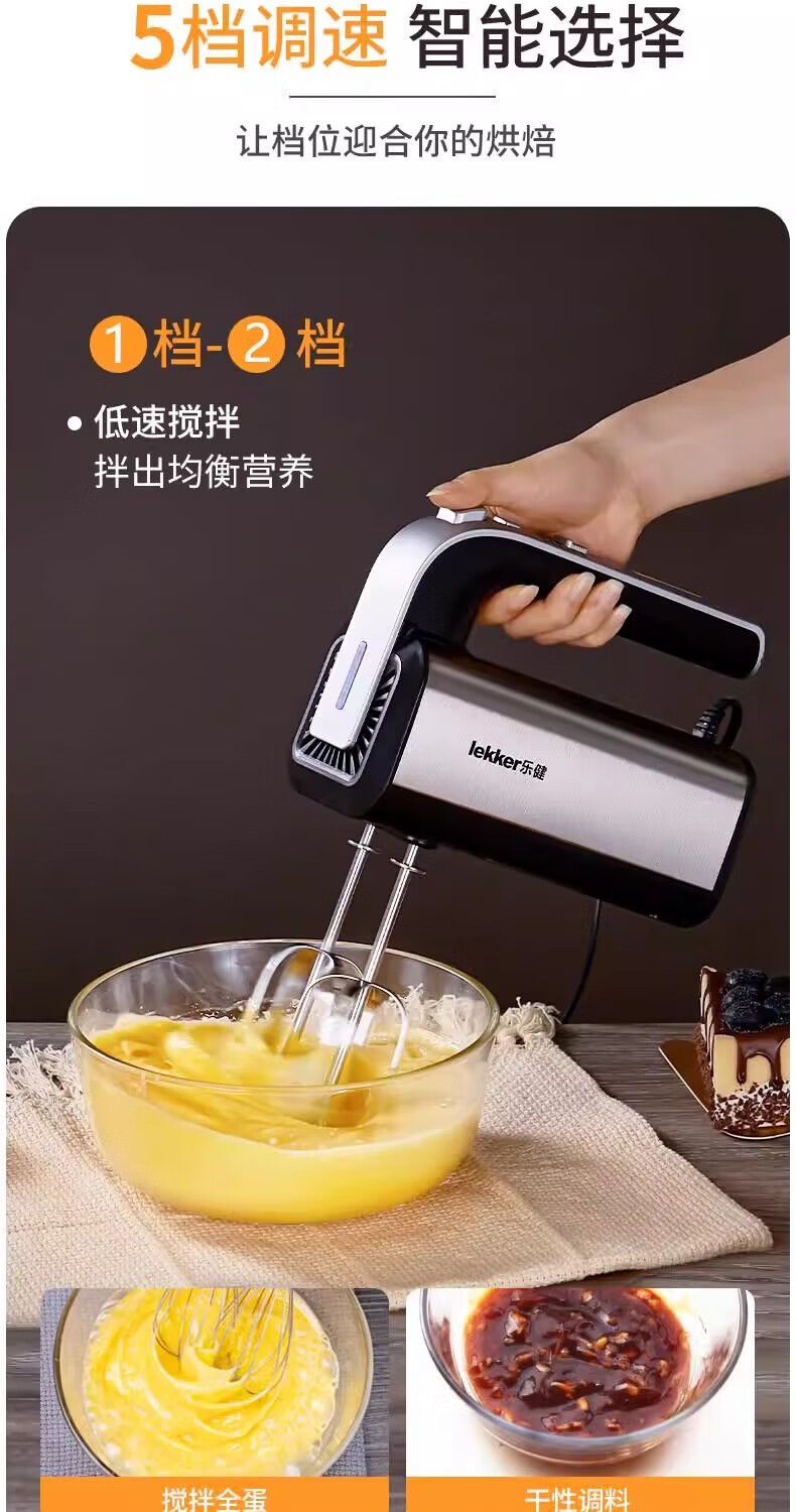 Del Lejian egg beater baking egg beater small electric handheld cake mixer household egg white cream whipper Lejian 6629 round egg beater 200W