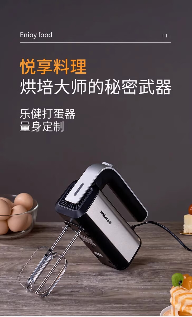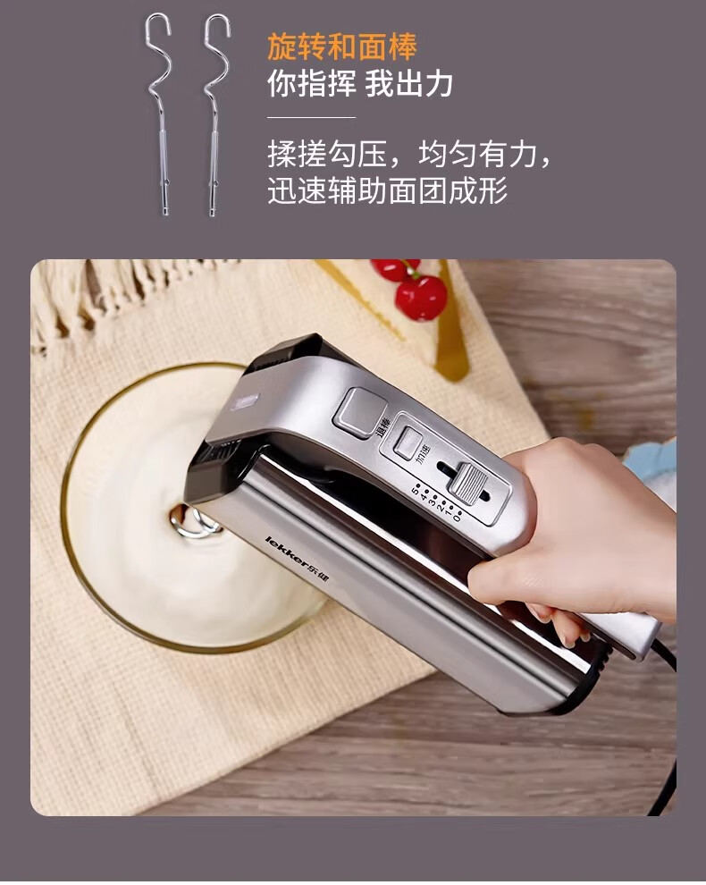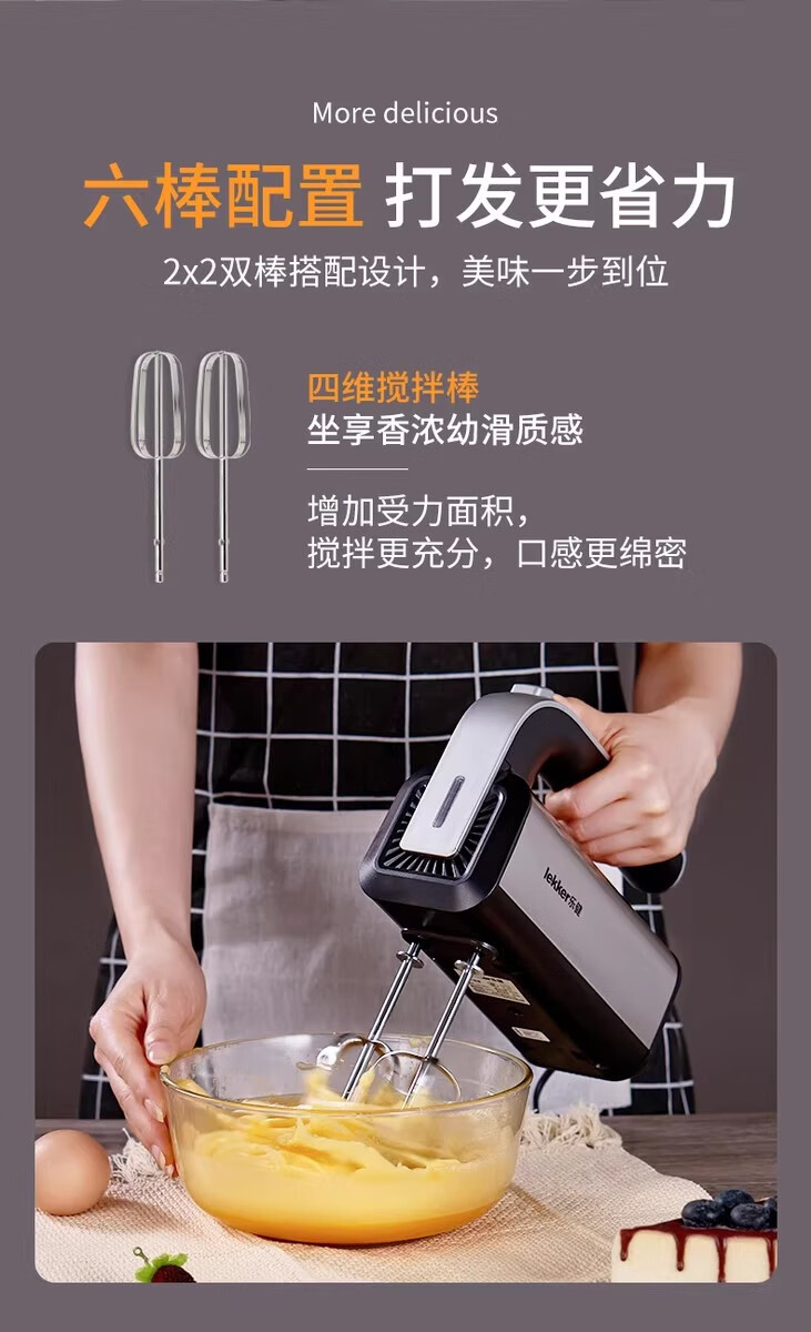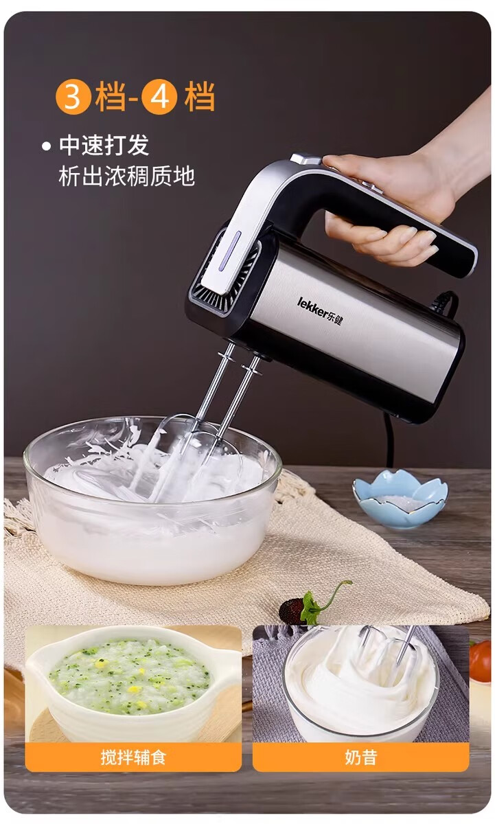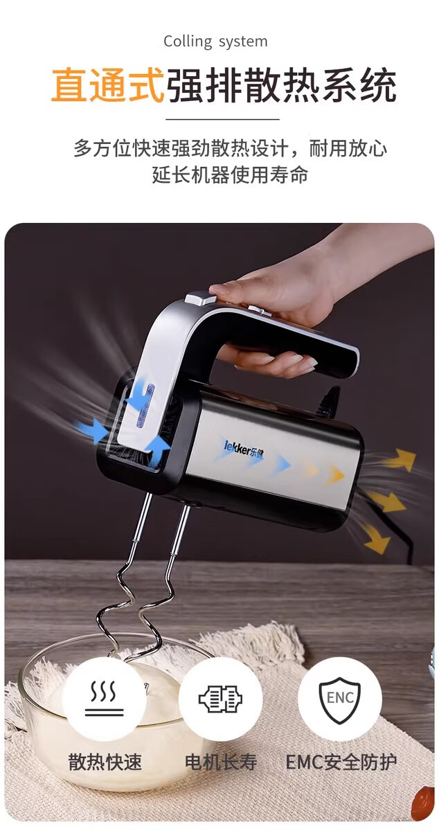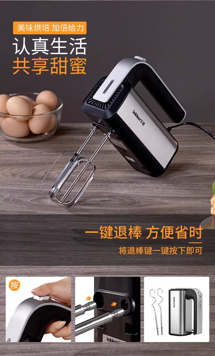 Del Lejian egg beater baking egg beater small electric handheld cake mixer household egg white cream whipper Lejian 6629 round egg beater 200W
