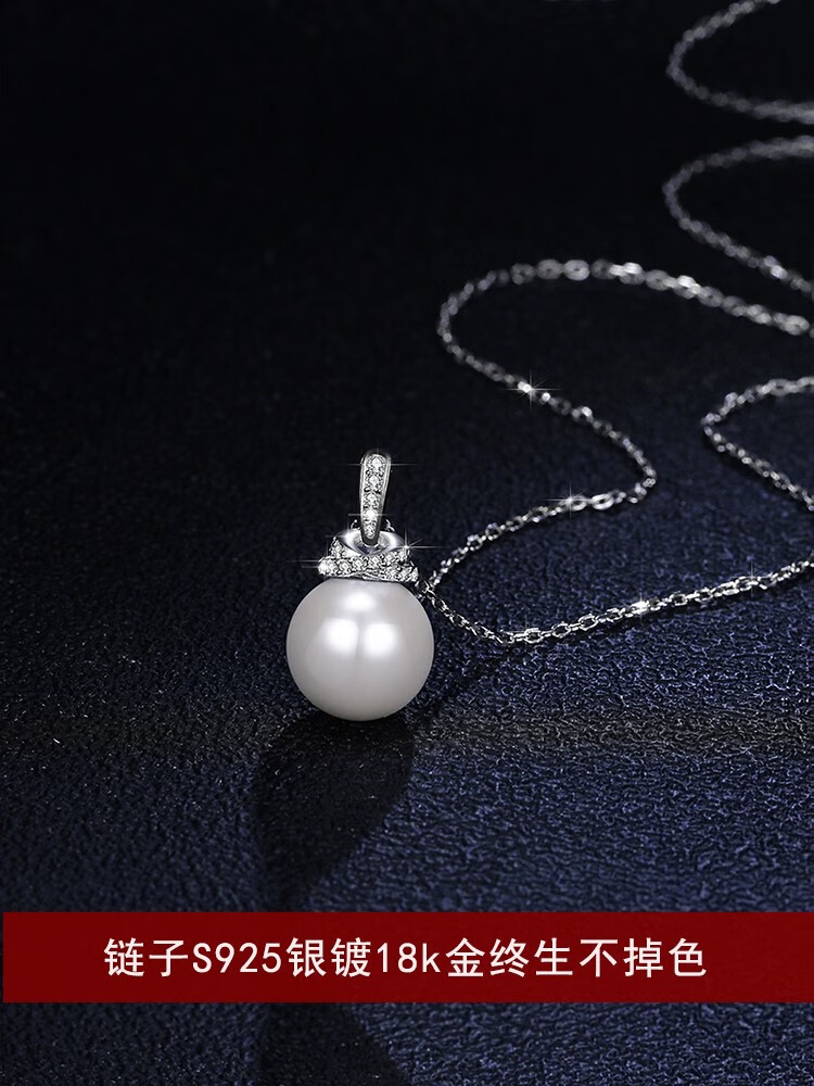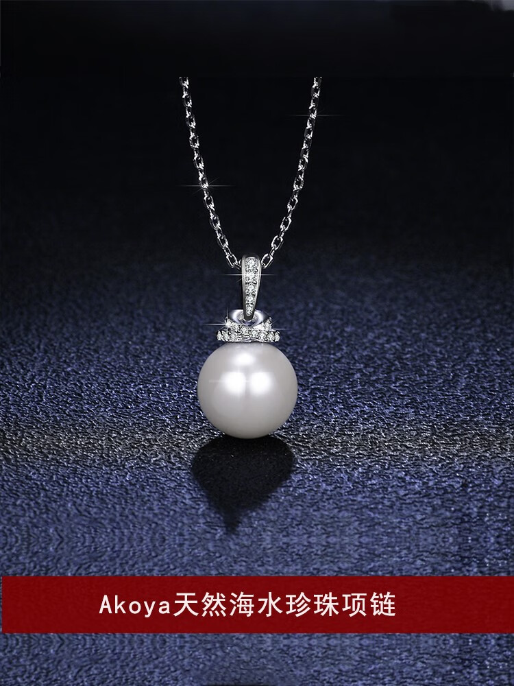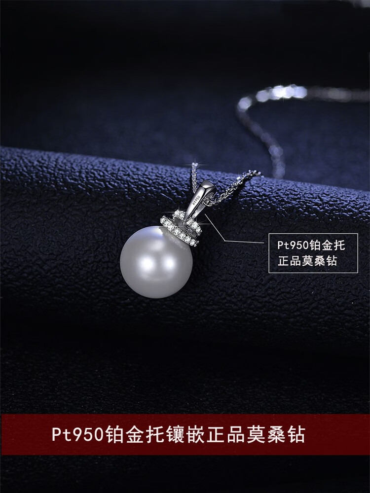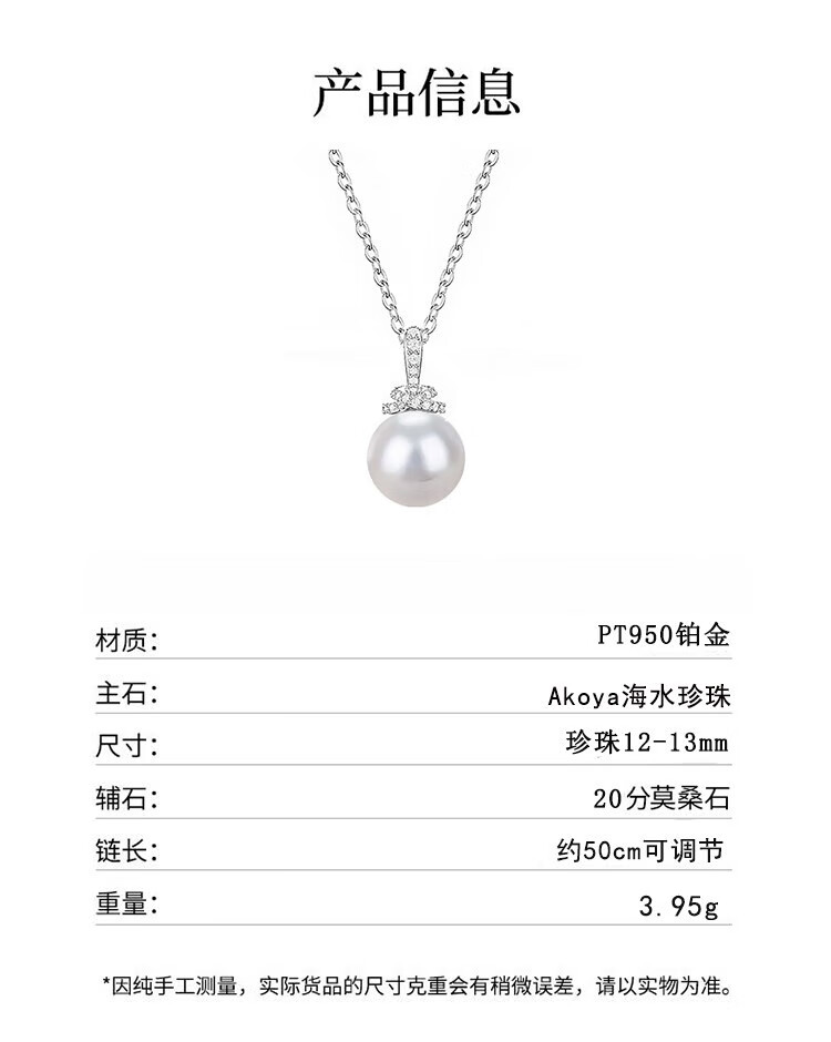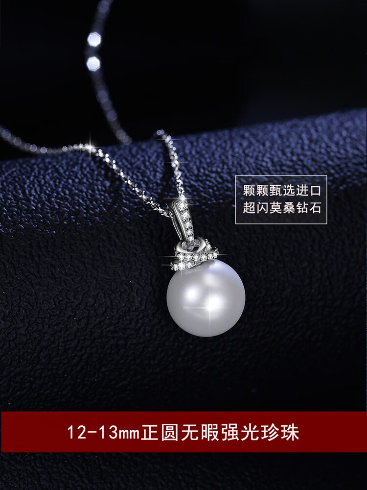 Centenary-old Fenxiang natural seawater pearl necklace Pt950 platinum single pendant perfect round and flawless 18K gold glare Akoya seawater pearl 12-13mm micro-encrusted with diamonds