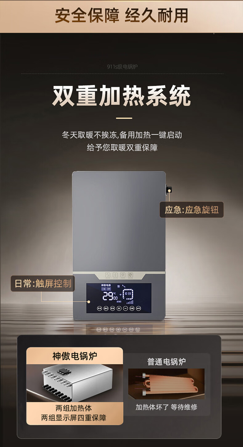 神傲电锅炉家用采暖炉220v新型380v半导体取暖农村三相暖气片地暖煤改 911A壁挂款12kw【应急双制热】 【遥控+WiFi套餐】应急制热系统