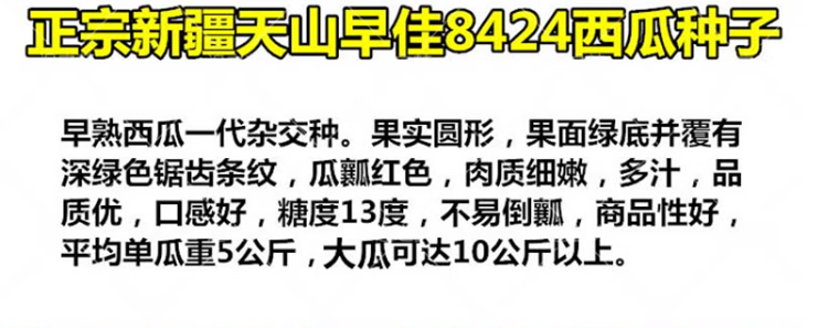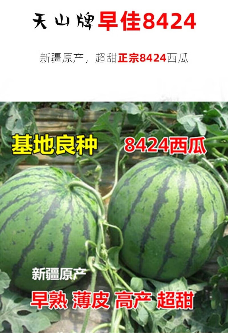 Thin-skinned rock sugar watermelon seeds Xinjiang Tianshan Zaojia 8424 watermelon seeds early maturing large fruit super sweet Qi selected 8424 original 50g