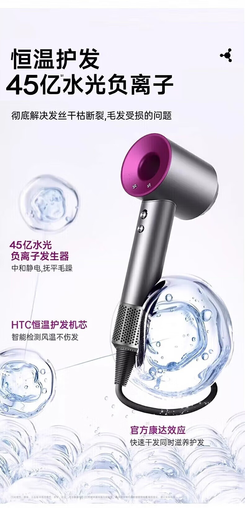 Dyson (DYSON) series of the same 4.5 billion negative ion high-speed leafless high-power silent hair care home non-injurious hair dryer hair dryer classic gray 4.5 billion moisturizing negative ions single air nozzle - nourishing hair care