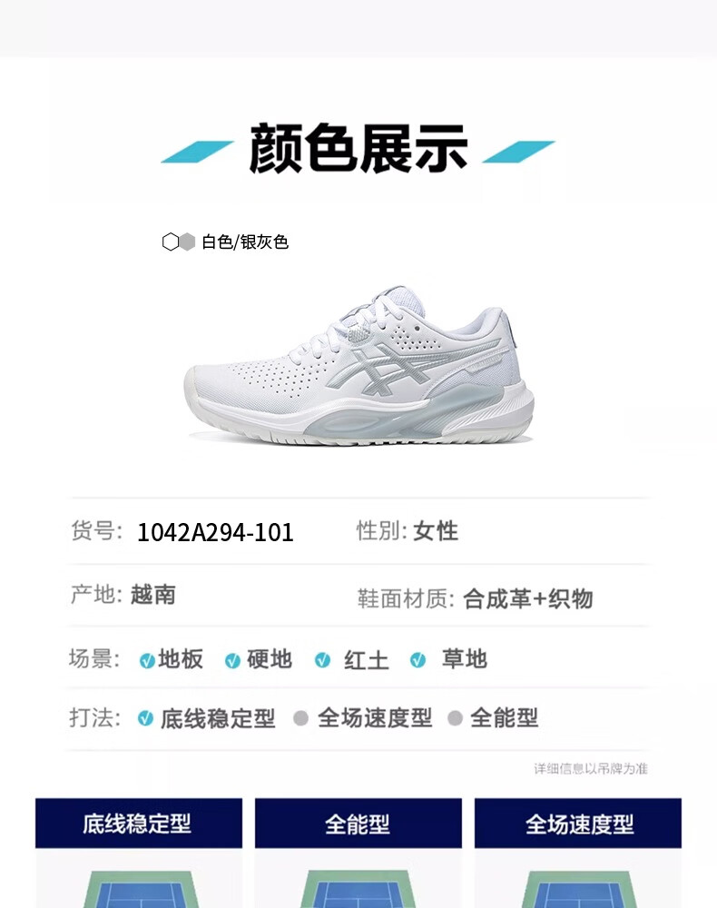 Asics tennis shoes women's spring new professional wear-resistant training sports shoes GEL-CHALLENGER 15 1042A294-101 36