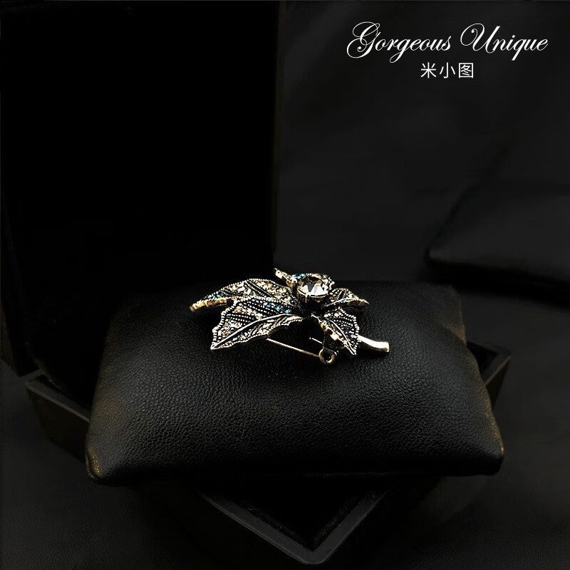 QUAMER high-end retro leaf brooch, men's and women's coats, suits, simple temperament, corsage, scarf, hat pin