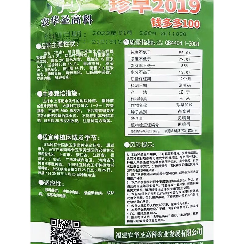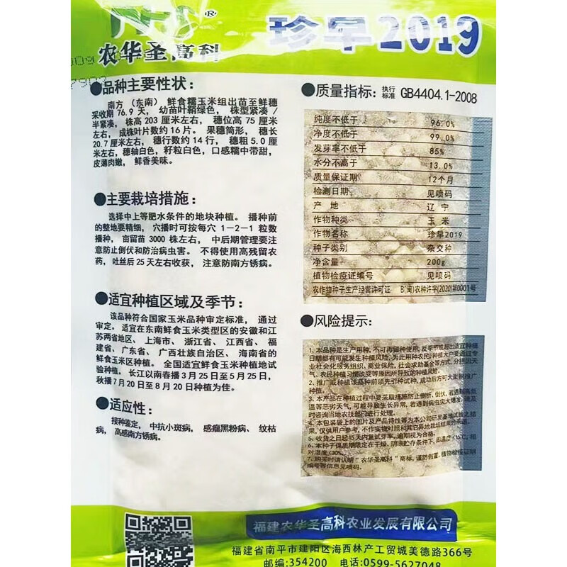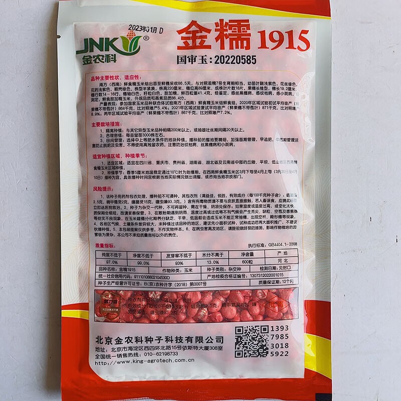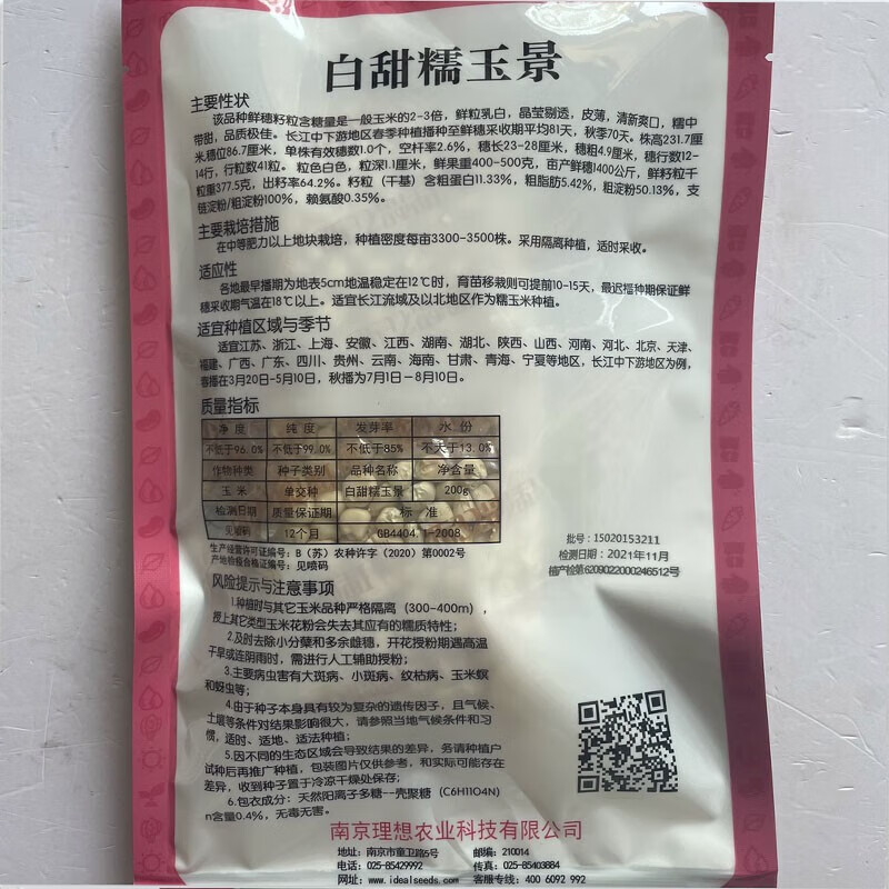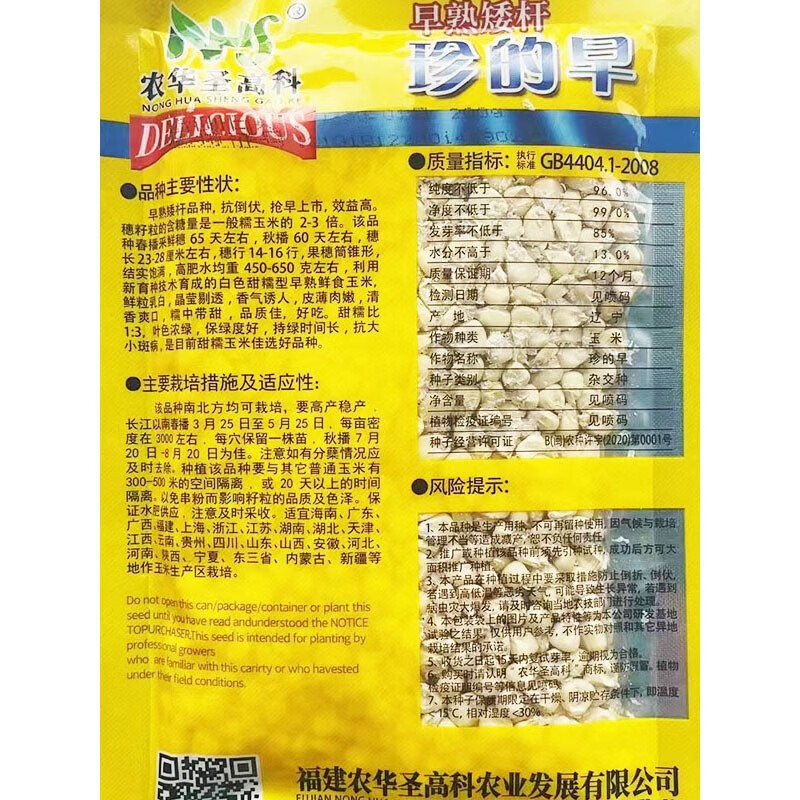 Early maturing short-stemmed white sweet and waxy white corn seeds in the field for sowing in all seasons with big sticks for fresh corn in spring and autumn Jinnuo 1915 600 grains
