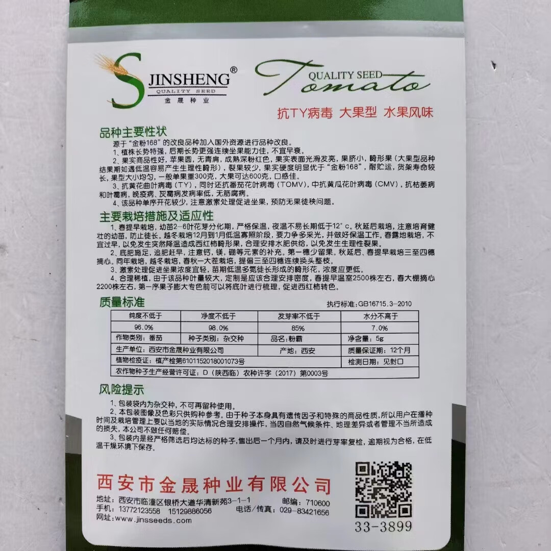 Jinshi pink jade tomato seeds Boyu tomato seeds anti-virus pink cold-resistant large fruit high-yielding taste Fenba original 5g