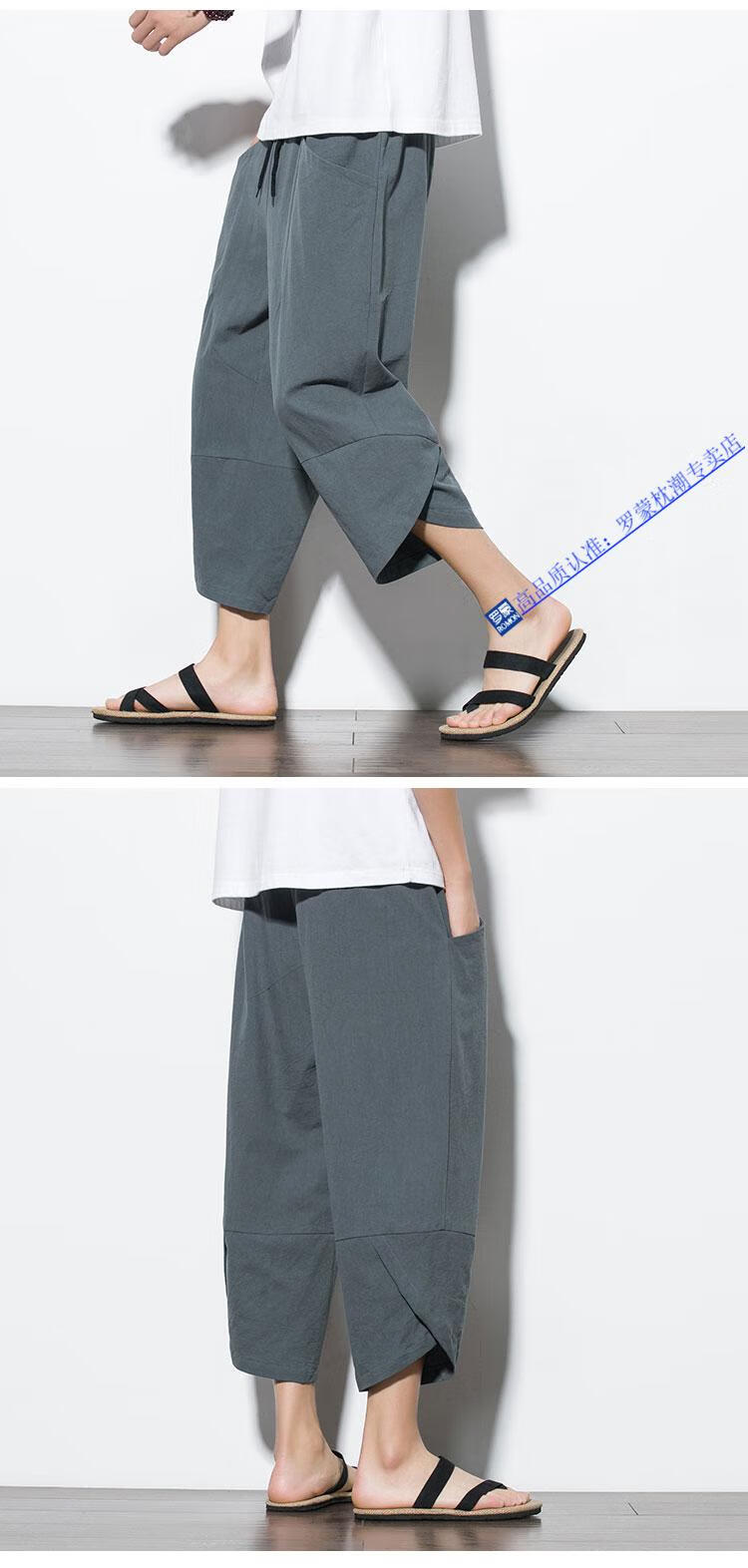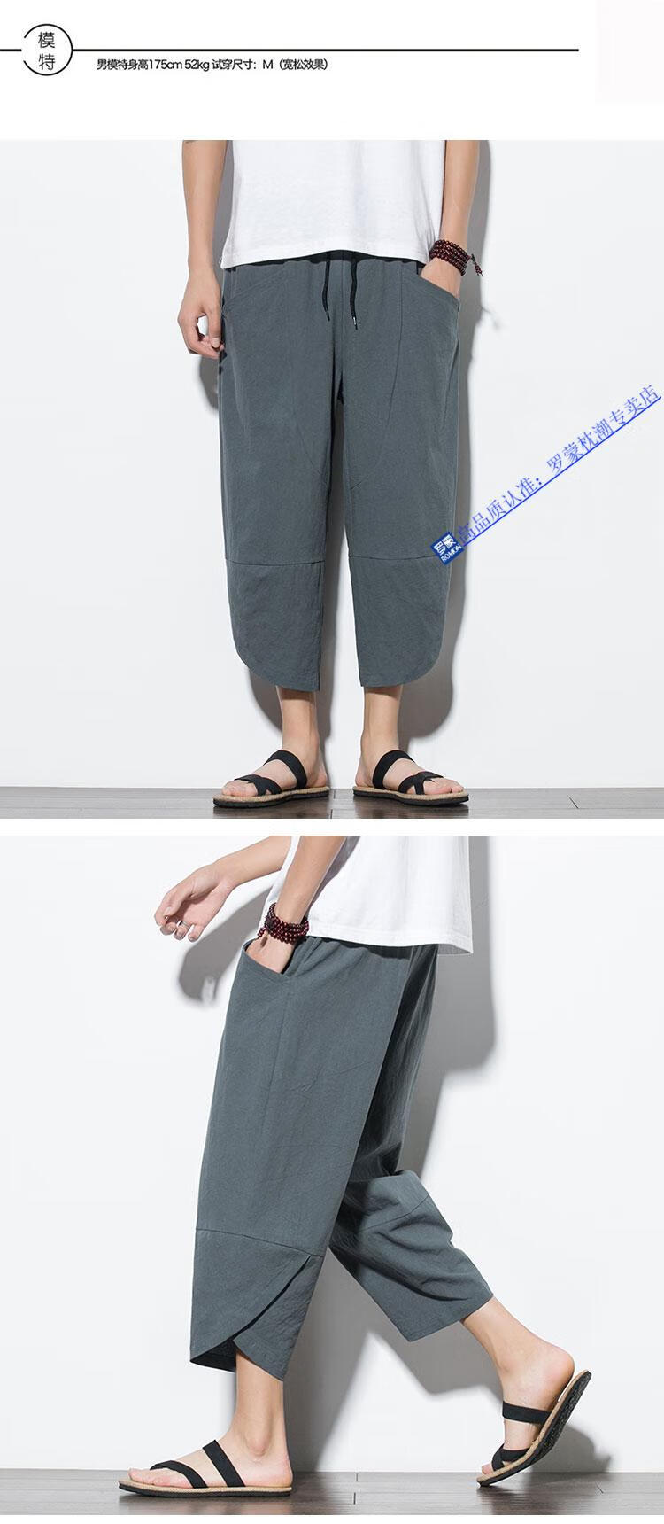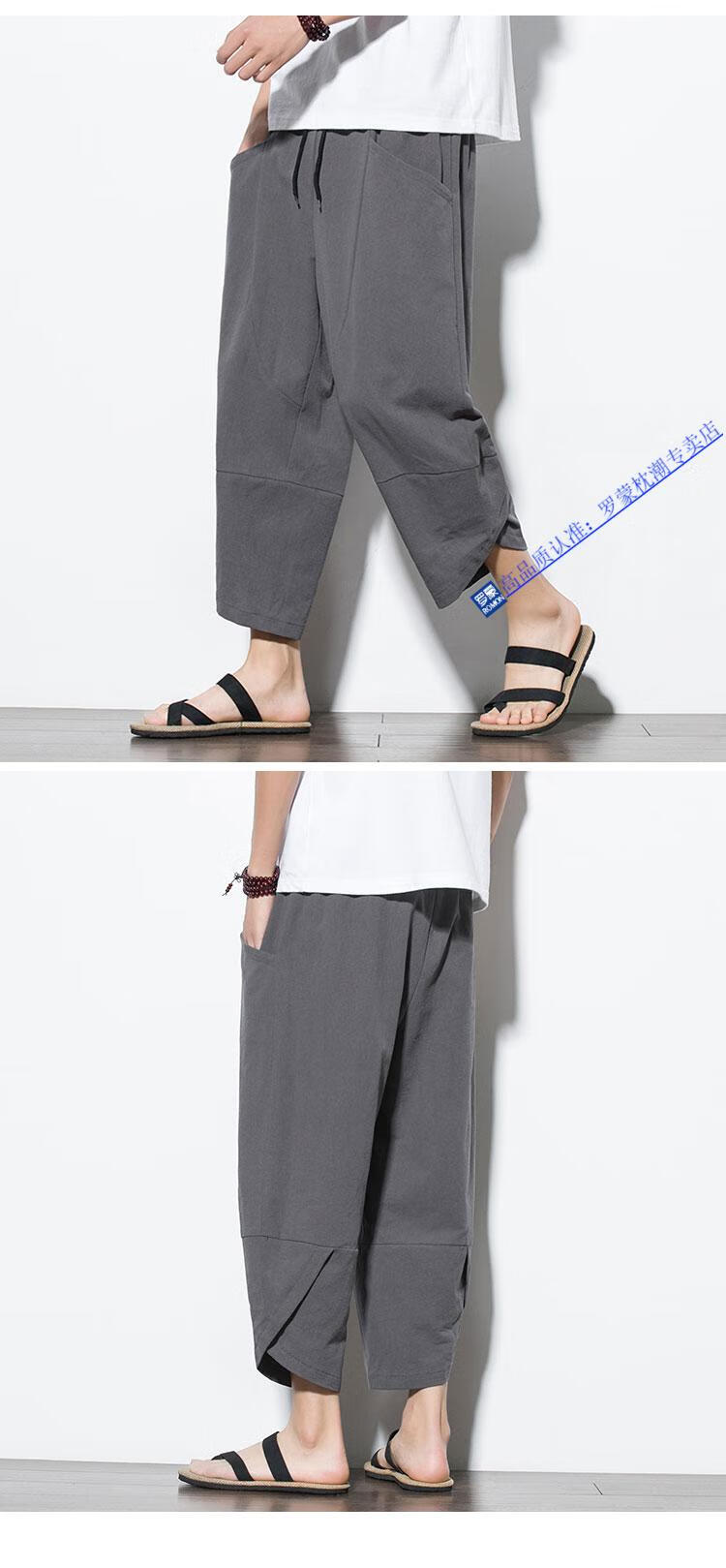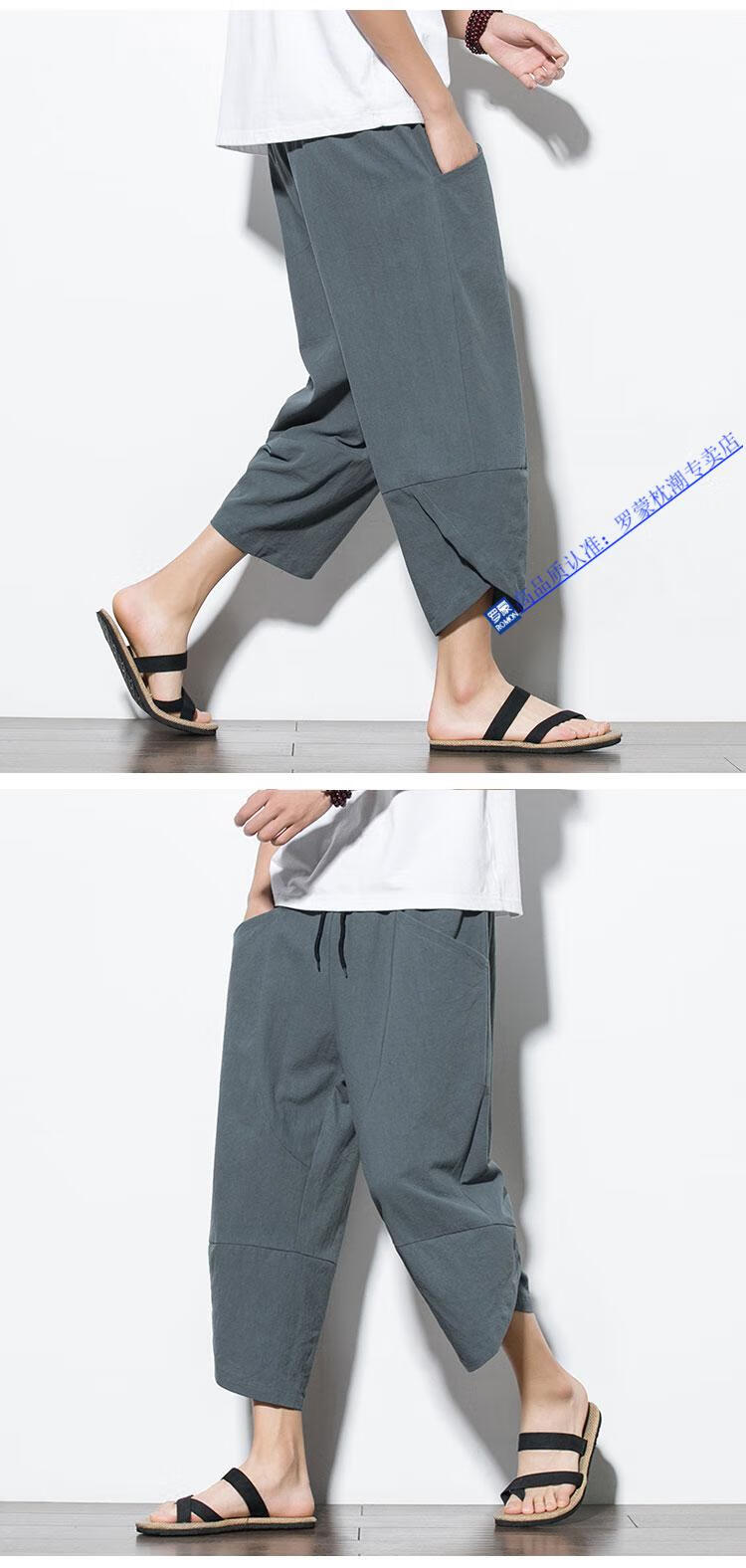 ROMON linen Chinese style eight-quarter pants men's summer solid color loose harem pants retro versatile jodhpurs casual pants dark gray XL