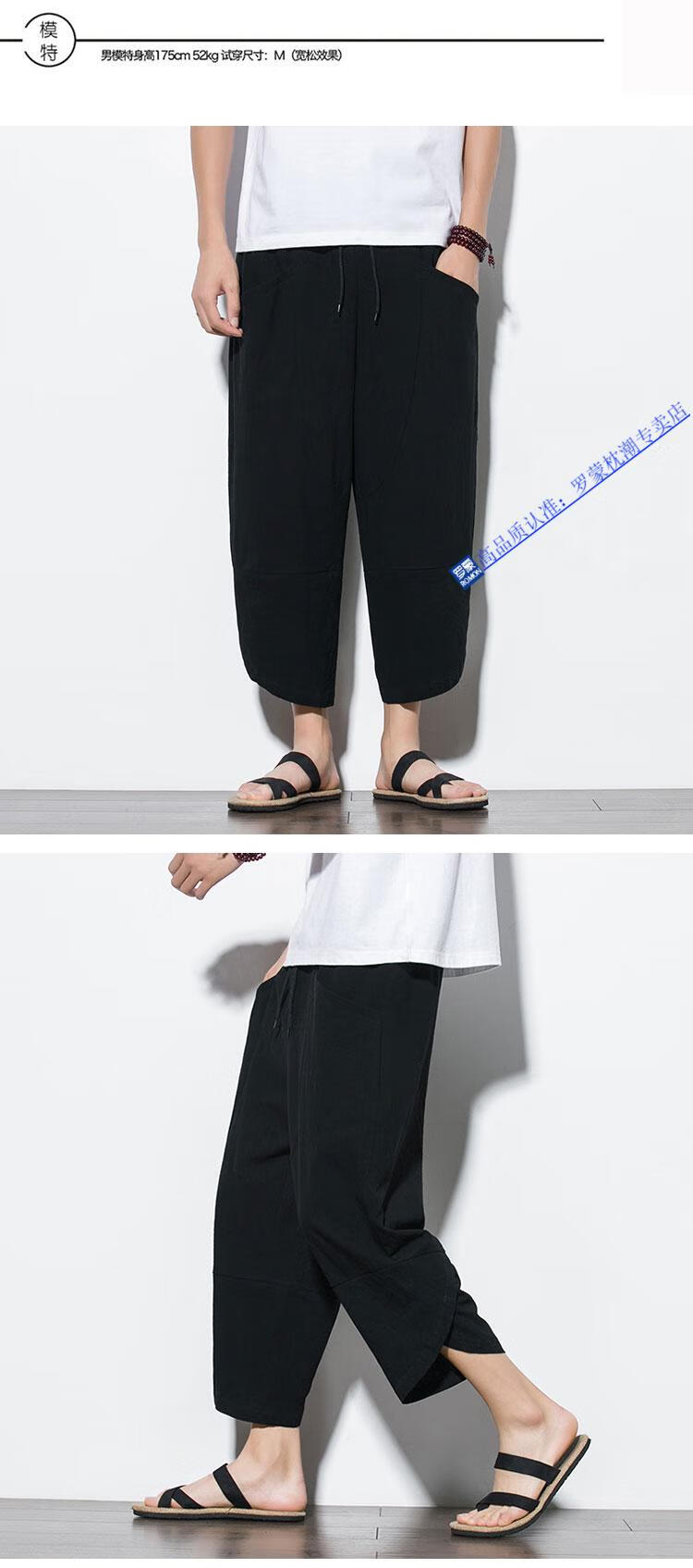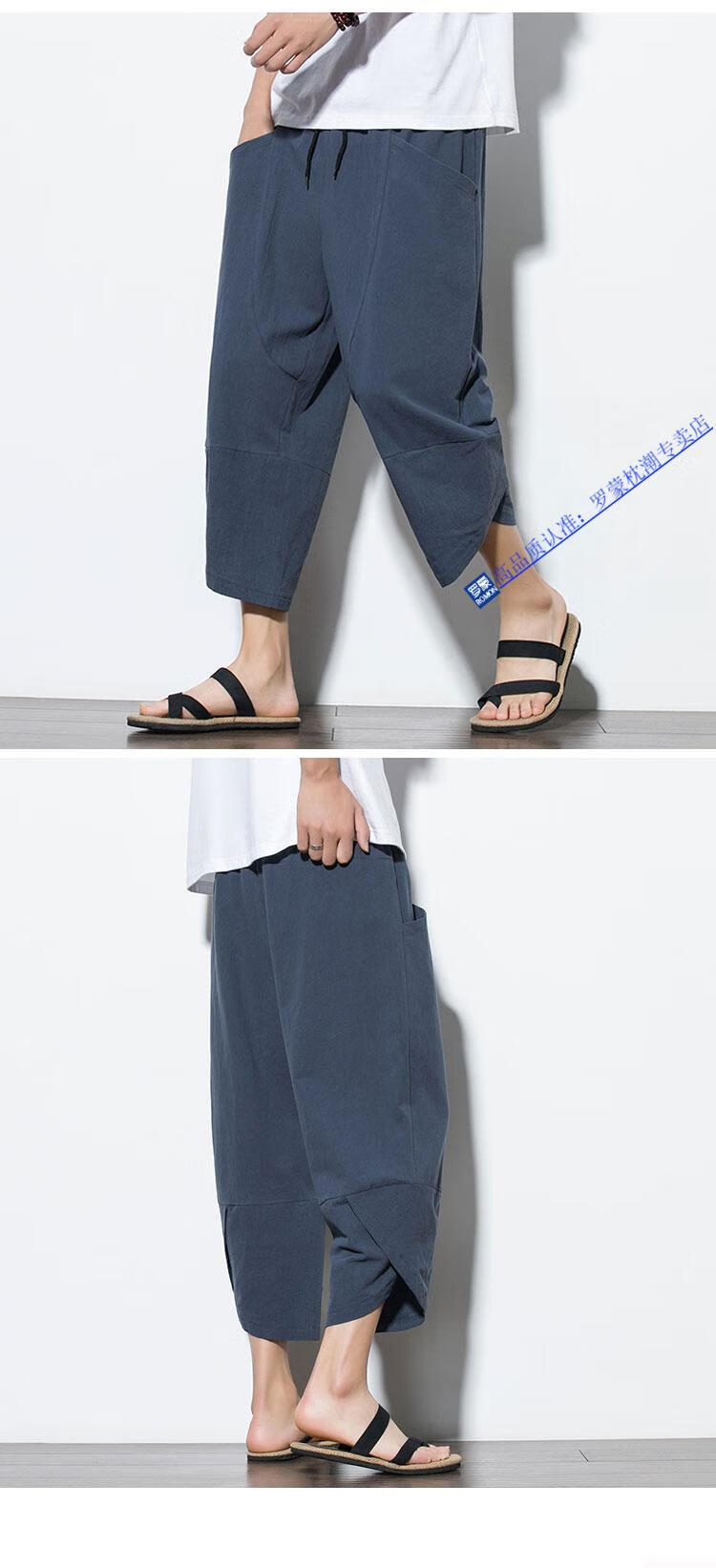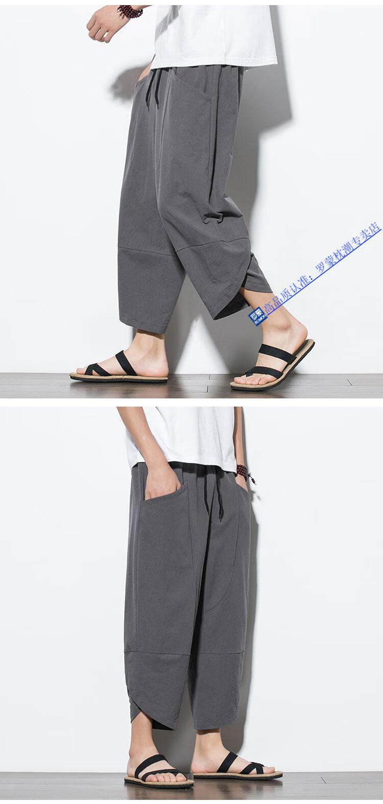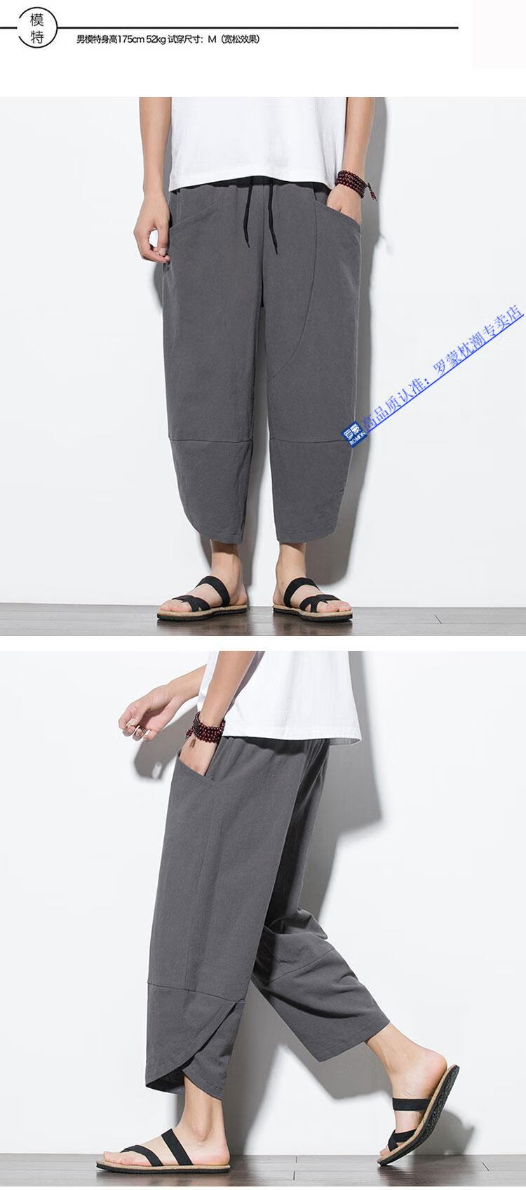 ROMON linen Chinese style eight-quarter pants men's summer solid color loose harem pants retro versatile jodhpurs casual pants dark gray XL