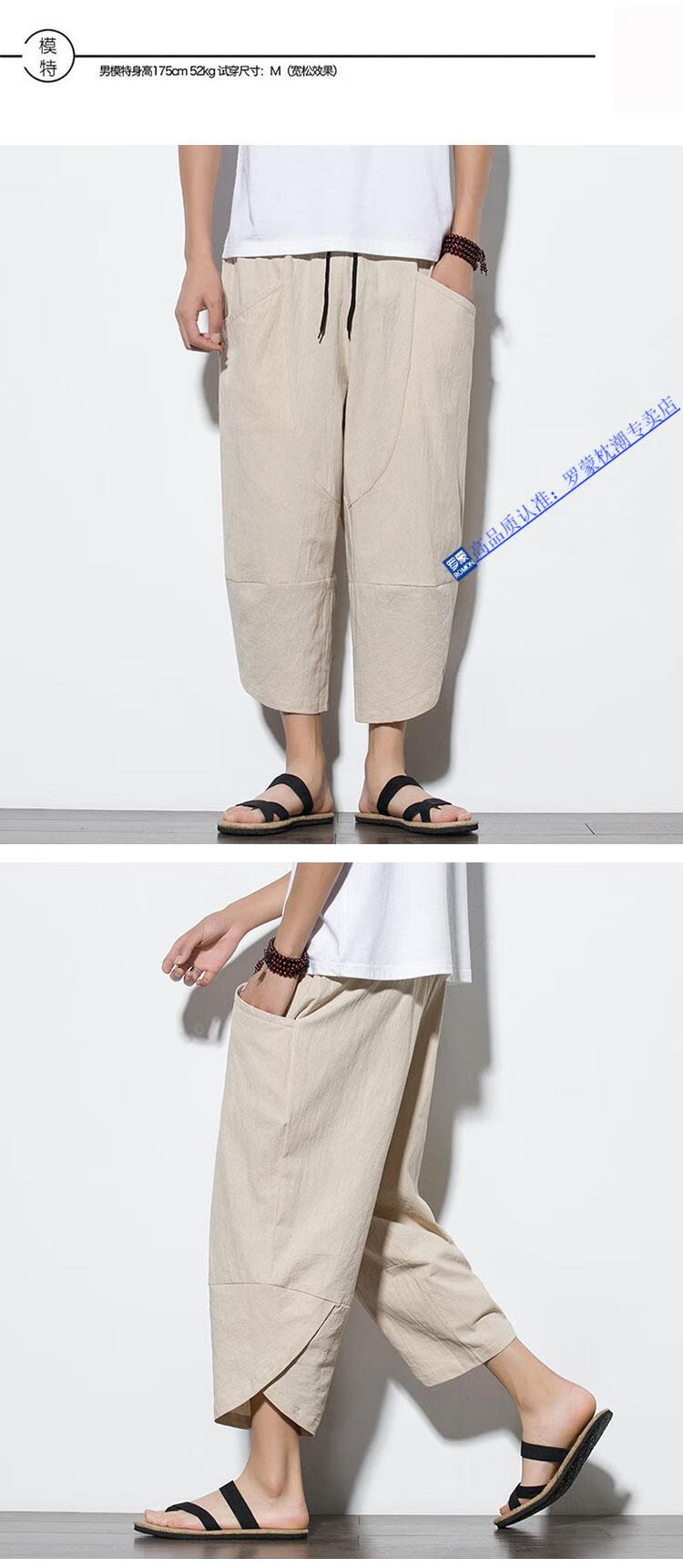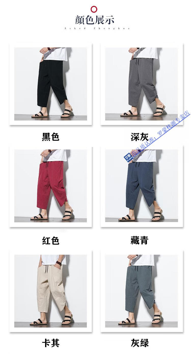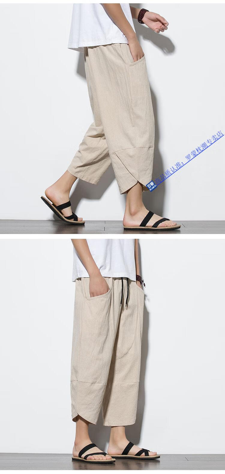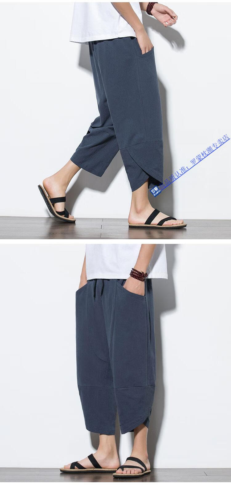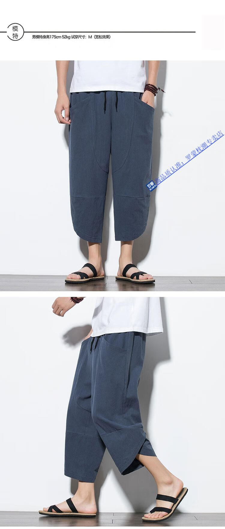 ROMON linen Chinese style eight-quarter pants men's summer solid color loose harem pants retro versatile jodhpurs casual pants dark gray XL