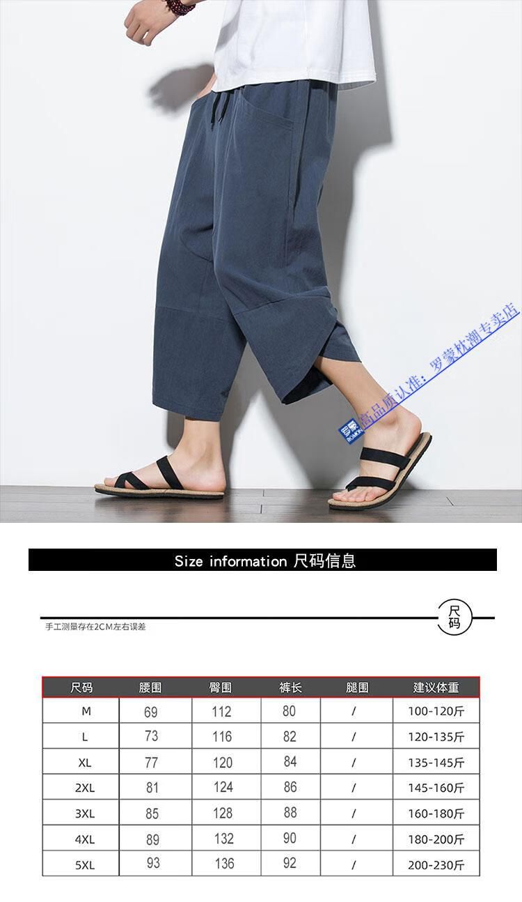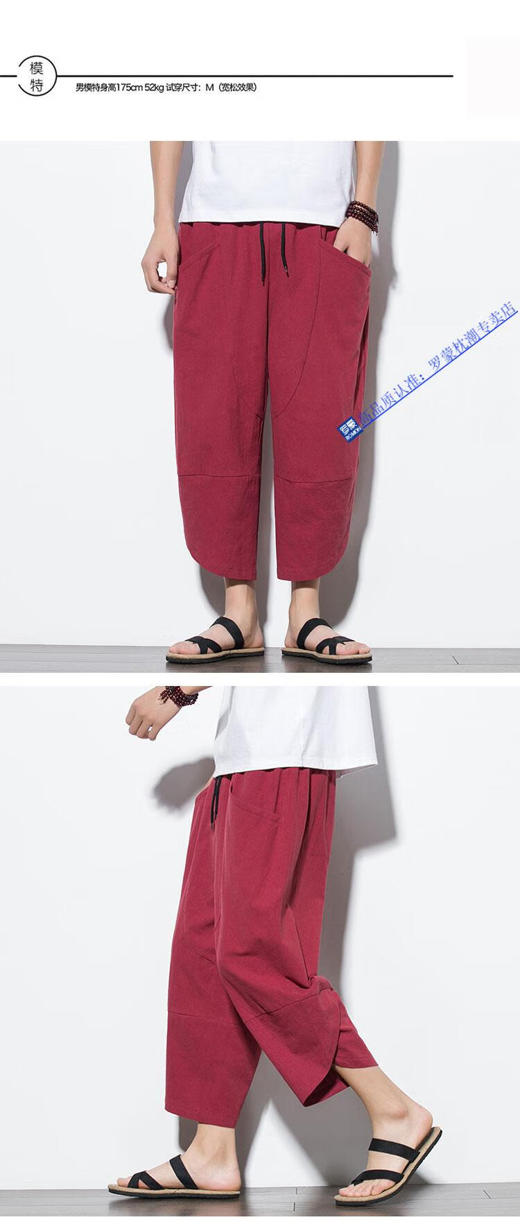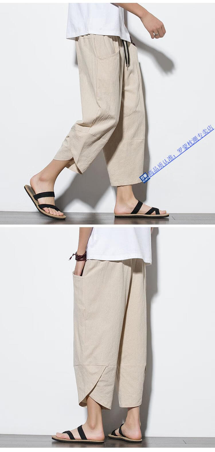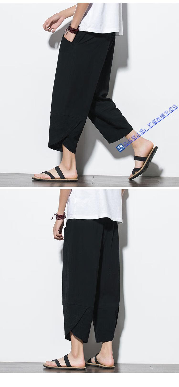 ROMON linen Chinese style eight-quarter pants men's summer solid color loose harem pants retro versatile jodhpurs casual pants dark gray XL