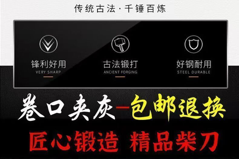QWNQY large knife, heavy wood chopping knife, heavy-duty agricultural old-fashioned wood chopping knife, hand-forged and thickened, outdoor tree-cutting bamboo, ordinary model 0.9Jin Jin equals 0.5kg, the wood knife is super easy to use