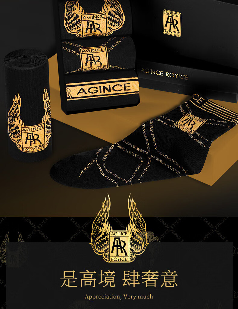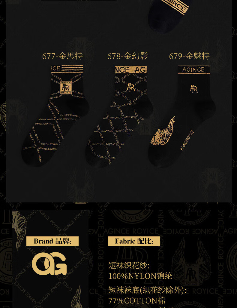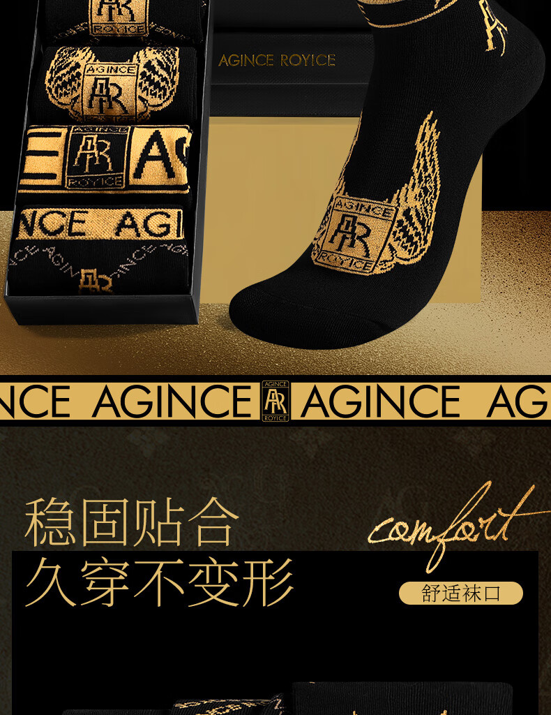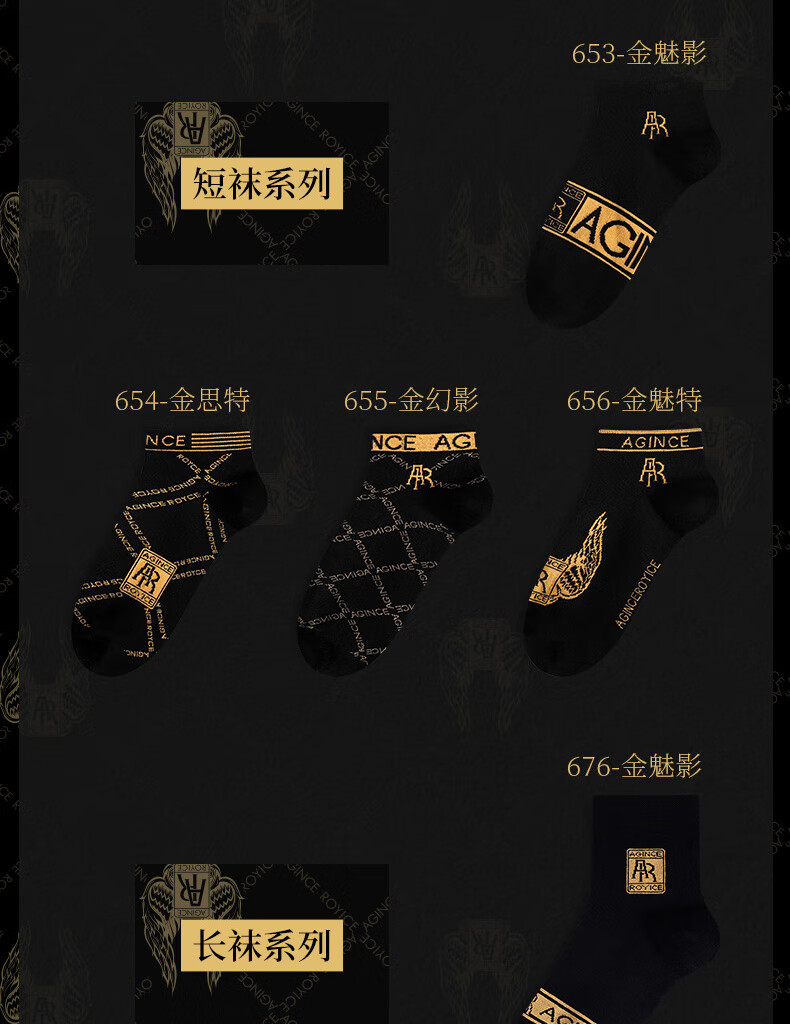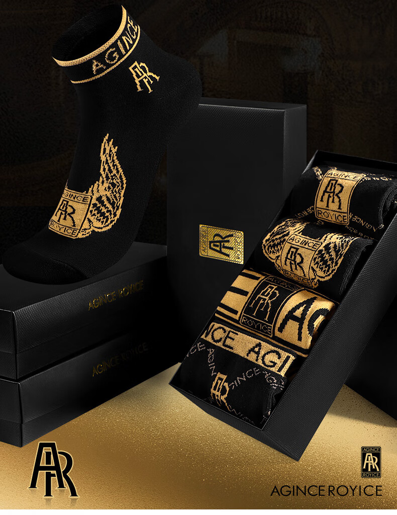 AGINCEAG men's socks sweat-absorbent and deodorant cotton socks summer non-pilling socks short boat socks breathable long socks gift box new style 653 Gold Phantom + 654 Gold Site + 655 Gold Phantom + One size fits all (39-44)