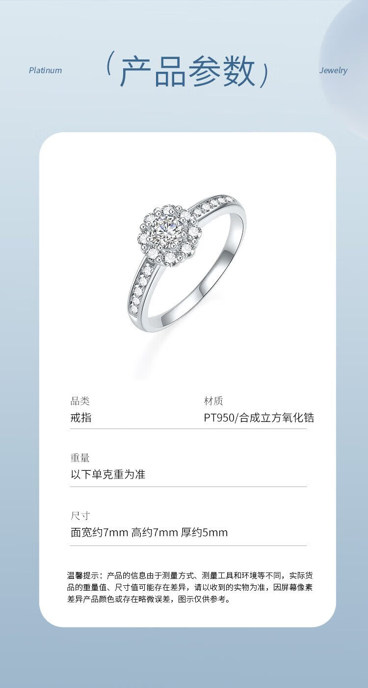 Liuguifu Jewelry Platinum Ring for Women Pt950 Platinum Inlaid with Zirconia Proposal Engagement Birthday Gift 11 Rings + Certificate + Rose Gift Box