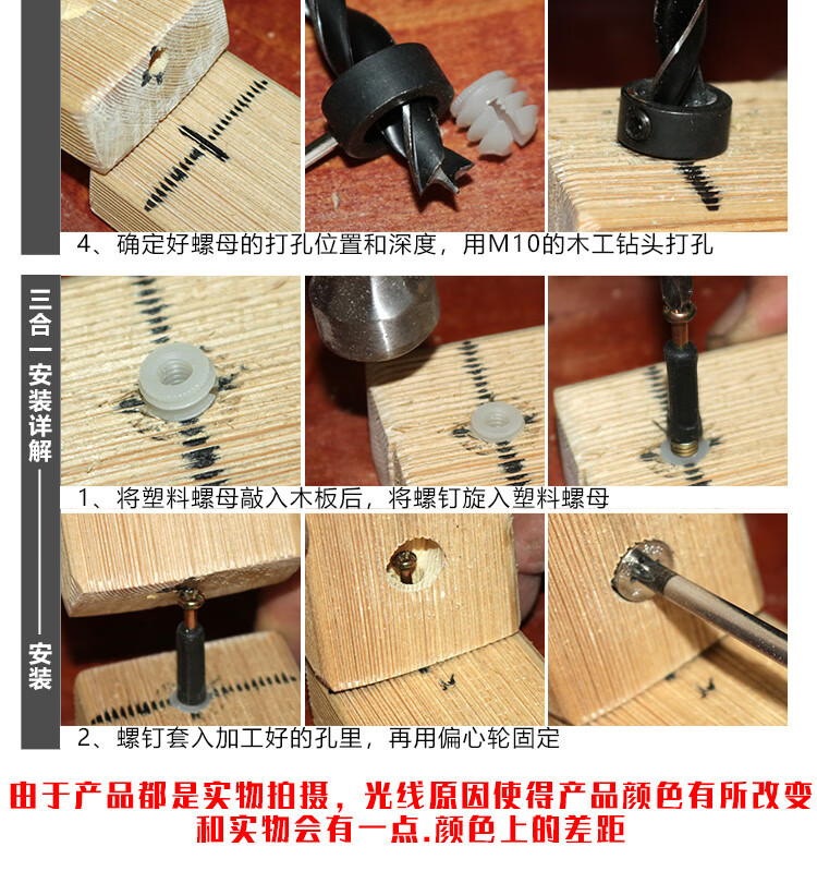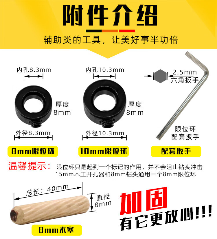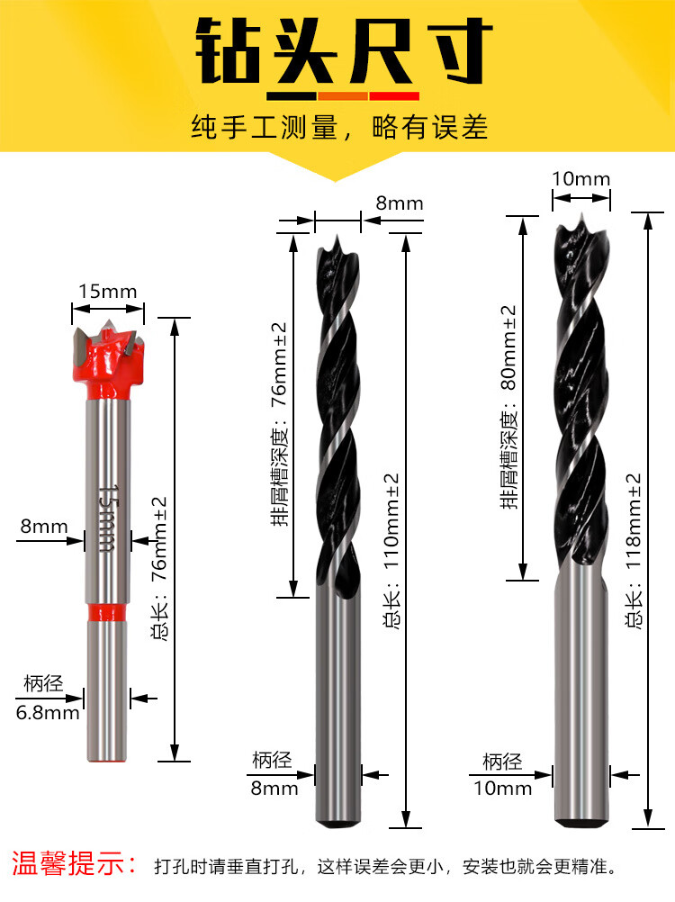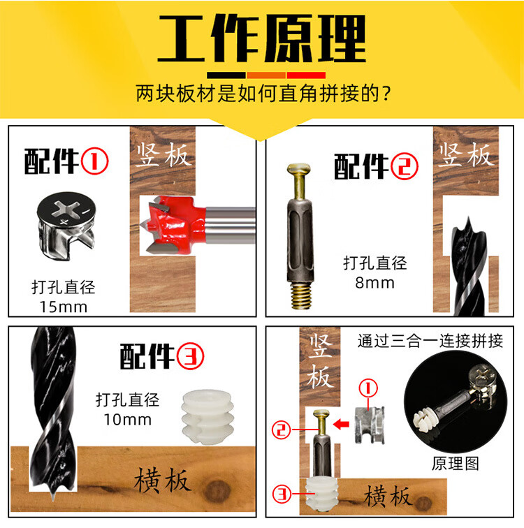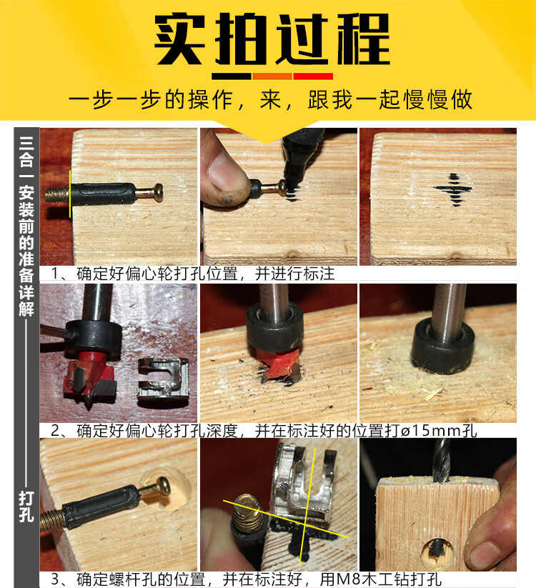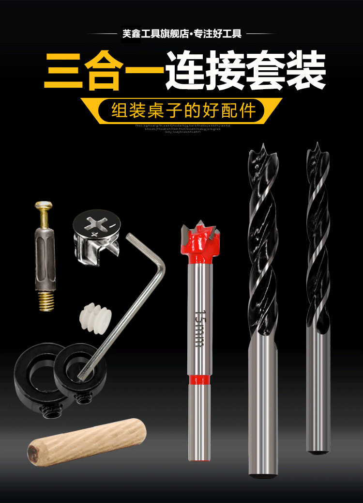 Three-in-one hole punch door cabinet three-in-one connection piece woodworking hole opener drill bit set eccentric wheel 15mm 8mm drill bit three-piece set