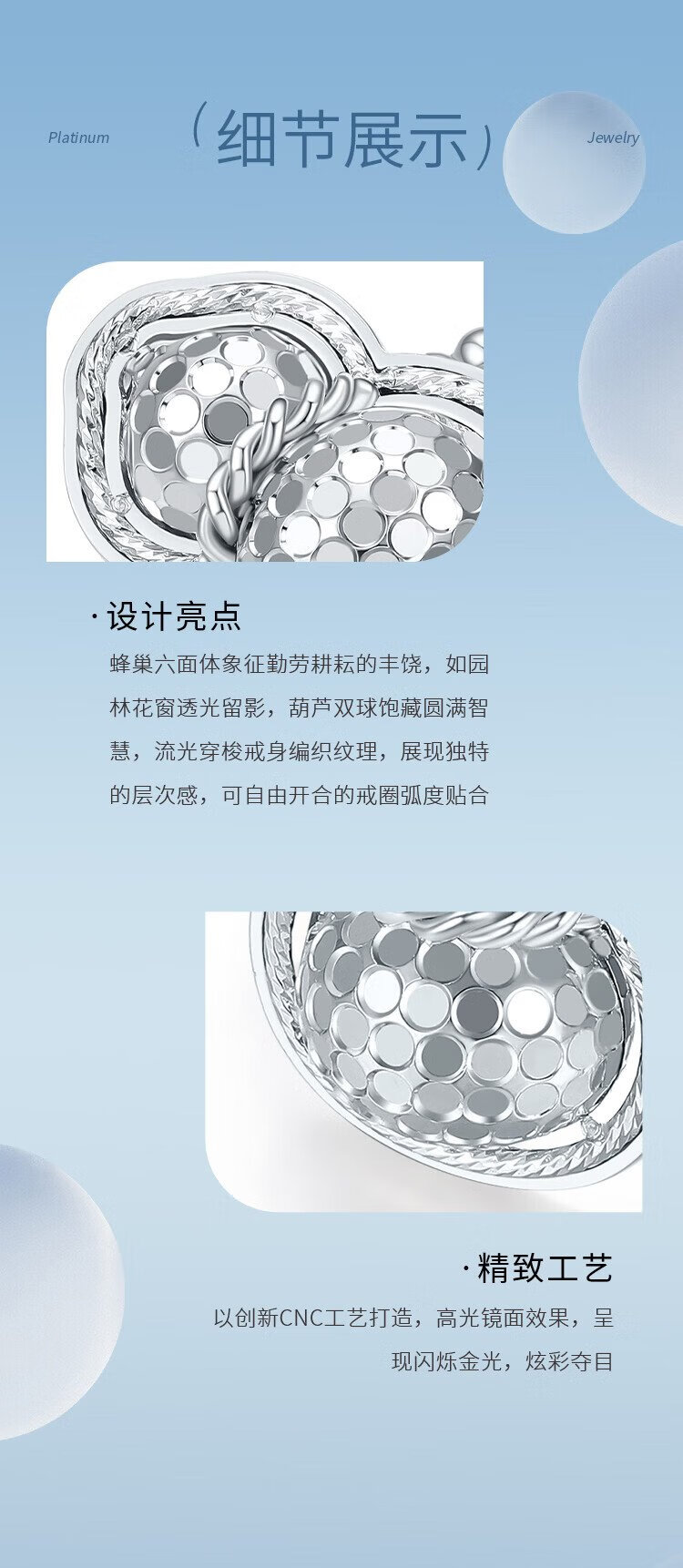 Liuguifu jewelry platinum ring for women Pt950 platinum car flower gourd sparkling live ring birthday gift about 4.45g