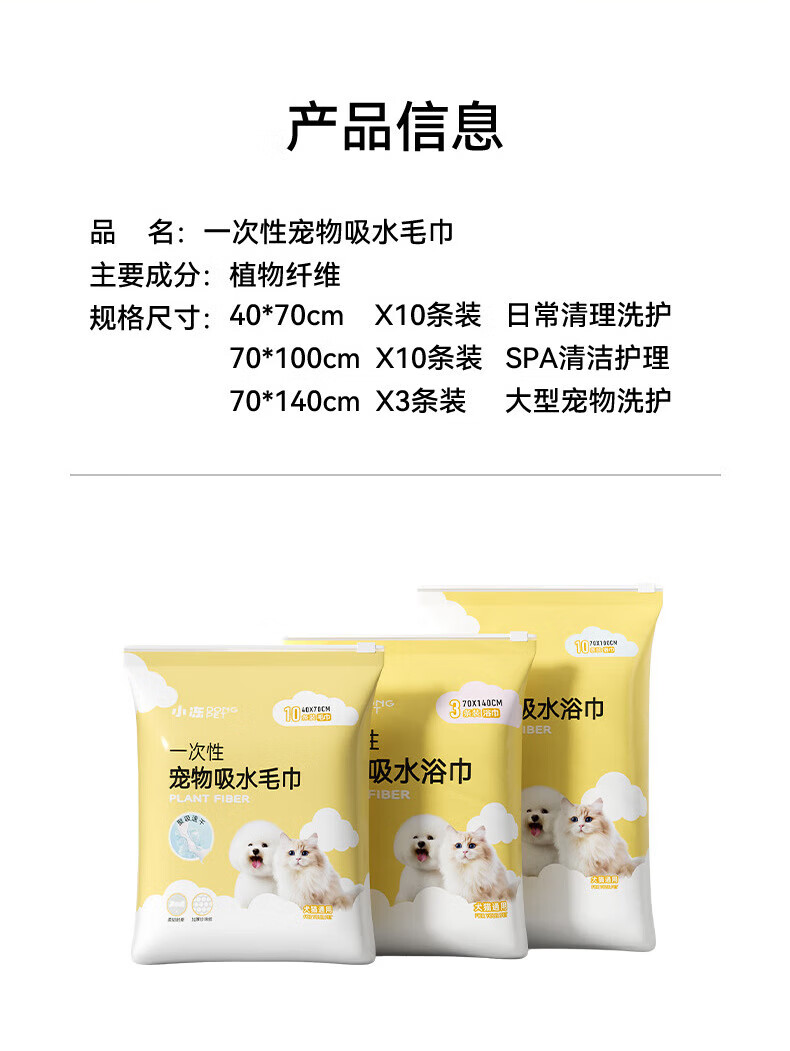 Pet disposable absorbent towel thickened cat and dog Bichon Golden Retriever pet special bathing quick-drying bath towel 10 pieces 70*100cm shopkeeper