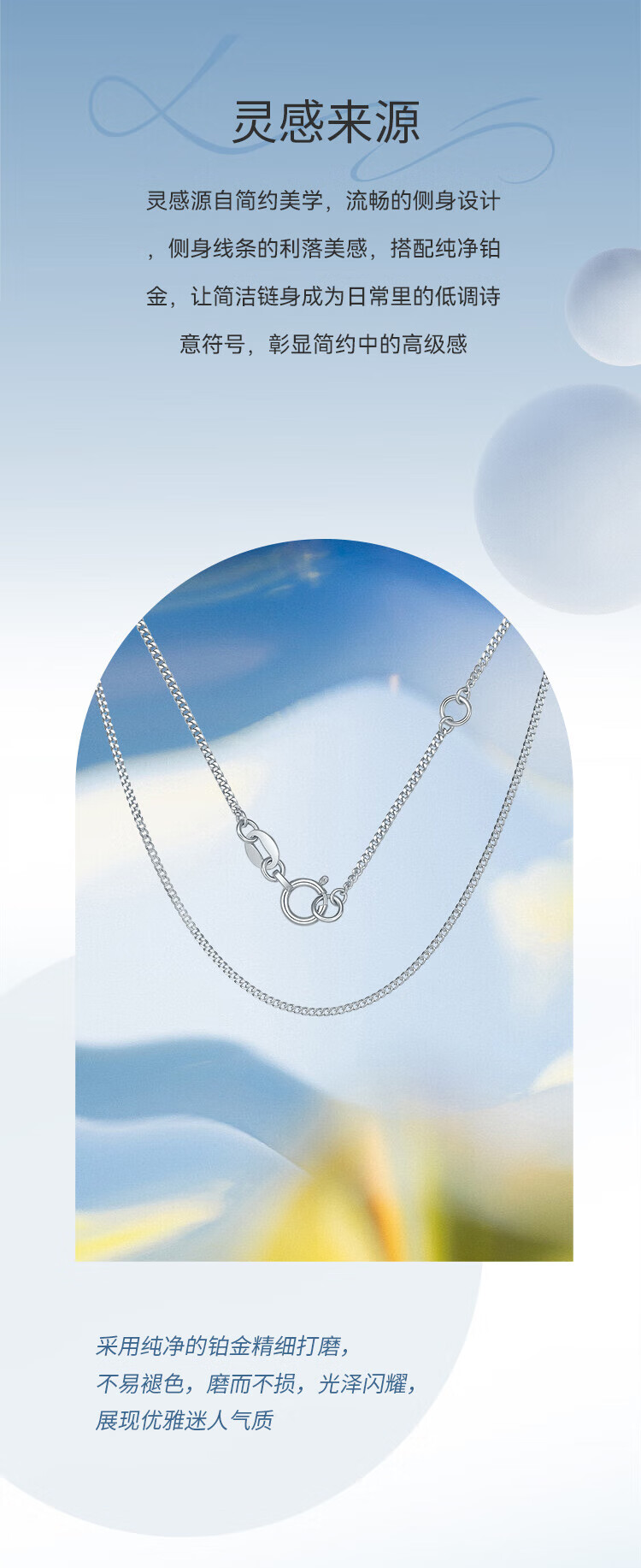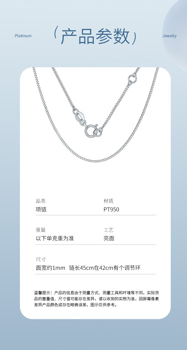 Liuguifu Jewelry Platinum Necklace for Women PT950 Platinum Chain Side Chain Fashionable and Versatile Adjustable Christmas Gift About 2.55g
