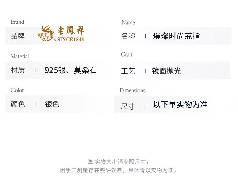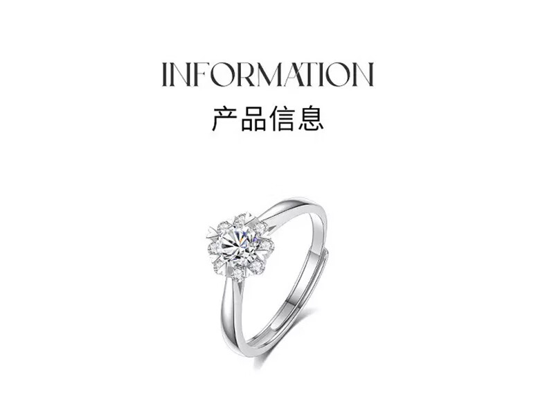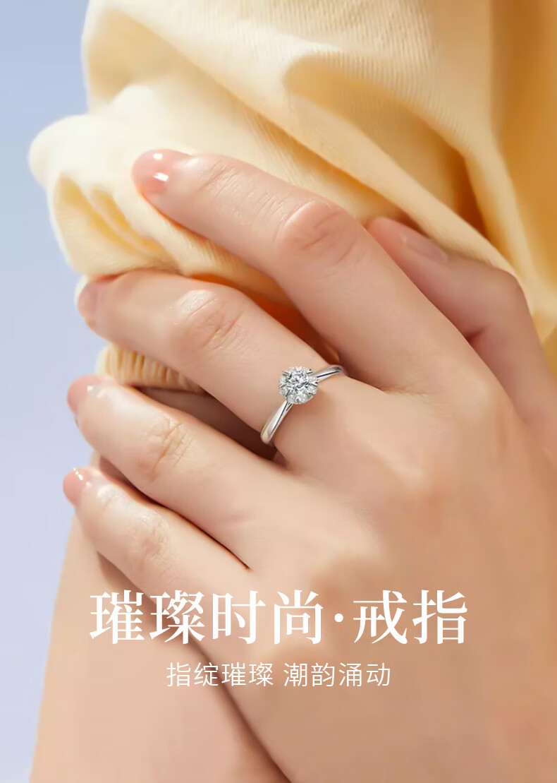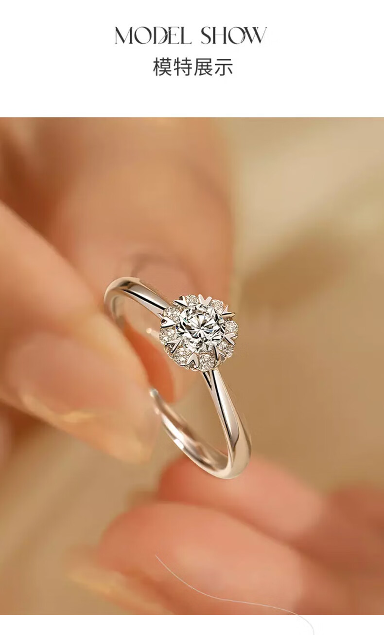 Lao Fengxiang light luxury sterling silver moissanite diamond ring, girl’s temperament single ring, proposal and confession, wedding anniversary gift for girlfriend, shipped by JD.com * Same day/next day delivery - high-end one carat moissanite diamond ring