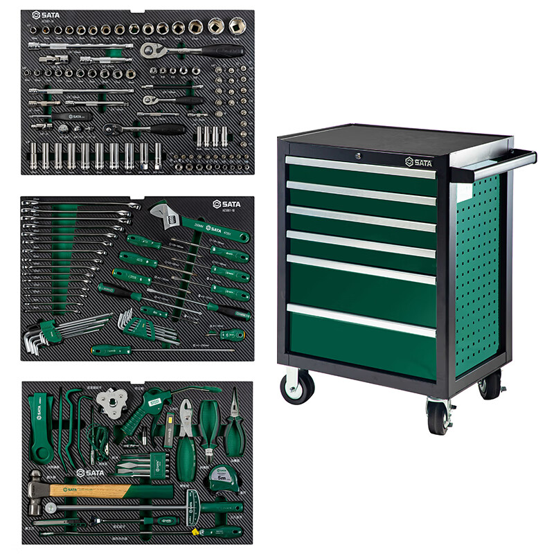 GREENER Shida SATA Auto Repair Tool Cart Set with Tools Full Set of Auto Repair Special Tool Box Car Car Quick Repair AE59 AE5961A/168 Pieces Quick Repair Quick Warranty Tool Set