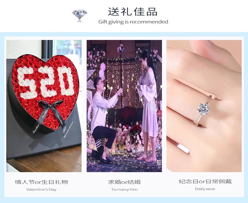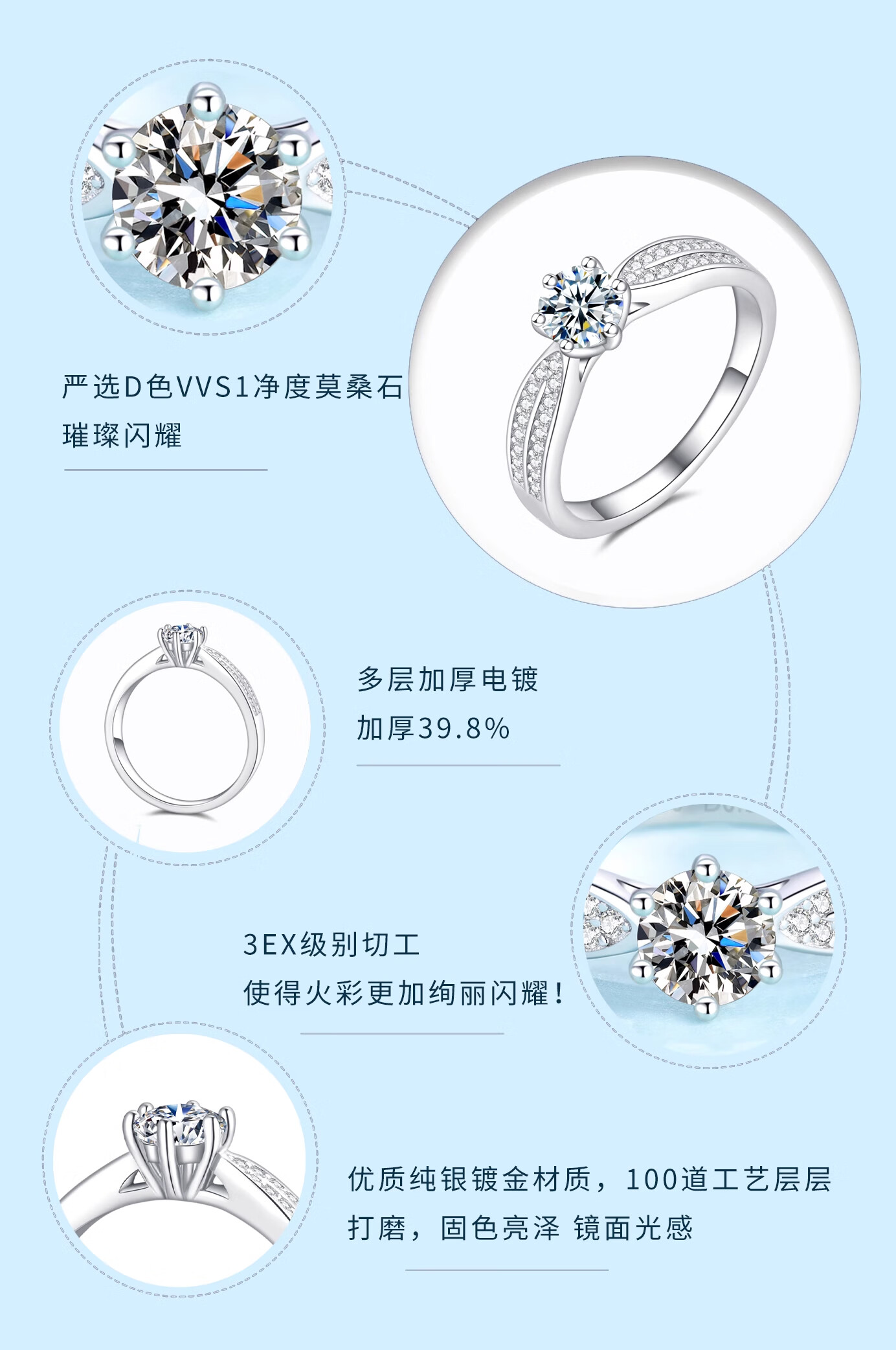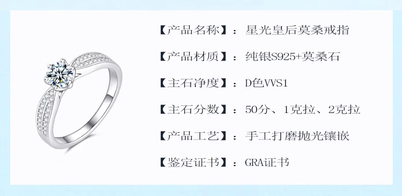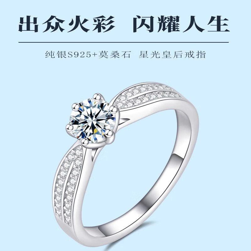 Pt950 Platinum Moissanite Diamond Ring Starlight Queen 18K Gold Ring Wedding Proposal Ring for Girlfriend Holiday Gift Light Luxury Starlight Queen 2 Carat Diamond Ring Live Mouth Adjustable Size