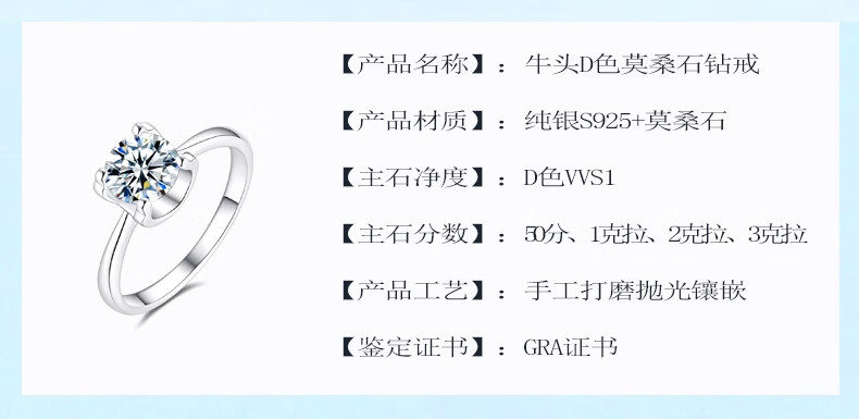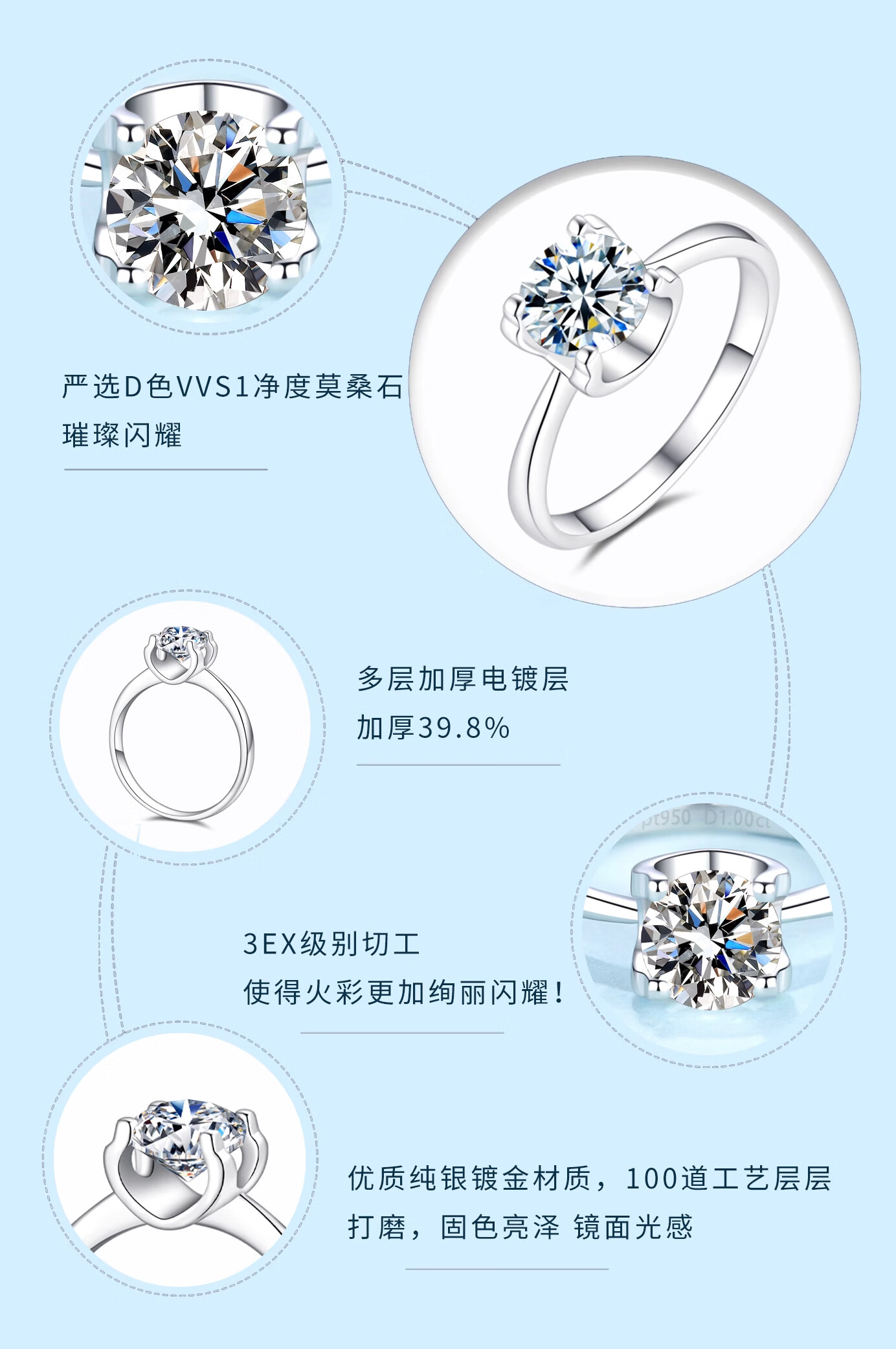 Pt950 platinum ring, D color moissanite diamond ring, four-pronged bull head 18K gold ring, holiday gift for girlfriend, light luxury model, four-pronged bull head diamond ring, 50 points, keep silent and contact customer service