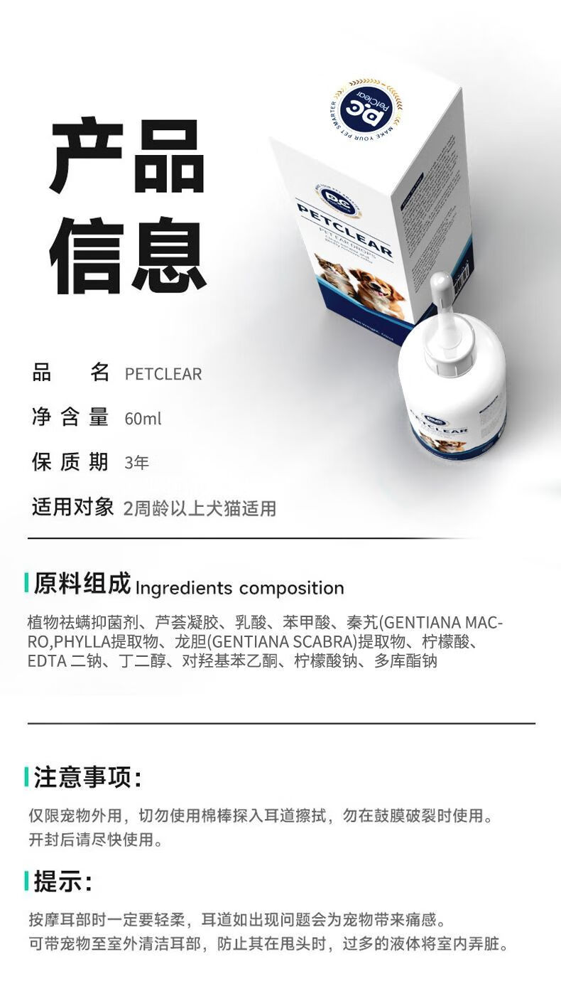 German ear bleaching 60ml pet ear drops for cats, earwax ear cleaning solution for cats, dog ear cleaning solution, clean combination, ear drops + eye wash