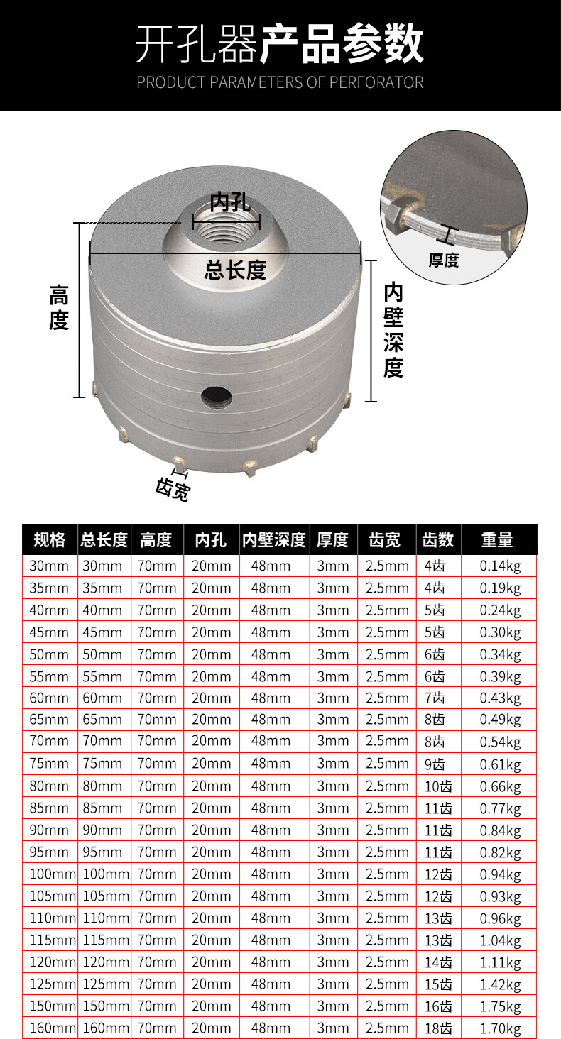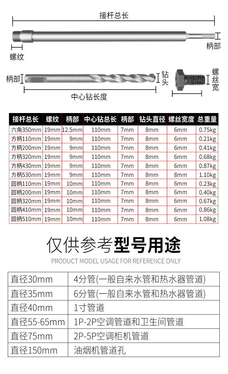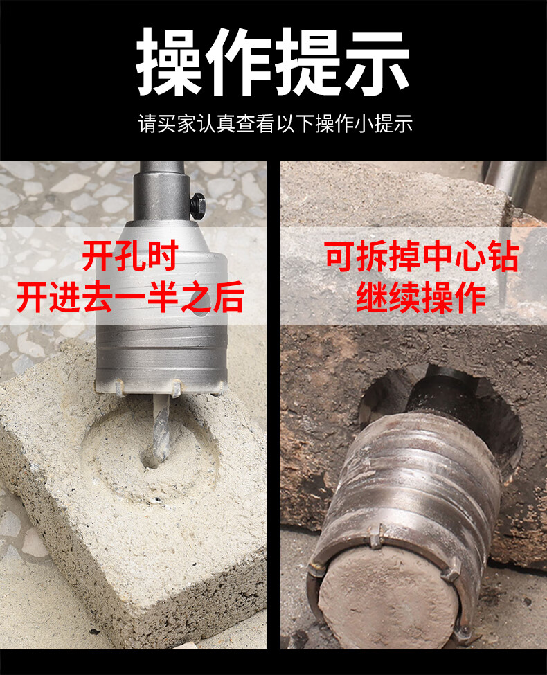 Baolian wall hole opener drill bit to punch holes through the wall air conditioner dry electric hammer concrete impact drill brick wall drilling tool square handle 30mm set