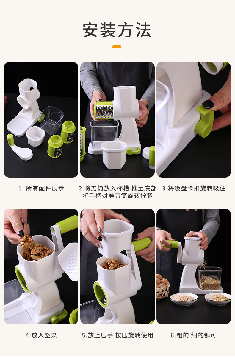 CLCEY peanut nut clip mashing artifact household nut crushing homemade tool nut clip manual planing walnut kernel crushing hand-cranked (coarse/fine two blades)