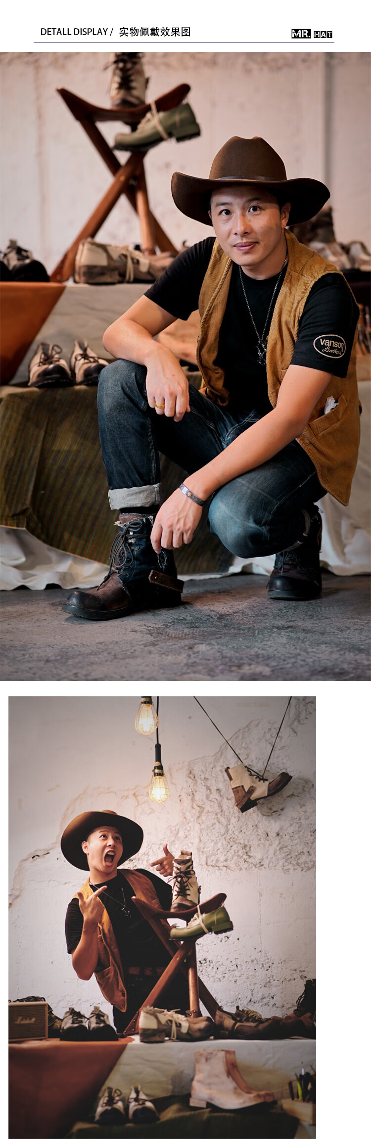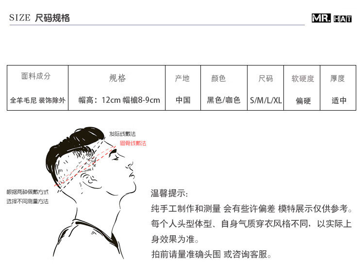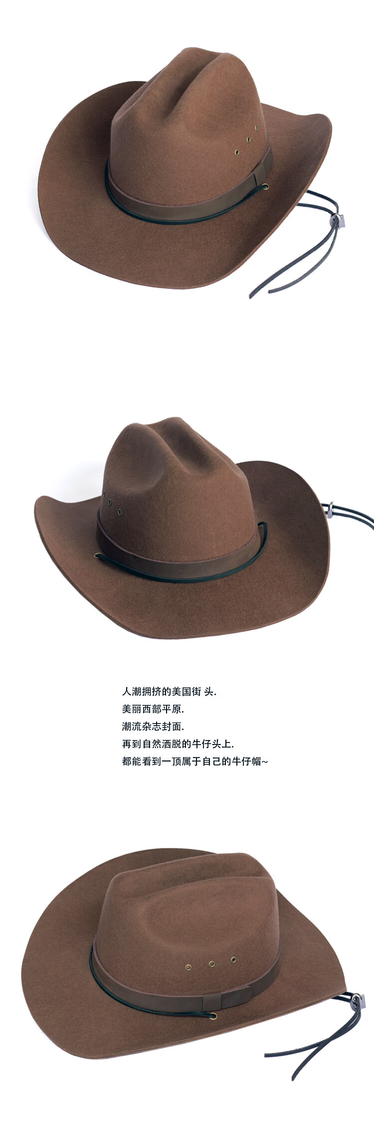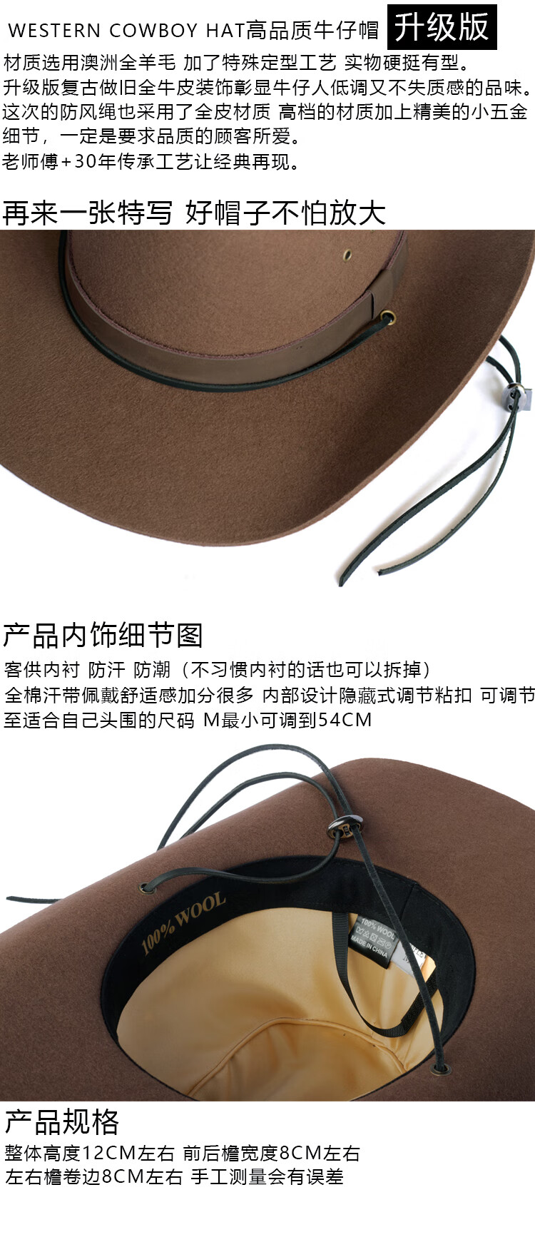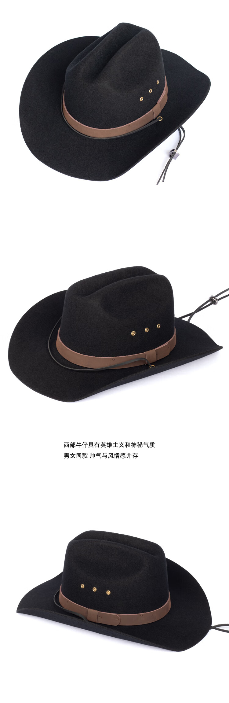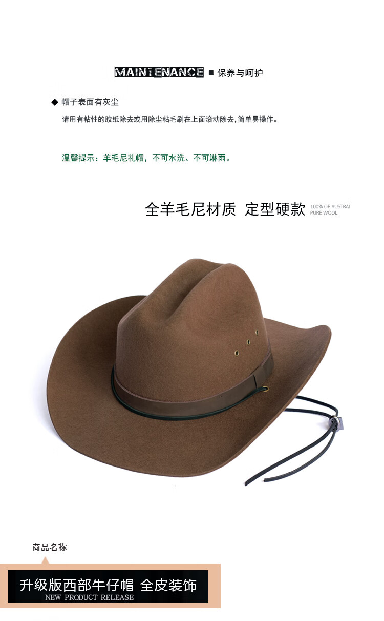 Lee dprre American Western Cowboy Hat Retro Fine Wool Men's Hat Hard Wide Brim Outdoor Camping Prairie Women's Hat Riding Hat Black M (56-57cm) Hard