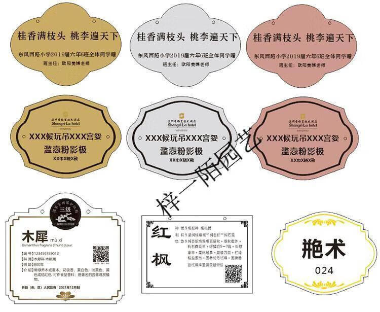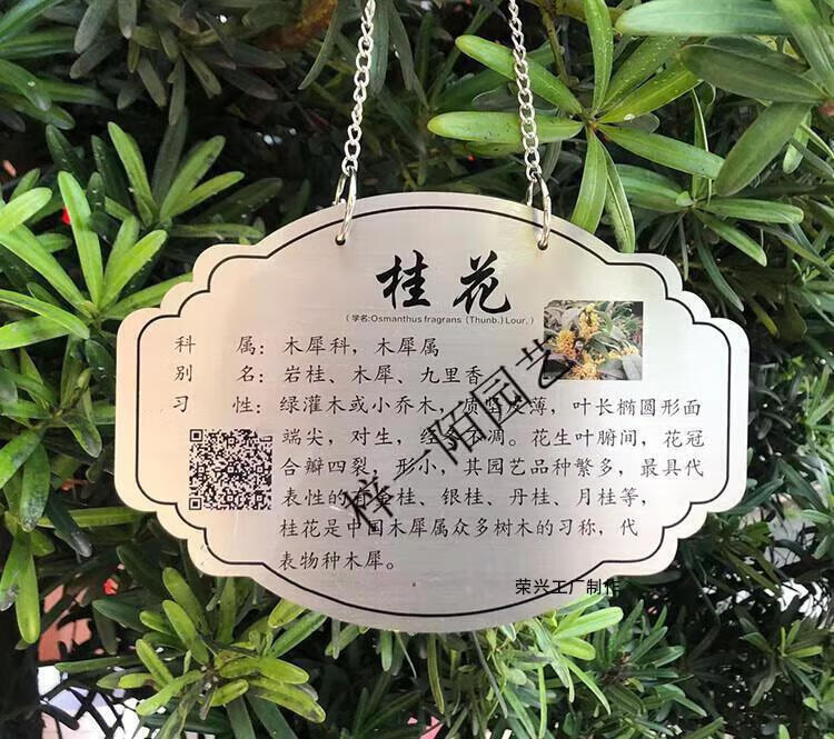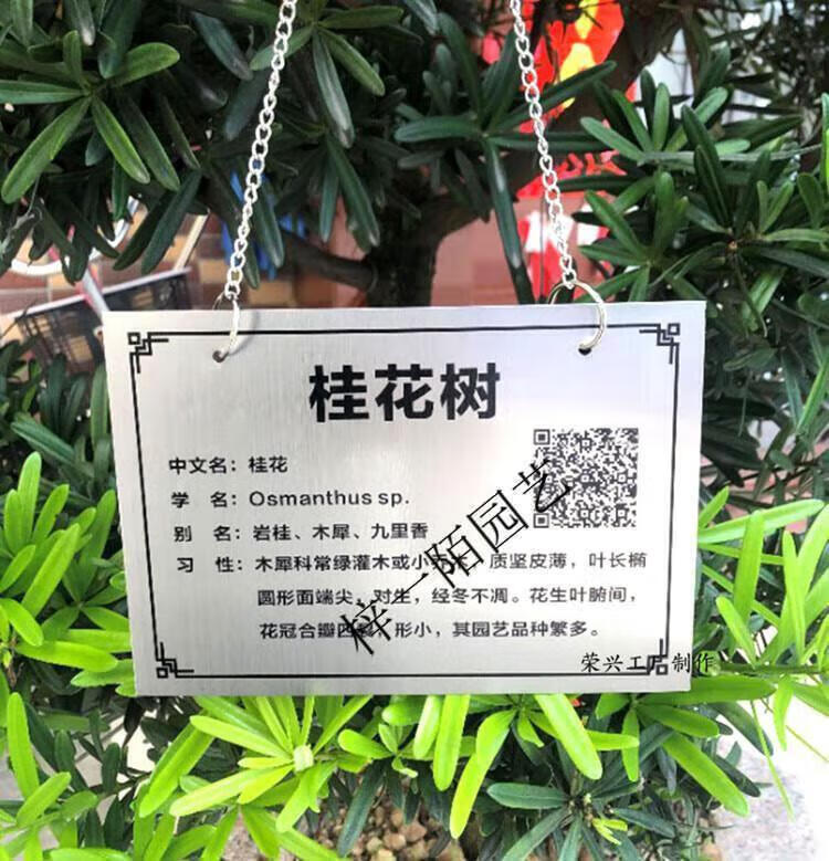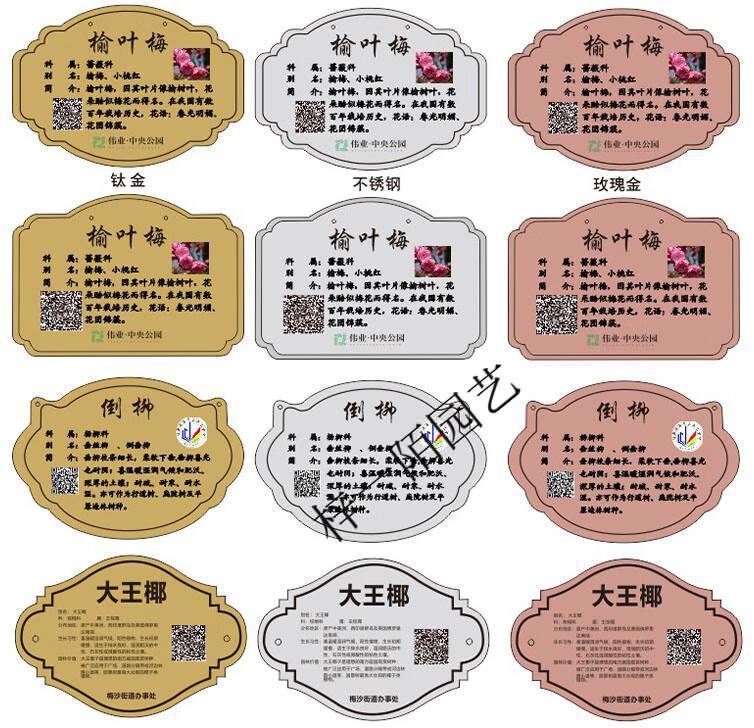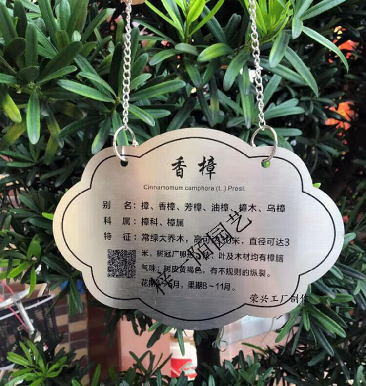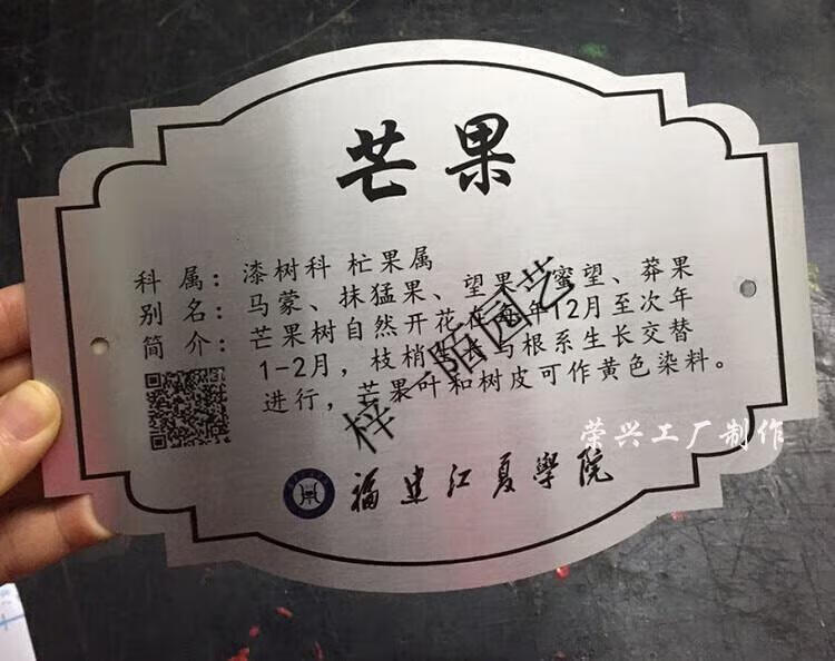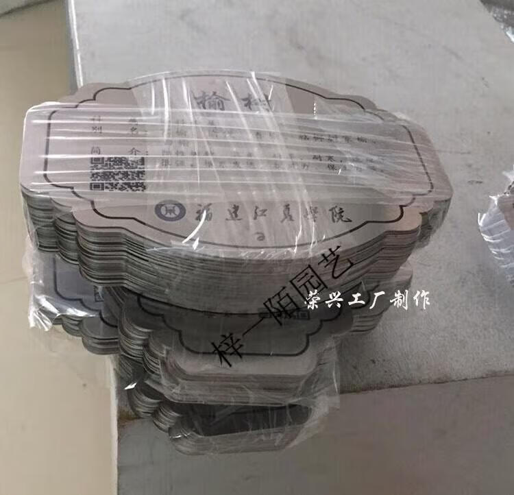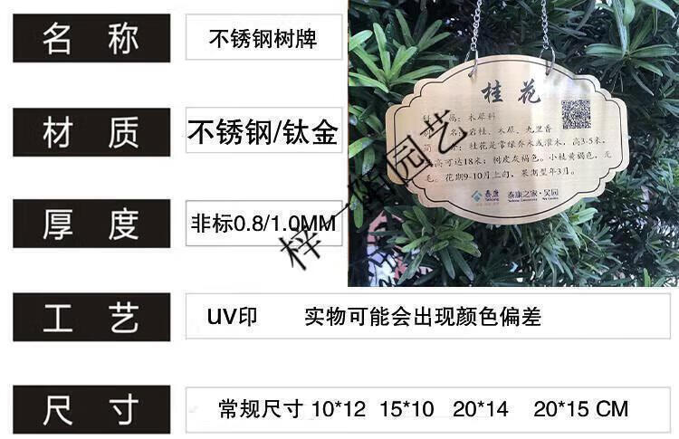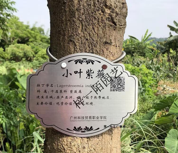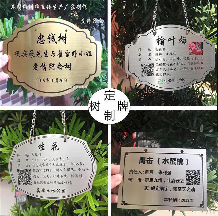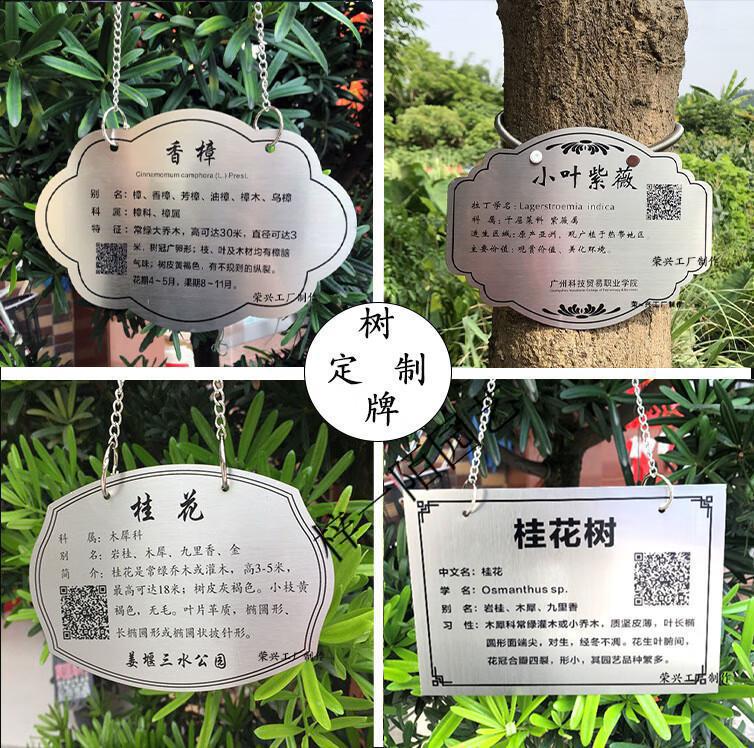 Letrero de árbol hecho a medida de acero inoxidable metal plantas verdes letrero ecológico patio flores y árboles introducción adopción plug-in acero inoxidable 20*15