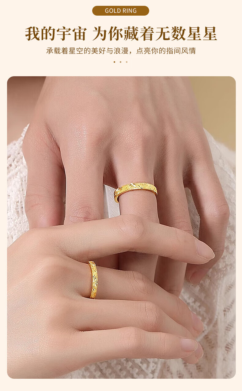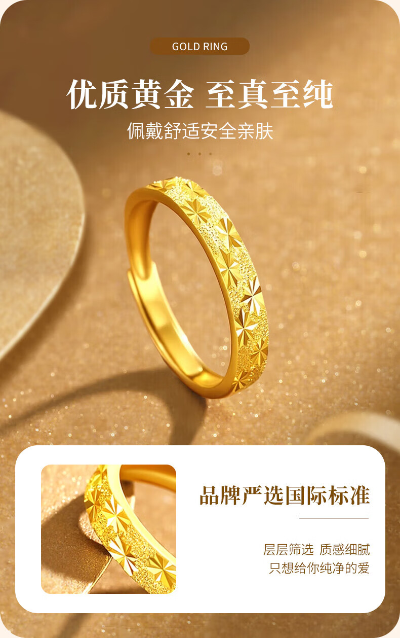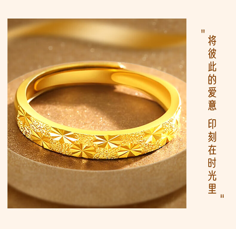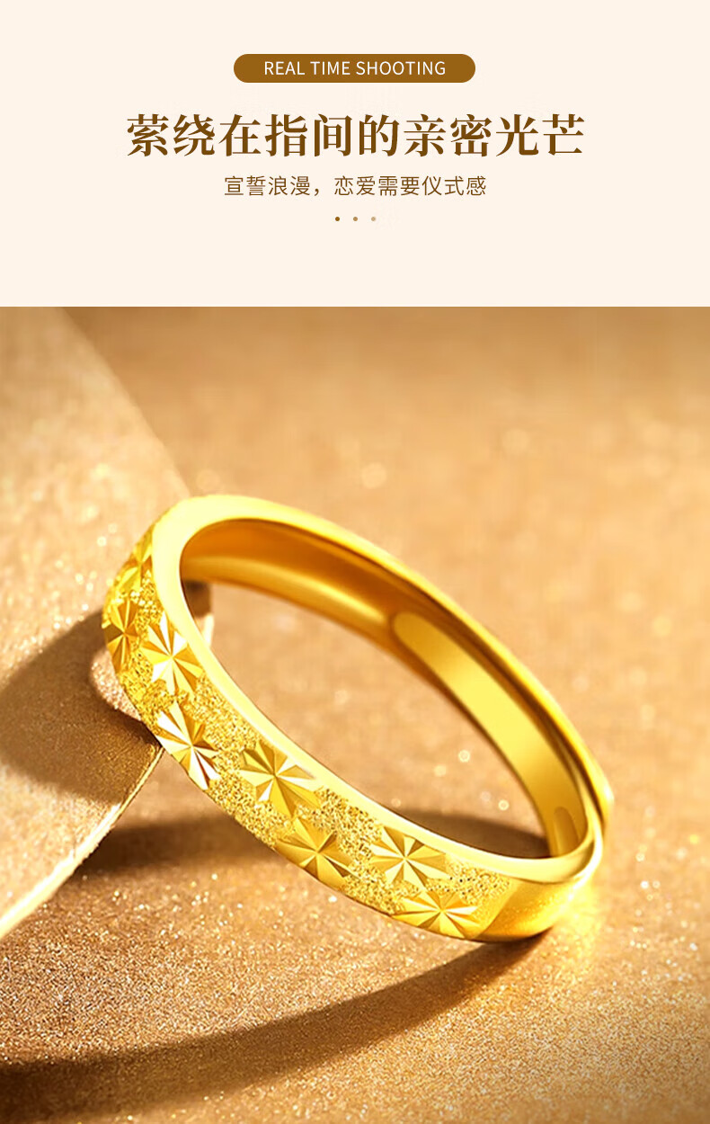 Lao Fengxiang gold ring for men and women, pure gold gypsophila couple ring, a pair of gold rings, birthday gift for girlfriend and wife, pure gold gypsophila couple ring, one pair, about 3.6g