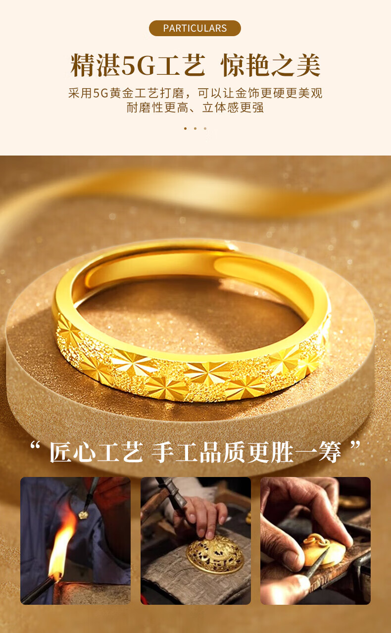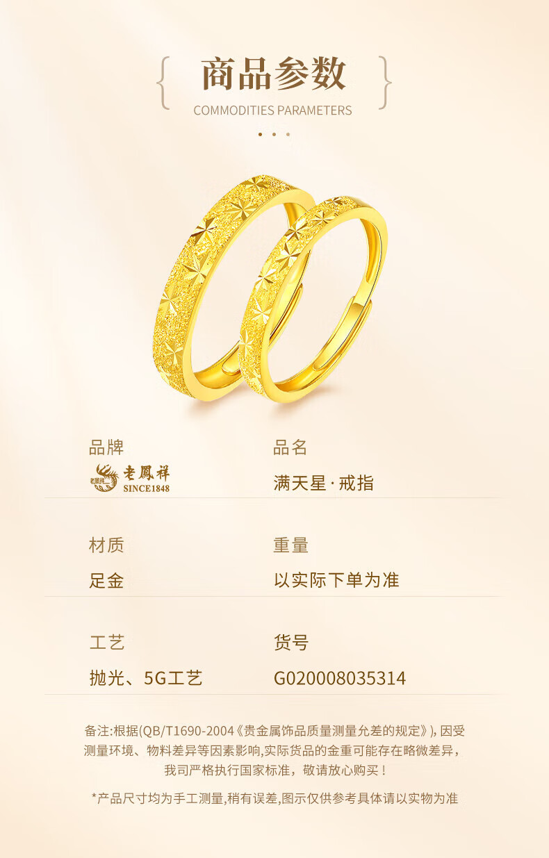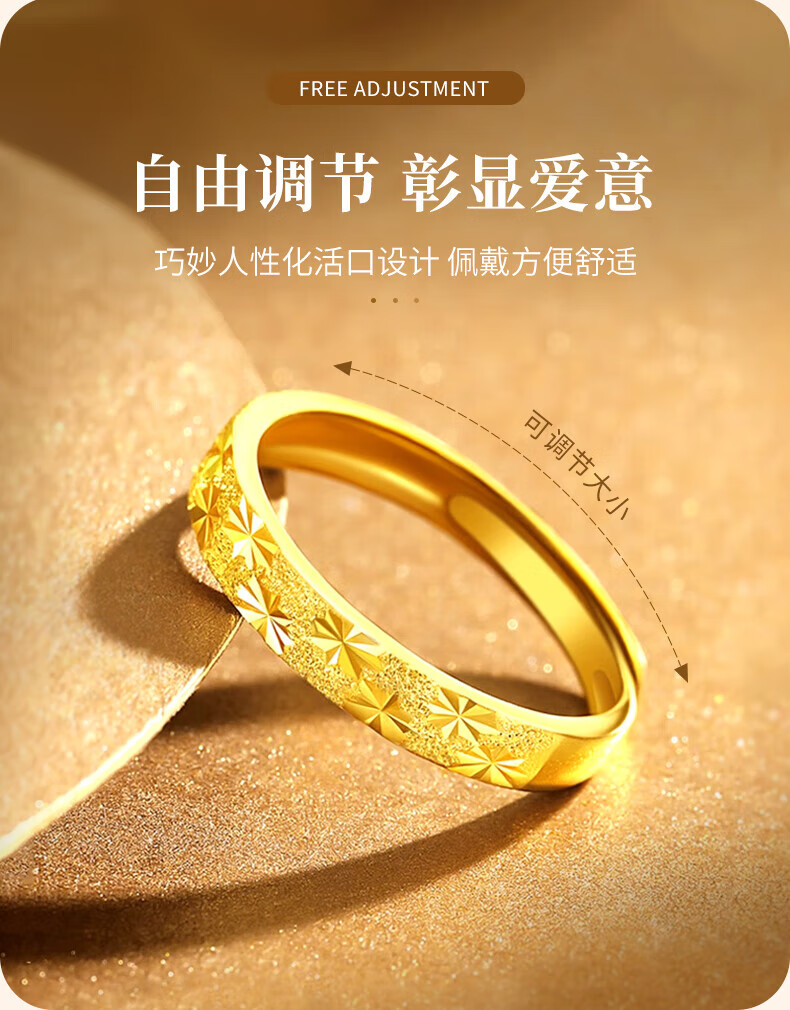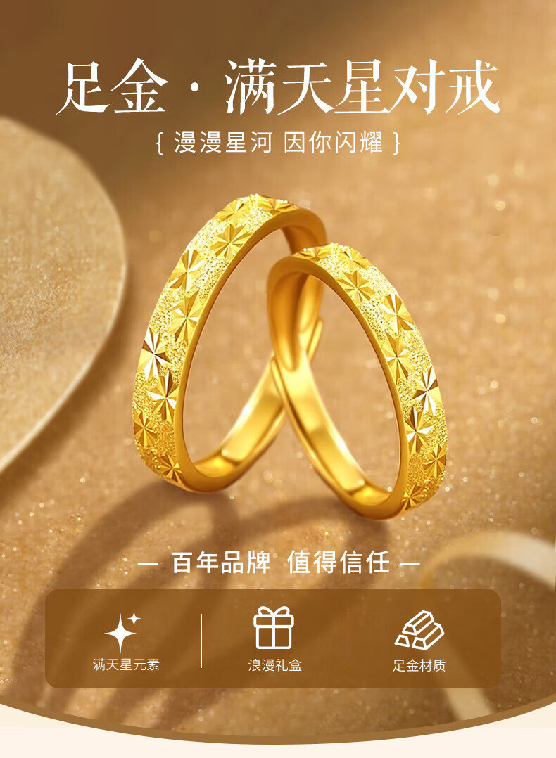 Lao Fengxiang gold ring for men and women, pure gold gypsophila couple ring, a pair of gold rings, birthday gift for girlfriend and wife, pure gold gypsophila couple ring, one pair, about 3.6g