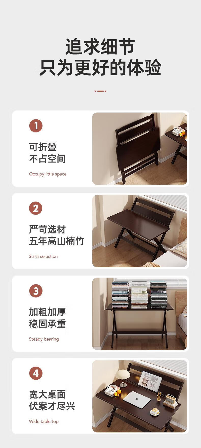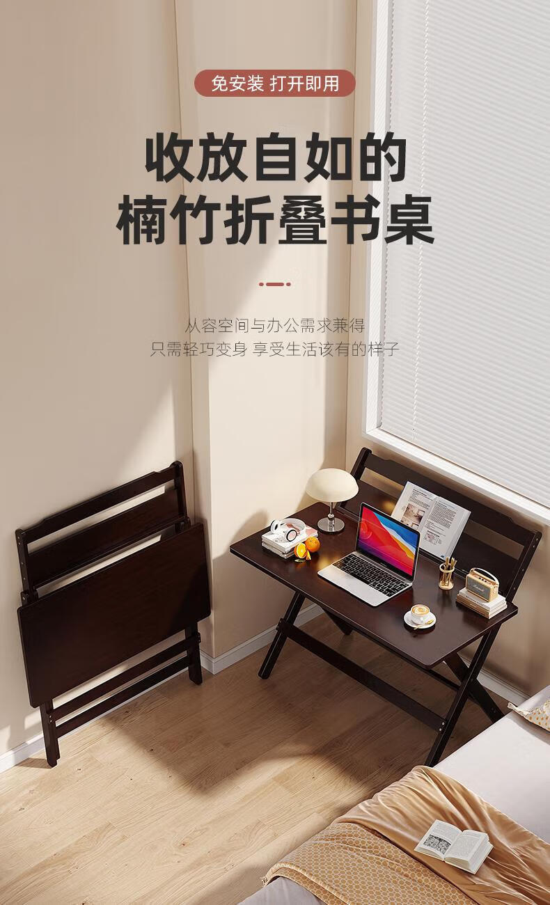 Airite folding table computer table four-position adjustable folding table study homework home folding study table original installation-free study table four-position adjustable overall bamboo three-year warranty
