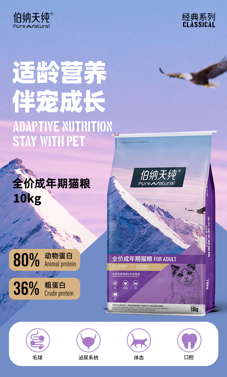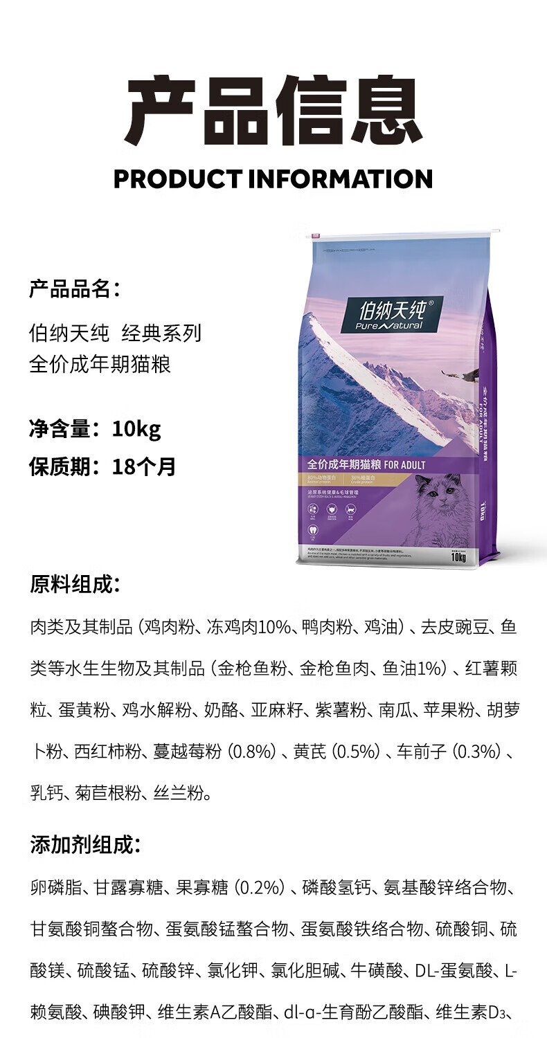 Bernatine Pure Cat Food Adult Cats and Kittens Full Price Nutritional Fattening Official Authentic Bona Tian Flagship Store Pack Classic Style Classic Adult Cat 10kg
