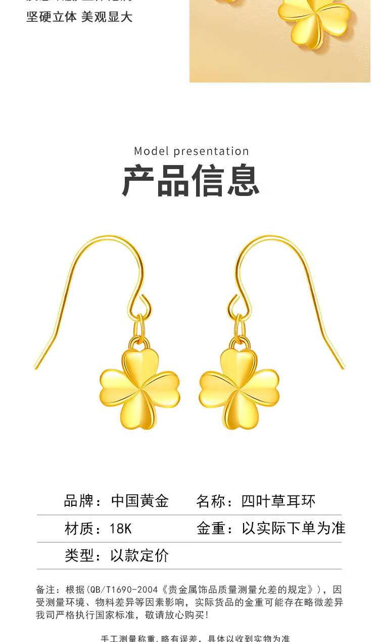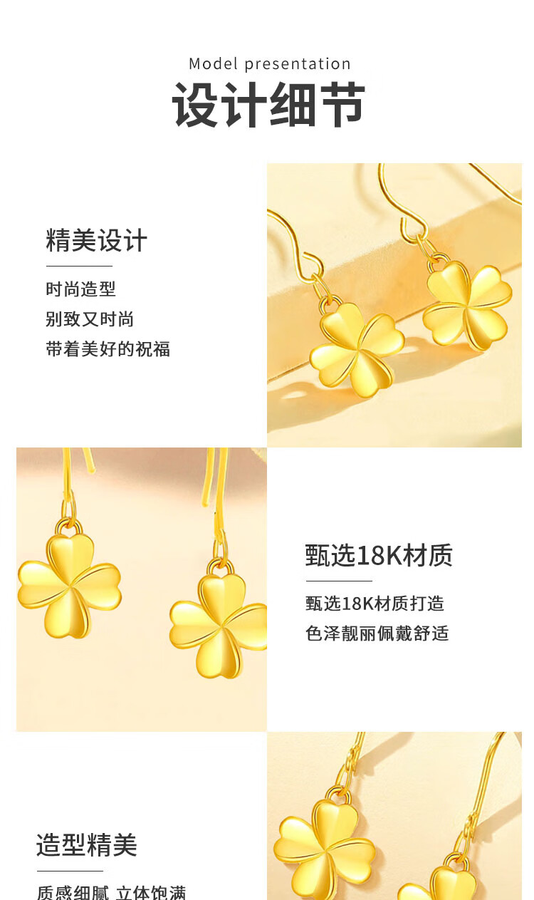 CHINA GOLD 18K gold earrings for women, four-leaf clover earrings, versatile light luxury earrings, Valentine’s Day birthday gift for girlfriend and lover, 18K four-leaf clover earrings