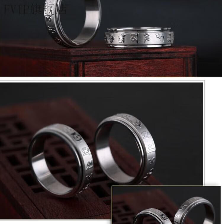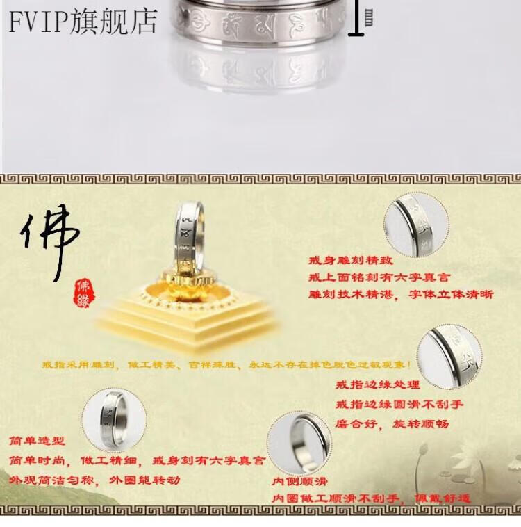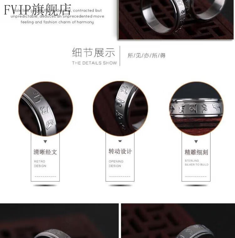 FVIP Old Phoenix 999 sterling silver foot silver can rotate six-word mantra men's ring trend transfer scripture men's single